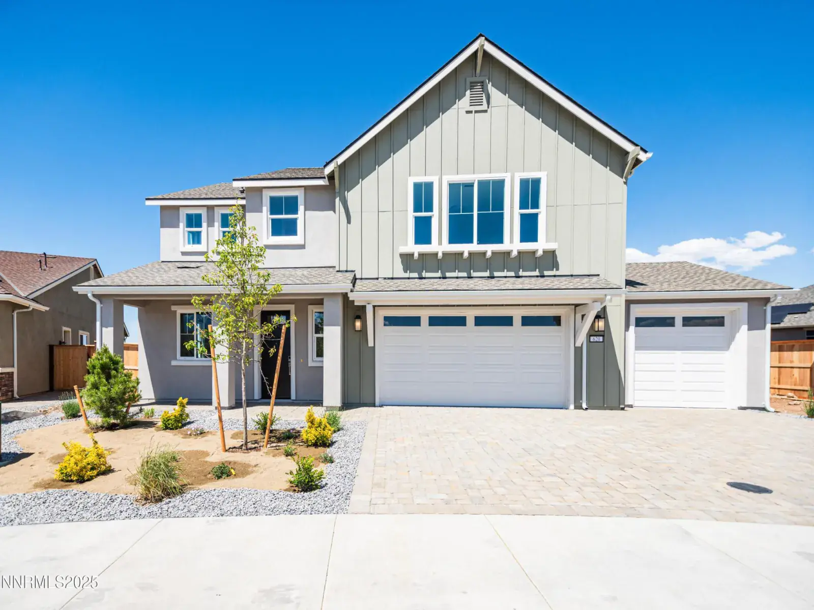 Views, views and more views! Situated on a premium lot, this brand-new home offers breathtaking views of the Sierra Mountains and expansive farmland. With an open-concept layout and no rear neighbors, enjoy both comfort and privacy in a stunning natural setting with no HOA. The main living area features a bright and airy flow between the living room, dining room, and kitchen—perfect for entertaining or everyday living. Over 15k dollars of interior upgrades are included in this home. The kitchen is beautifully appointed with quartz countertops, a stylish tile backsplash, and a spacious walk-in pantry. Additional storage closets are available both downstairs and upstairs. An office area is located at the front of the home on the main floor, adjacent to a full bathroom. Upstairs, you’ll find two generously sized guest bedrooms, a full guest bath, a dedicated laundry room, a bonus room and an oversized primary suite with stunning Sierra Mountain views and plenty of room to relax. Step into the serene backyard, complete with RV parking, and enjoy uninterrupted views of surrounding farmland. Located in Gardnerville, this property is close to shopping, healthcare, and local services. South Lake Tahoe is about 25 minutes away, and Carson City is about a 30-minute drive. The area is known for its access to the outdoors, with nearby trails, fishing spots, and mountain views. Gardnerville also offers walkable downtown, community events, and proximity to historic Genoa and the Carson Valley. Pictures of the home may reflect a different property with a similar floorplan, finishes may vary.