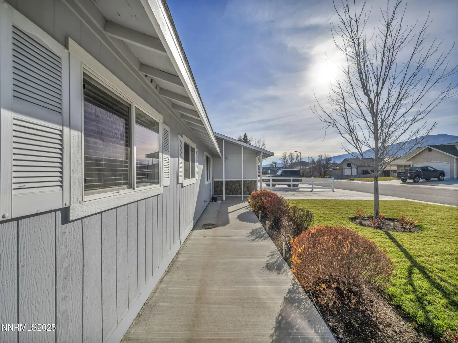 Easy, peaceful living awaits in this meticulously maintained 3-bed, 2-bath home. The beautifully remodeled kitchen features new cabinetry, modern appliances, and stunning granite countertops, truly a chef’s dream. All bedrooms are generously sized, and both bathrooms have been tastefully updated. New flooring flows throughout the home, creating a warm and cohesive feel. Step through the slider with built-in blinds for access to your private backyard oasis. Enjoy a relaxing soak in the hot tub with easy lift lid or entertain guests in the beautifully landscaped yard. A well-kept newer shed provides excellent storage for tools, hobbies, or yard equipment, keeping the garage free and functional. Both side yards offer ample space for toys or even a small RV. Ideally situated close to dining, shopping, entertainment, and just a quick jaunt to Lake Tahoe. Enjoy breathtaking views of Jobs Peak and take advantage of easy access to year-round outdoor recreation. Additional upgrades include newer windows and a new garage door. A true gem every detail has been thoughtfully cared for.