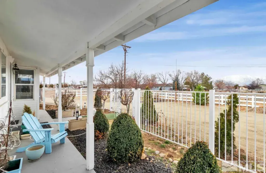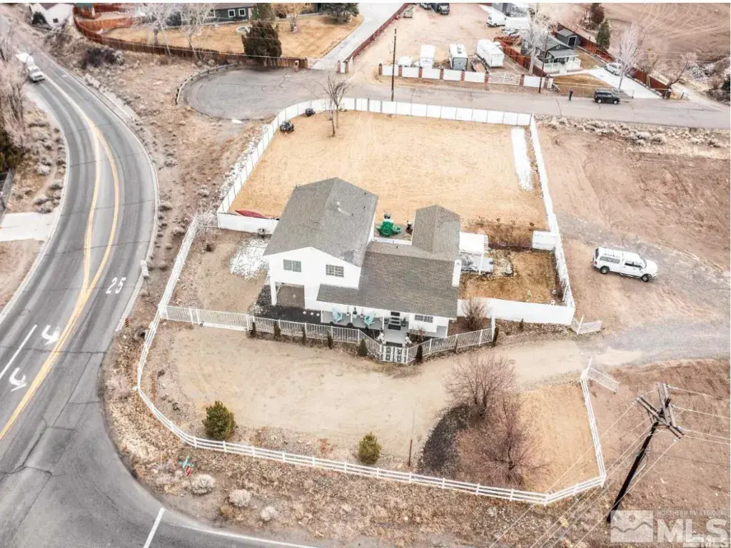 Exceptional 1.28 acer Corner Lot Offering Stunning Mountain Views! This spacious residence sits on a large corner lot, providing panoramic mountain vistas and abundant space for a variety of uses. The versatile layout comfortably accommodates large families or those seeking extra space for hobbies and business needs. The property features a generous area perfect for building a large shop or garage, with ample room for horses and outdoor pursuits. Highlights include Recently installed high-efficiency furnace. Fresh exterior paint for enhanced curb appeal • Downstairs office with its own entrance and internal access, ideal for remote work or guest accommodations. A spacious layout with five bedrooms—easily convertible into additional dressing rooms or office spaces, Modern kitchen with new remodel, granite countertops, and top-of-the-line Bosch appliances. Updated downstairs bathroom and stylish French doors leading to a deck and balcony, Low annual property taxes, no flood insurance required, four wells on-site, with one currently operational and others pending completion. Well-planned security system with five cameras, gate intercom, and automatic house lighting for peace of mind Situated just one block from Gardnerville Golf Course, this home is ideal for equestrian enthusiasts, large vehicle owners, or anyone seeking a spacious family retreat in a friendly neighborhood close to schools, hospitals, and amenities. Separate entrance to home office. owning water rights and personal well, no flood insurance needed. One block from Country Club Golf Course, 1/3 mile from doctors, and hospital. 3 large bedrooms upstairs with two full bathrooms, and two bedrooms downstairs, one is converted to a walk-in closet and dressing room. Recently renovated kitchen, Bosch appliances, two new refrigerators, and wash/dryer combo included. Smart lights with app for phones. Services are free of charge. The fireplace and stove are gas, no HOA, city sewer. Plants in the front yard are on a drip system. NOW CURRENTLY AS IS.