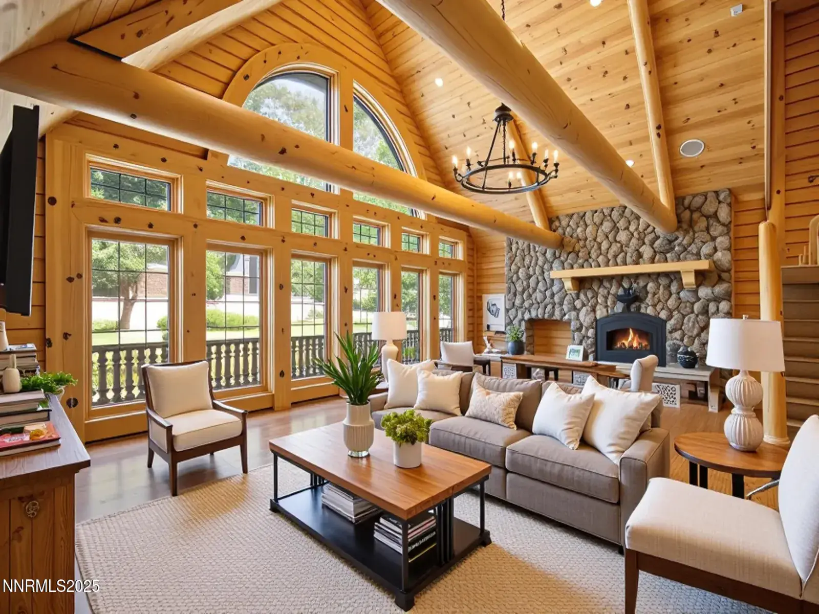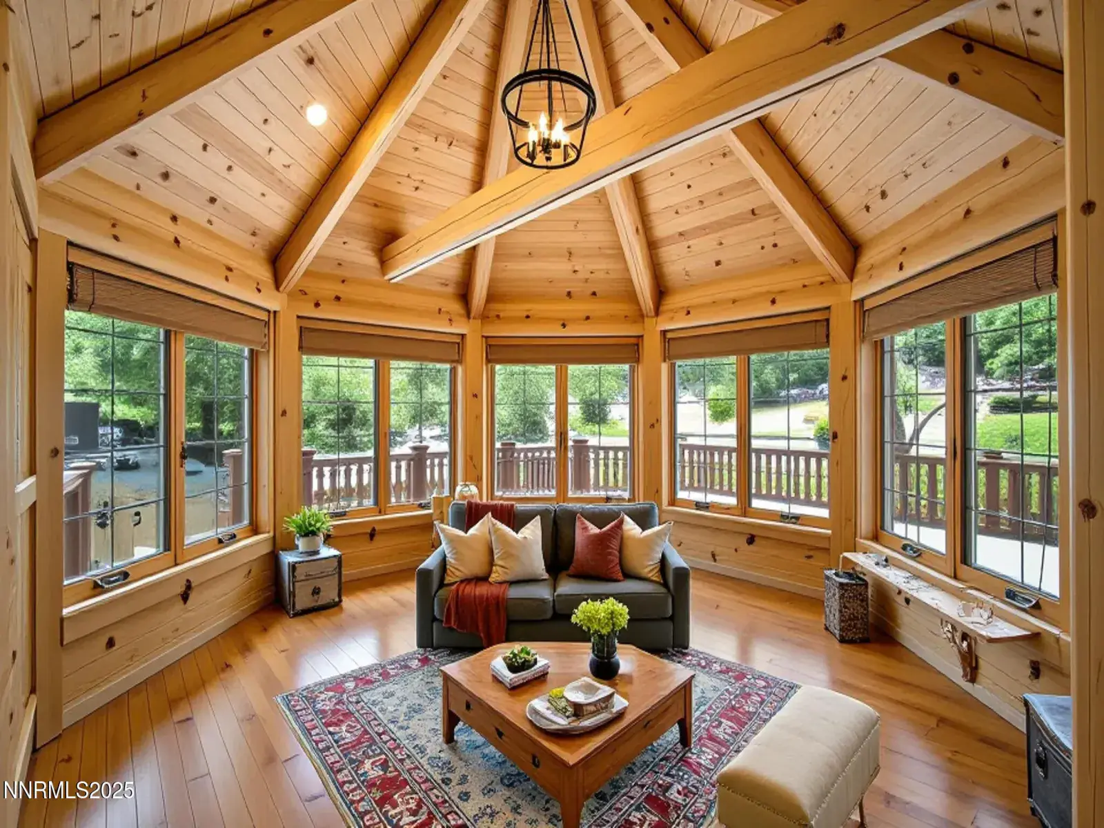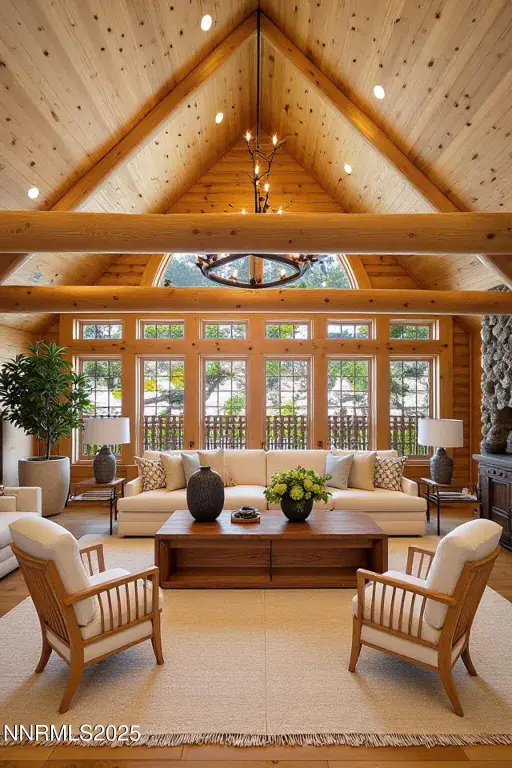 Welcome to your private retreat in the stunning Jobs Peak Ranch, where mountain beauty and refined living come together in perfect balance. This remarkable log-style residence, built from Northern White Pine, showcases timeless craftsmanship while offering unobstructed views of the iconic Jobs Peak—a dream setting for skiers, hikers, and nature lovers alike. Spanning 4,534 square feet, this thoughtfully designed home features 4 bedrooms and 5.5 bathrooms, providing both comfort and space for family living or hosting friends. The main home encompasses 3,921 square feet, while an additional 613-square-foot suite above the garage offers a private retreat complete with its own bathroom and heating/cooling—ideal for guests after a day on the slopes or trails. Perfectly situated at the California Stateline and bordering the Mule Deer Preserve, this property places outdoor adventure right at your doorstep. Heavenly Ski Resort is just 20 minutes away, while Kirkwood is only 35 minutes, giving you easy access to world-class skiing. Lake Tahoe’s crystal-clear shores are also 20 minutes from home, offering endless summer fun and year-round beauty. For hiking enthusiasts, the Jobs Peak Ranch Trailhead is mere minutes away, delivering miles of pristine trails to explore. The open-concept floor plan flows effortlessly, making it ideal for daily living or après-ski entertaining. Two primary suites—one on each level—provide flexibility and privacy, while radiant floor heating and four fireplaces ensure warmth and comfort throughout the winter season. Outdoors, the property is equally impressive. Enjoy a fully equipped outdoor kitchen for après-adventure gatherings, or unwind in the spa as you take in the most spectacular Jobs Peak views in the area. Every angle of this home is designed to highlight the breathtaking mountain backdrop that defines this extraordinary location. Additional features include a whole-house generator and a 1,000-gallon propane tank, ensuring peace of mind in every season. Crafted with enduring log construction, the home combines rustic elegance with durability—built to last for generations. Jobs Peak Ranch offers the rare blend of privacy, community, and unmatched access to Tahoe’s finest recreation. Whether sipping coffee with mountain views, splitting your day between skiing Heavenly and hiking nearby trails, entertaining guests outdoors, or simply soaking in your spa beneath the stars, this home delivers mountain living at its absolute best.