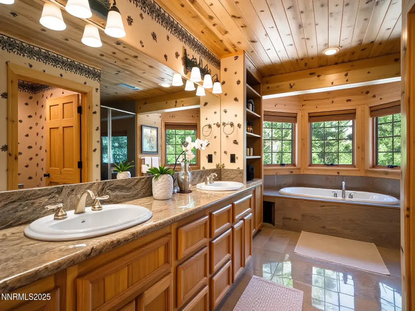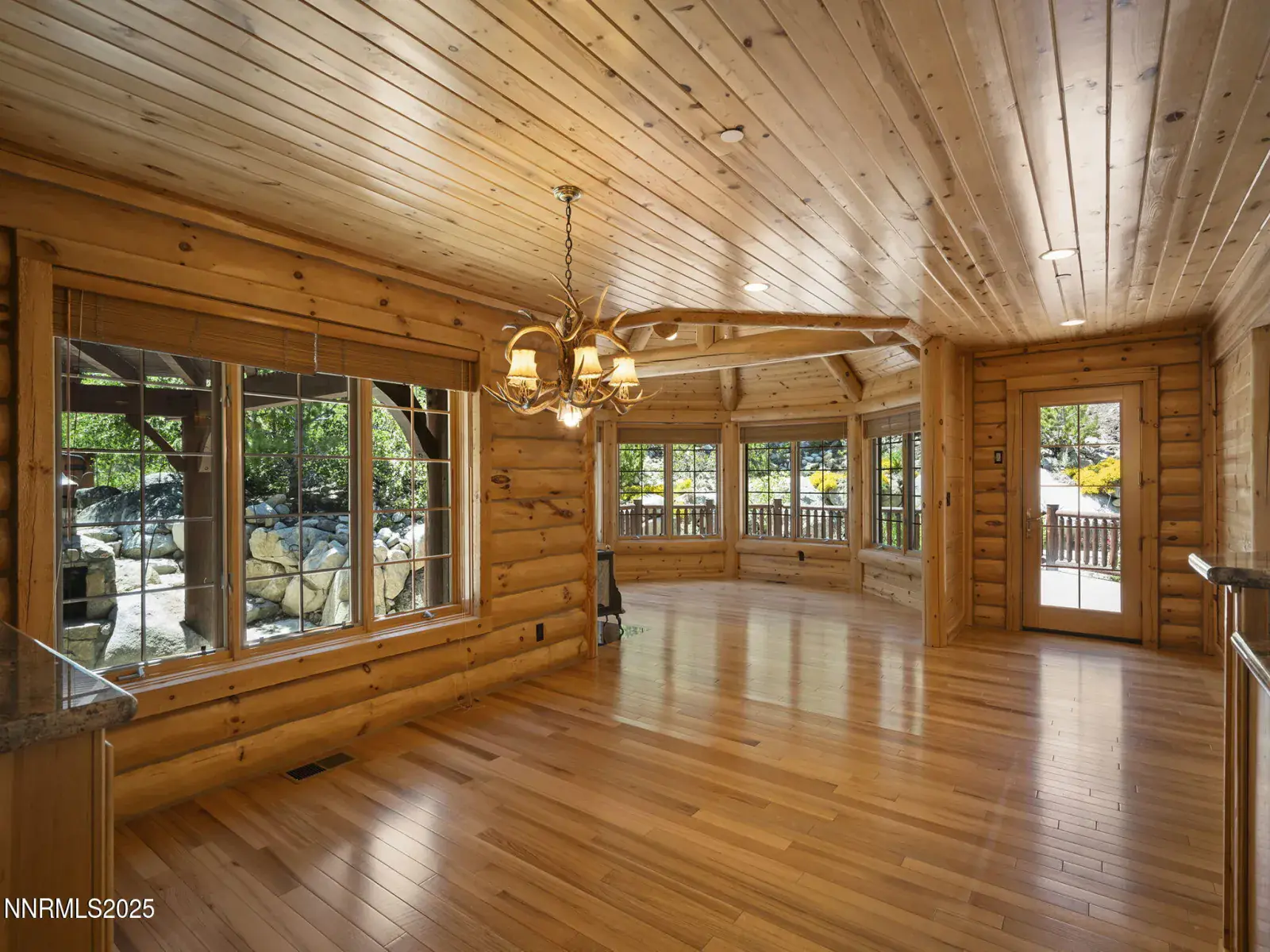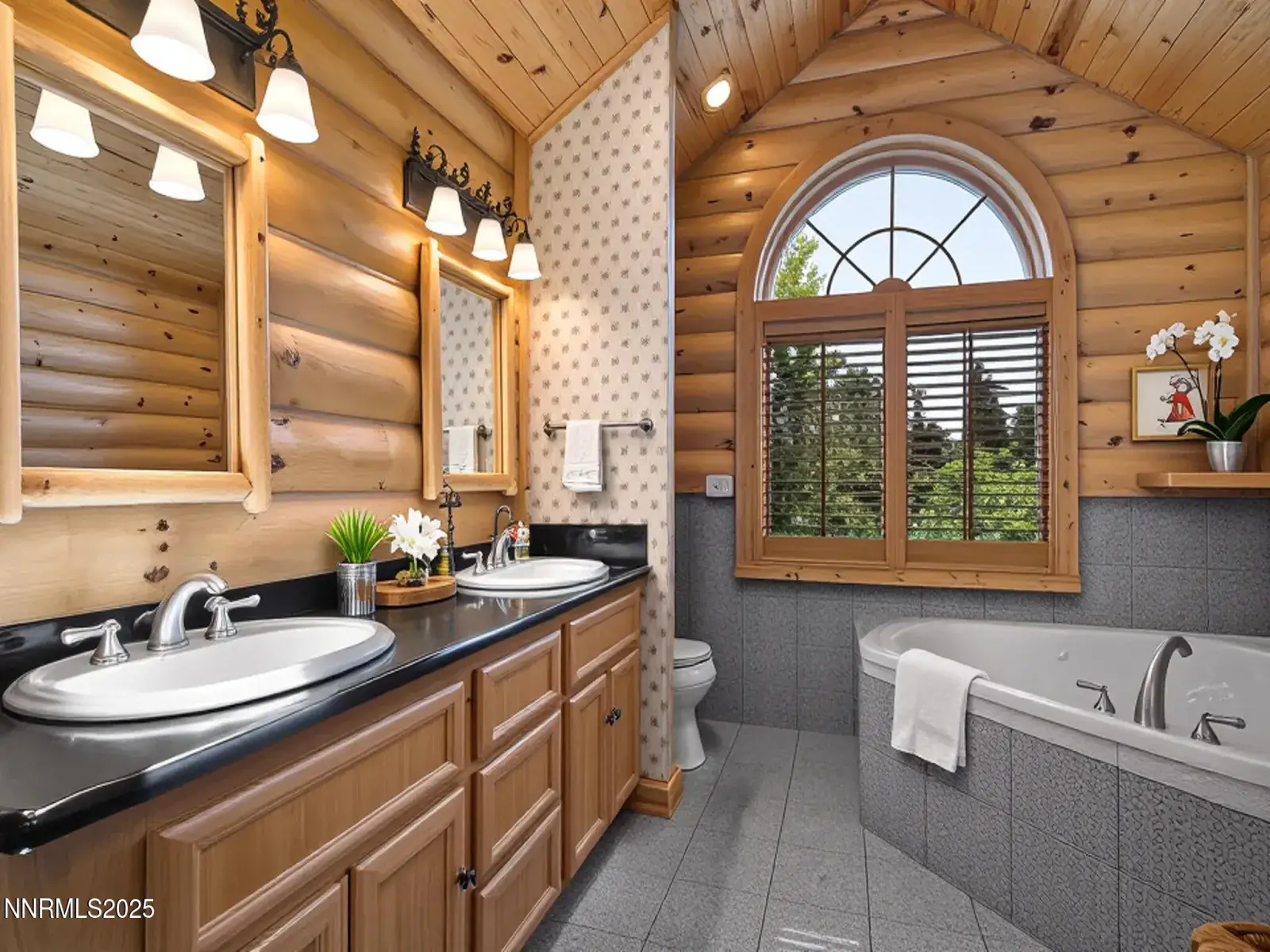 Welcome to your private retreat in the stunning Jobs Peak Ranch, where mountain beauty and refined living come together in perfect balance. This remarkable log-style residence, built from Northern White Pine, showcases timeless craftsmanship while offering unobstructed views of the iconic Jobs Peak—a dream setting for skiers, hikers, and nature lovers alike. Spanning 4,534 square feet, this thoughtfully designed home features 4 bedrooms and 5.5 bathrooms, providing both comfort and space for family living or hosting friends. The main home encompasses 3,921 square feet, while an additional 613-square-foot suite above the garage offers a private retreat complete with its own bathroom and heating/cooling—ideal for guests after a day on the slopes or trails. Perfectly situated at the California Stateline and bordering the Mule Deer Preserve, this property places outdoor adventure right at your doorstep. Heavenly Ski Resort is just 20 minutes away, while Kirkwood is only 35 minutes, giving you easy access to world-class skiing. Lake Tahoe’s crystal-clear shores are also 20 minutes from home, offering endless summer fun and year-round beauty. For hiking enthusiasts, the Jobs Peak Ranch Trailhead is mere minutes away, delivering miles of pristine trails to explore. The open-concept floor plan flows effortlessly, making it ideal for daily living or après-ski entertaining. Two primary suites—one on each level—provide flexibility and privacy, while radiant floor heating and four fireplaces ensure warmth and comfort throughout the winter season. Outdoors, the property is equally impressive. Enjoy a fully equipped outdoor kitchen for après-adventure gatherings, or unwind in the spa as you take in the most spectacular Jobs Peak views in the area. Every angle of this home is designed to highlight the breathtaking mountain backdrop that defines this extraordinary location. Additional features include a whole-house generator and a 1,000-gallon propane tank, ensuring peace of mind in every season. Crafted with enduring log construction, the home combines rustic elegance with durability—built to last for generations. Jobs Peak Ranch offers the rare blend of privacy, community, and unmatched access to Tahoe’s finest recreation. Whether sipping coffee with mountain views, splitting your day between skiing Heavenly and hiking nearby trails, entertaining guests outdoors, or simply soaking in your spa beneath the stars, this home delivers mountain living at its absolute best.