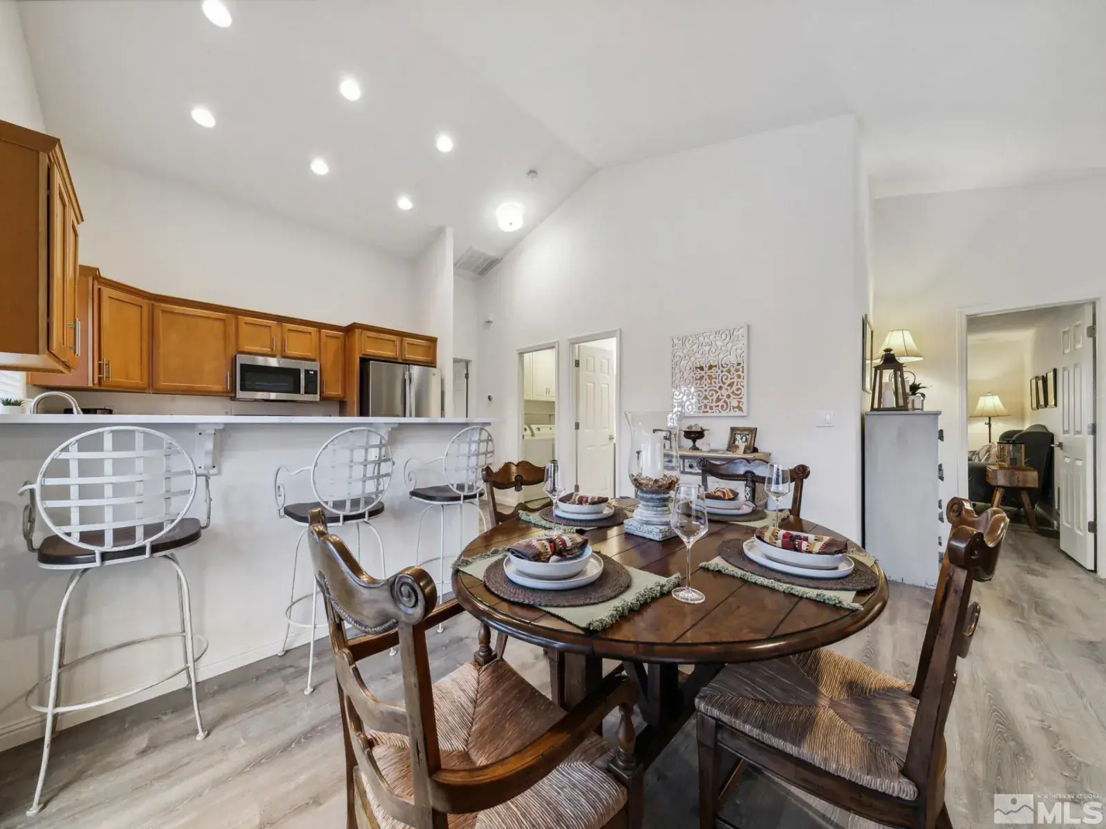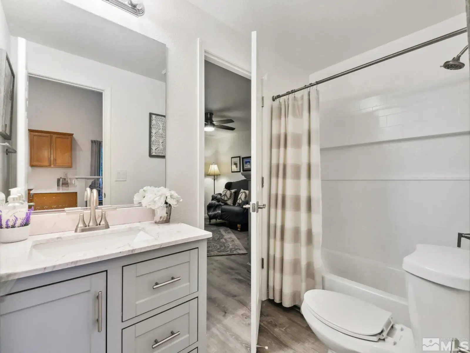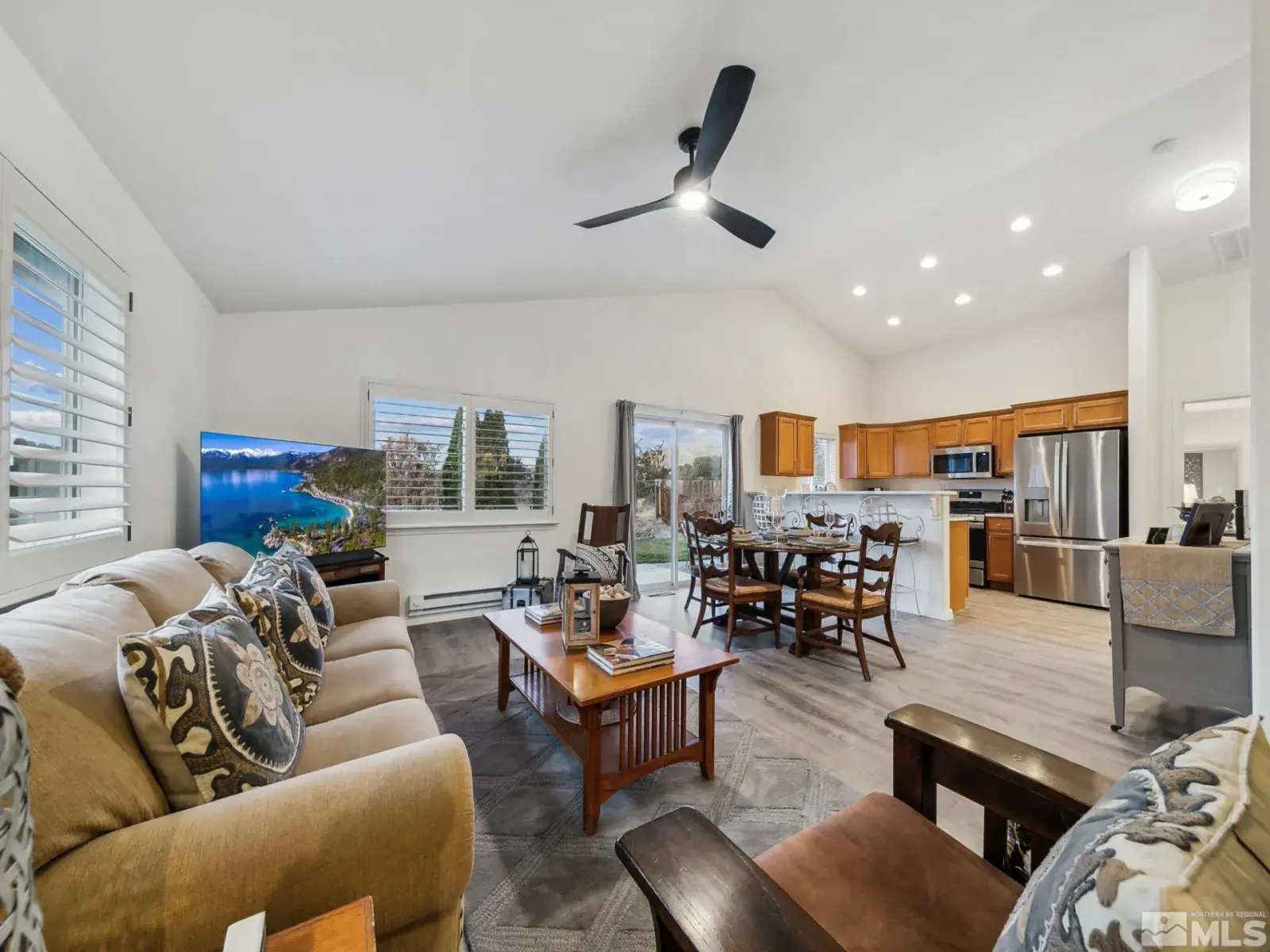 LOOKING for a STUNNING and meticulously remodeled GEM of a home in an EXCEPTIONAL location ? Experience the best of both worlds at 10 Conner Way, in Pine View Estates—peaceful, nature-inspired living with the downtown Minden/Gardnerville just minutes away. This beautifully updated light, bright and airy, elegant two bedroom, two bathroom home offers a perfect blend of modern upgrades and an abundance of natural light, highlighting the beautiful Life-Proof wide plank luxury vinyl flooring throughout,, providing durability and style. The neutral, completely repainted interior creates a warm and inviting atmosphere and plenty of space, perfect for entertaining and relaxing while enjoying the serene setting. This remodeled beauty features vaulted ceilings, an open living area and dining area and plantation shutters throughout the home, a sleek, remodeled kitchen with stunning Bianco Calcutta quartz countertops, all new energy efficient stainless steel GE Appliances, elevated breakfast bar with quartz counters, oversized upgraded sink/faucet, pantry in Laundry room and ample cabinet space in the kitchen and pantry/laundry room. Additional upgrades include remodeled bathrooms: Master Bathroom ensuite has a Köhler dual sink vanity with Bianco Calcutta quartz , sleek glass enclosure shower/shower surround, new plumbing fixtures. The second bathroom has a new vanity with quartz top, shower/shower enclosure, plumbing fixtures, lighting, etc. The interior of the home also features new modern ceiling fans, all new interior and exterior modern light fixtures/lighting, upgraded hardware on interior doors, tankless water heater, new baseboards, door trim, NEST thermostat, RIng camera surveillance system and much more. Enjoy beautiful mountain views while sitting on your covered front porch or BBQing in your spacious backyard! The backyard is a true retreat, with expansive outdoor paver patios and ample space for entertaining while offering breathtaking mountain & valley views perfect for relaxation while taking in the backdrop of Nevada’s scenic beauty.. Enjoy hiking, biking and exploring right from your home with a rear access gate and tall chain link fence in the backyard, also providing exceptional views of the natural terrain and direct access to BIA land. This well cared for move-in-ready home situated on a large, beautifully landscaped lot with mature trees, vibrant flowers, lush green lawn, expansive outdoor rear entertaining area, is matchless for time spent with family & friends, barbecuing or even stargazing while enjoying the serene & peaceful setting. Short 30 minute drive to beautiful Lake Tahoe to enjoy all it has to offer – skiing, boating, hiking, biking, camping and minutes from downtown Minden/Gardnerville with quaint shops, restaurants, galleries, antique stores & parks. One hour from the Reno/Tahoe International Airport. Fully Insulated 2 Car Garage, Fully landscaped front and rear and automatic drip system/sprinklers with Orbit Wi-Fi enabled controller for easy maintenance/control remotely from your phone. Fully fenced backyard is perfect for pets and privacy. Bonus landscaped side yard rock retention basin/easement outside wood fencing is included in lot square footage, providing for extra privacy buffer between neighboring home. HOA covers water, sewer, snow removal, road maintenance and common areas. HOA also includes RV storage lot onsite for a nominal fee. Offered Partially Furnished (per inventory) Don’t miss this rare opportunity to make this stunning remodeled house your new dream home!