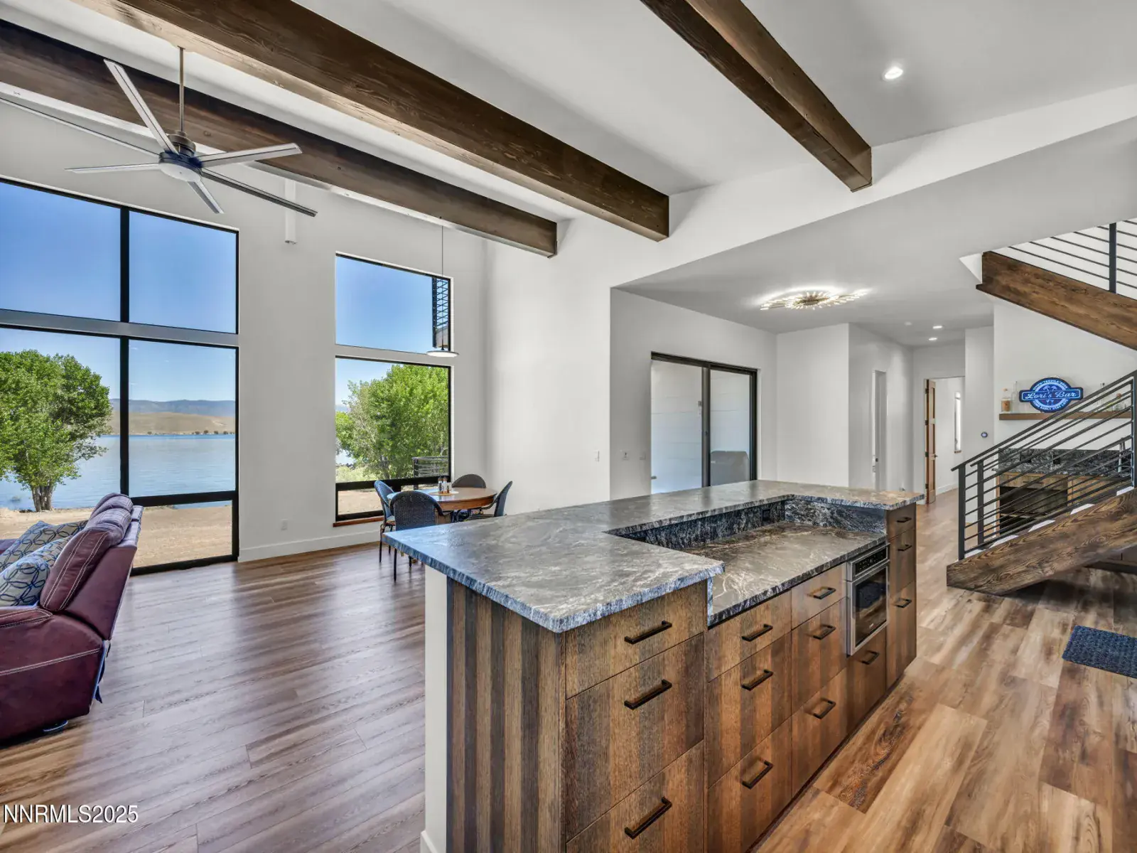 With care and intention, every inch of this stunning lakefront home was designed to frame the panoramic views, making Topaz Lake the heart of each room. Using structural metal siding in four unique styles, a work of art was created to stand strong against the elements, yet feel warm and inviting. Inside, three spacious master suites provide privacy and comfort for guests, along with an office/den or workout room attached to the main suite. The covered patio off the main living area is where you and your guests can take in the expansive lake views. And the garage is more than a garage. With nearly 1,000 square feet of space, it’s where fishing gear gets stowed, paddleboards rest after long days, and laughter is shared around open tailgates. This isn’t just a house. It’s a story.. one of craftsmanship, connection, and the simple joy of living by the water. A rare Nevada lakefront home, yes. But more than that, it’s a place to make memories that last a lifetime.