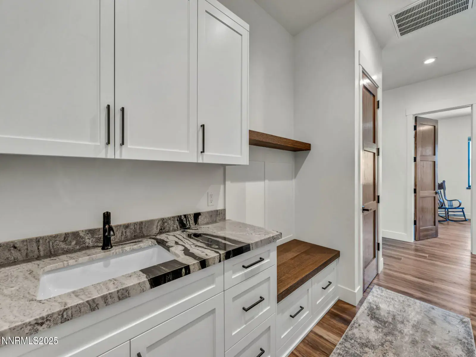 Cabinets, Laundry Room, Shelves, Sink, Washer Hookup