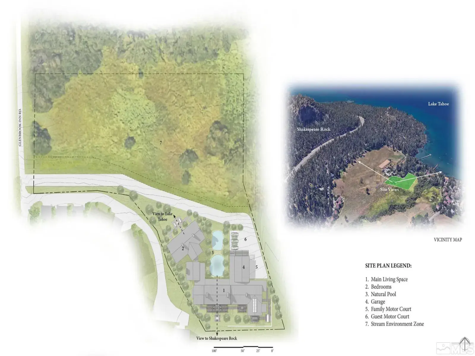 Introducing Shakespeare Meadows….a once-in-a-lifetime building homesite opportunity behind the private gates of the Shakespeare Ranch in historic Glenbrook, NV. Unparalleled beauty and serenity from this extraordinary 3-acre lot offering breathtaking views of Shakespeare Rock, the tranquil meadow, and the crystal blue waters of Lake Tahoe. Conceptual designs by a renowned architect Backen and Backen, ample coverage for building, pier access rights and use of a buoy are included., Imagine waking up to the morning sun illuminating Shakespeare Rock, with the tranquil meadow and sparkling lake as your backdrop. Whether you’re looking to build a luxurious estate or a cozy retreat, this lot offers the perfect blend of natural beauty and privacy within the prestigious community of Glenbrook. A lot line adjustment is underway for a minimum of three acres with a minimum of 1.6 acres of building envelope. The address, accessor parcel number, taxes and exact parcel size will be determined upon final county approval. Ample coverage to build your dream home. Experience the beauty, tranquility, history, charm, and exclusivity of Glenbrook, NV. This is more than just a property; it’s a lifestyle. Take advantage of this rare opportunity to own a piece of paradise.