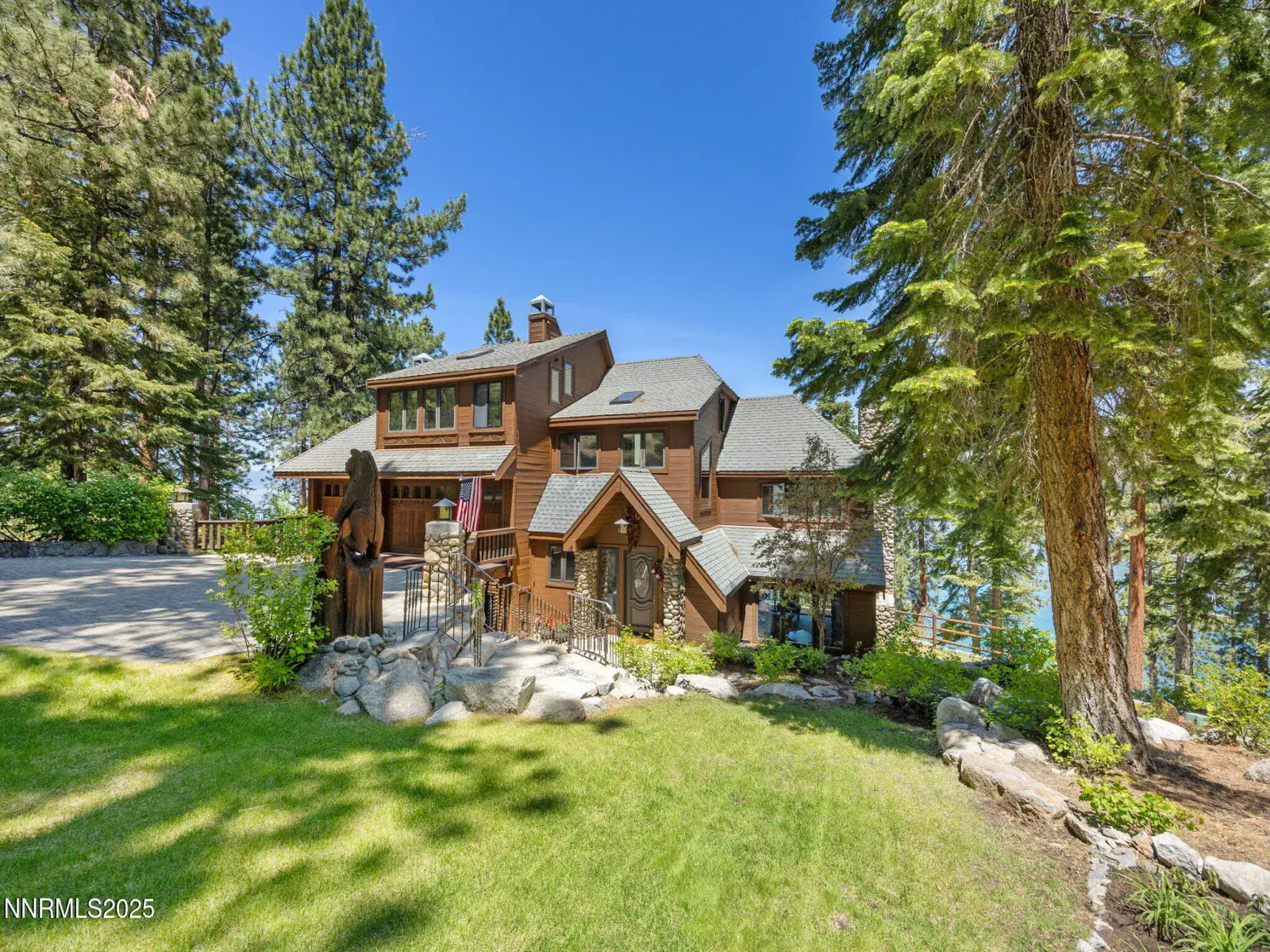 Positioned on the southern point of Glenbrook, the lodge faces stunning emerald waters and is surrounded by granite boulders and breathtaking lake views. A naturally winding driveway divides the property into two distinct sites, offering incredible flexibility and future potential. The upper parcel is ideal for adding guest quarters, additional garage space, or anything your vision calls for, complete with existing utility hookups and roughly 2,600+ square feet of additional coverage.