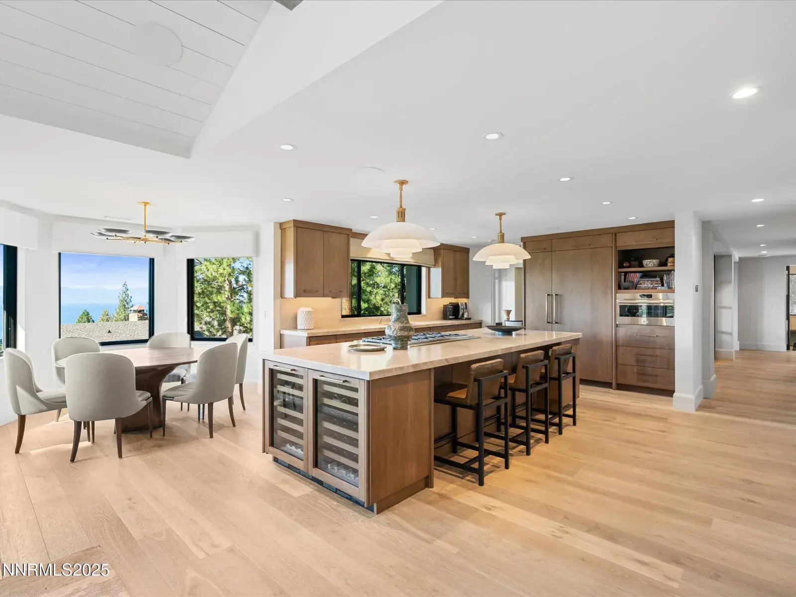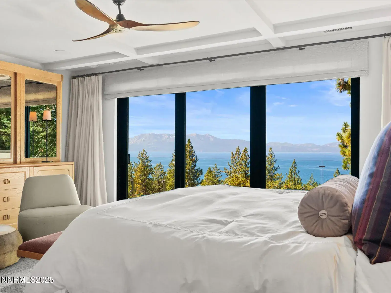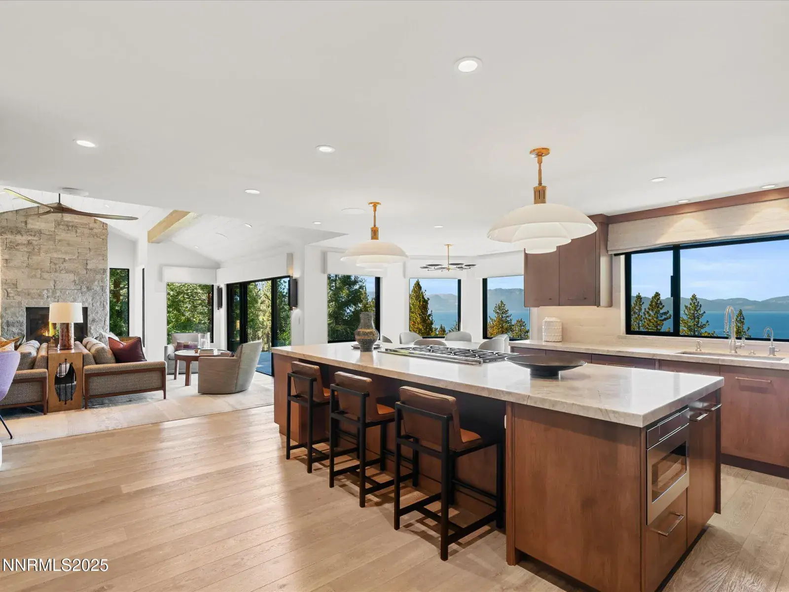 Spectacular Panoramic Lakeview Estate – Contemporary Alpine Luxury on Lake Tahoe’s East Shore. Set within the prestigious Hidden Woods in Glenbrook, Nevada, this rare estate spans nearly one acre of meticulously landscaped grounds and showcases commanding westerly views of Lake Tahoe. Its prime East Shore setting offers exceptional convenience—just two miles from four private beaches, minutes from shopping and dining, four miles to Heavenly Ski Resort, and moments from some of the region’s most celebrated hiking and biking trails. Encompassing more than 6,500 square feet across three levels, the residence features six bedrooms and five bathrooms. Architectural highlights include vaulted ceilings with exposed beams, bespoke cabinetry, and expansive Pella windows framing sweeping lake vistas. Hand-carved millwork, custom ironwork, and imported stone finishes add timeless sophistication, while custom-designed furnishings—available with the property—create a rare turnkey opportunity. The chef’s kitchen is a true showpiece, equipped with Sub-Zero and Wolf appliances, an eight-burner Wolf range with dual ovens, a steam oven, microwave, compactor, Fisher & Paykel and Miele dishwashers, and dual Sub-Zero wine refrigerators. A casual breakfast area complements the formal dining room, while expansive open-concept living spaces flow seamlessly, designed for effortless entertaining. The primary suite offers a serene private retreat, complete with a lakeview balcony, electronic blinds, walk-in closet with laundry chute, and a spa-inspired bath with heated floors and a steam shower overlooking the lake. Five additional bedrooms are private suites, providing comfort and privacy for family and guests. The lower level is dedicated to recreation and wellness, offering a game room with wet bar, refrigerator, stovetop, and snack station, along with a gym, safe room, den/office, and an eight-person sauna. Two laundry rooms and radiant hydronic heating throughout ensure convenience and comfort during Tahoe’s snowy winters. The grounds are designed as a private sanctuary, with lush lawns, curated gardens, and a Rachio smart irrigation system. Outdoor living is elevated with ironwood decking and commercial-grade glass railings with stainless steel hardware, wrought iron fencing, a large covered spa, gas fire pit, a stainless barbecue, and a dramatic waterfall flowing beside the expansive paver patio. A heated driveway powered by its own hydronic boiler provides seamless winter access, while the oversized 2 car garage includes abundant storage and additional parking for up to six vehicles. Extensively rebuilt in 2021, the home is a contemporary alpine masterpiece that blends advanced technology with enduring design. The Savant Smart Home system integrates lighting, entertainment, and climate controls, while Lutron lighting and Hakwood Belgian-engineered hardwood floors accentuate the interiors. Two gas fireplaces in the living and family rooms add warmth and ambiance, while an advanced security system ensures peace of mind. Conceived as a legacy property for multi-generational living, this estate combines architectural distinction, state-of-the-art amenities, and the financial advantages of Nevada residency. Current property taxes are just 15,093 annually and will not increase upon transfer. This remarkable East Shore offering may also be sold fully furnished, minus artwork and personal property. Legal Disclaimer: Property photos may include digital enhancements and/or virtual staging. Actual property condition may differ.