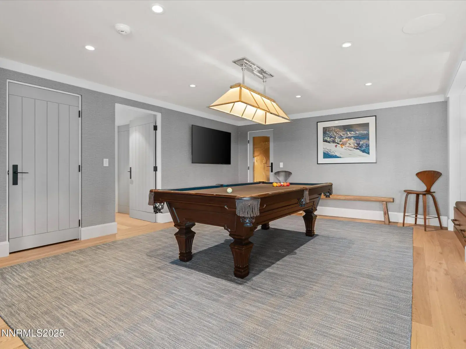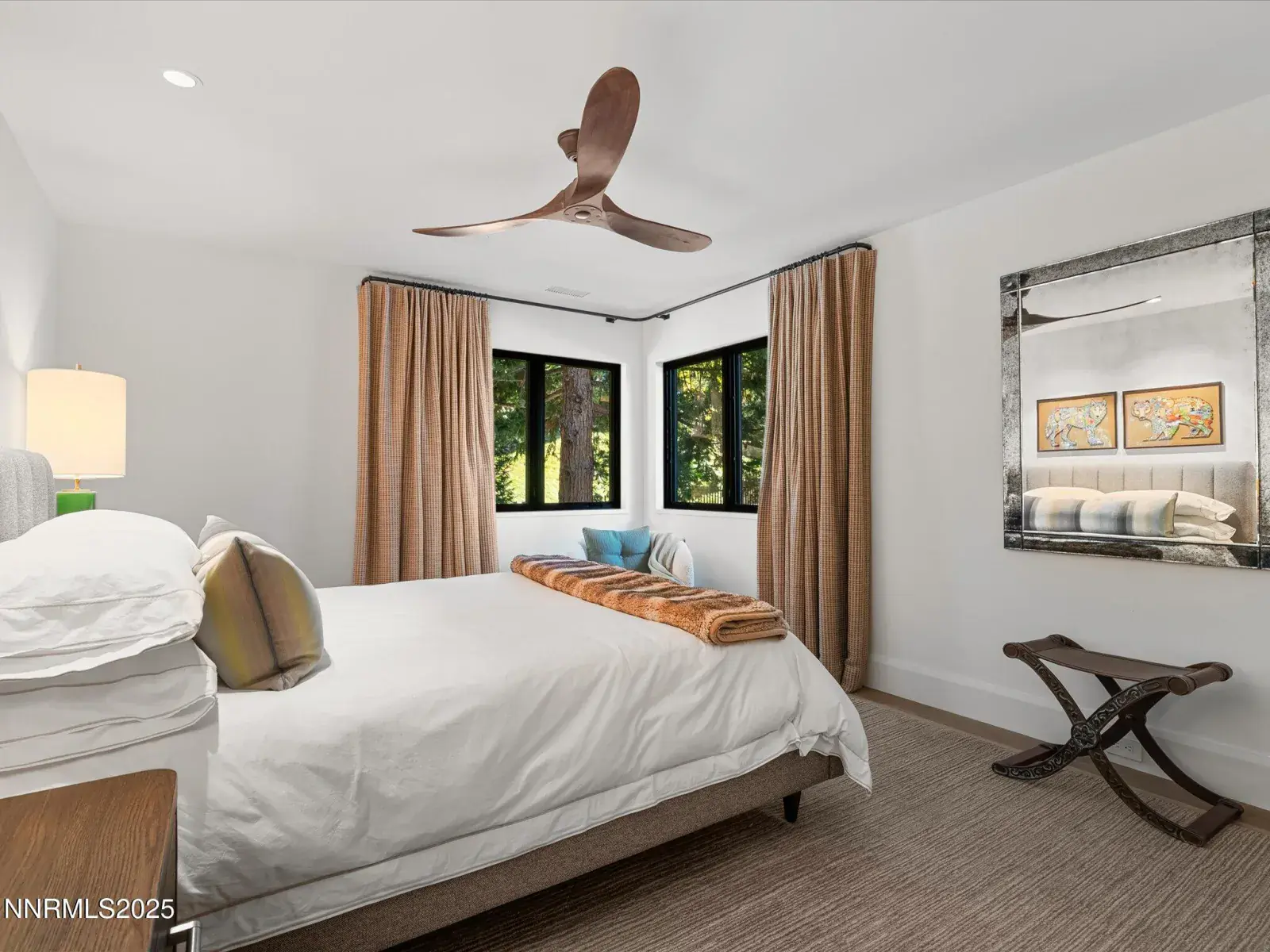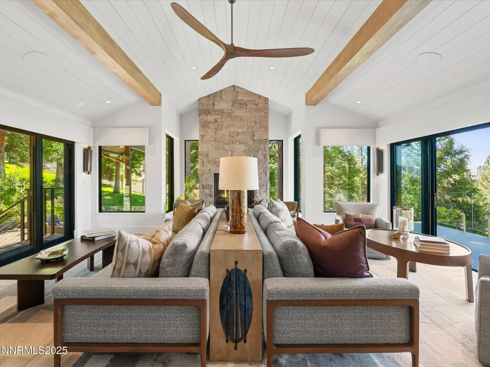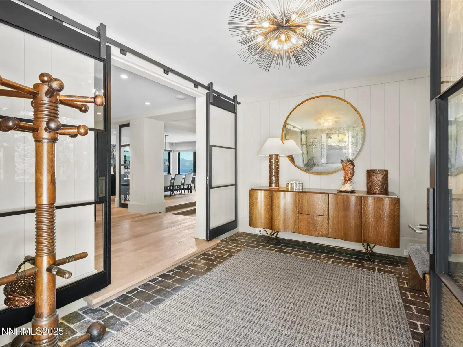 Spectacular Panoramic Lakeview Estate – Contemporary Alpine Luxury on Lake Tahoe’s East Shore. Set within the prestigious Hidden Woods in Glenbrook, Nevada, this rare estate spans nearly one acre of meticulously landscaped grounds and showcases commanding westerly views of Lake Tahoe. Its prime East Shore setting offers exceptional convenience—just two miles from four private beaches, minutes from shopping and dining, four miles to Heavenly Ski Resort, and moments from some of the region’s most celebrated hiking and biking trails. Encompassing more than 6,500 square feet across three levels, the residence features six bedrooms and five bathrooms. Architectural highlights include vaulted ceilings with exposed beams, bespoke cabinetry, and expansive Pella windows framing sweeping lake vistas. Hand-carved millwork, custom ironwork, and imported stone finishes add timeless sophistication, while custom-designed furnishings—available with the property—create a rare turnkey opportunity. The chef’s kitchen is a true showpiece, equipped with Sub-Zero and Wolf appliances, an eight-burner Wolf range with dual ovens, a steam oven, microwave, compactor, Fisher & Paykel and Miele dishwashers, and dual Sub-Zero wine refrigerators. A casual breakfast area complements the formal dining room, while expansive open-concept living spaces flow seamlessly, designed for effortless entertaining. The primary suite offers a serene private retreat, complete with a lakeview balcony, electronic blinds, walk-in closet with laundry chute, and a spa-inspired bath with heated floors and a steam shower overlooking the lake. Five additional bedrooms are private suites, providing comfort and privacy for family and guests. The lower level is dedicated to recreation and wellness, offering a game room with wet bar, refrigerator, stovetop, and snack station, along with a gym, safe room, den/office, and an eight-person sauna. Two laundry rooms and radiant hydronic heating throughout ensure convenience and comfort during Tahoe’s snowy winters. The grounds are designed as a private sanctuary, with lush lawns, curated gardens, and a Rachio smart irrigation system. Outdoor living is elevated with ironwood decking and commercial-grade glass railings with stainless steel hardware, wrought iron fencing, a large covered spa, gas fire pit, a stainless barbecue, and a dramatic waterfall flowing beside the expansive paver patio. A heated driveway powered by its own hydronic boiler provides seamless winter access, while the oversized 2 car garage includes abundant storage and additional parking for up to six vehicles. Extensively rebuilt in 2021, the home is a contemporary alpine masterpiece that blends advanced technology with enduring design. The Savant Smart Home system integrates lighting, entertainment, and climate controls, while Lutron lighting and Hakwood Belgian-engineered hardwood floors accentuate the interiors. Two gas fireplaces in the living and family rooms add warmth and ambiance, while an advanced security system ensures peace of mind. Conceived as a legacy property for multi-generational living, this estate combines architectural distinction, state-of-the-art amenities, and the financial advantages of Nevada residency. Current property taxes are just 15,093 annually and will not increase upon transfer. This remarkable East Shore offering may also be sold fully furnished, minus artwork and personal property. Legal Disclaimer: Property photos may include digital enhancements and/or virtual staging. Actual property condition may differ.