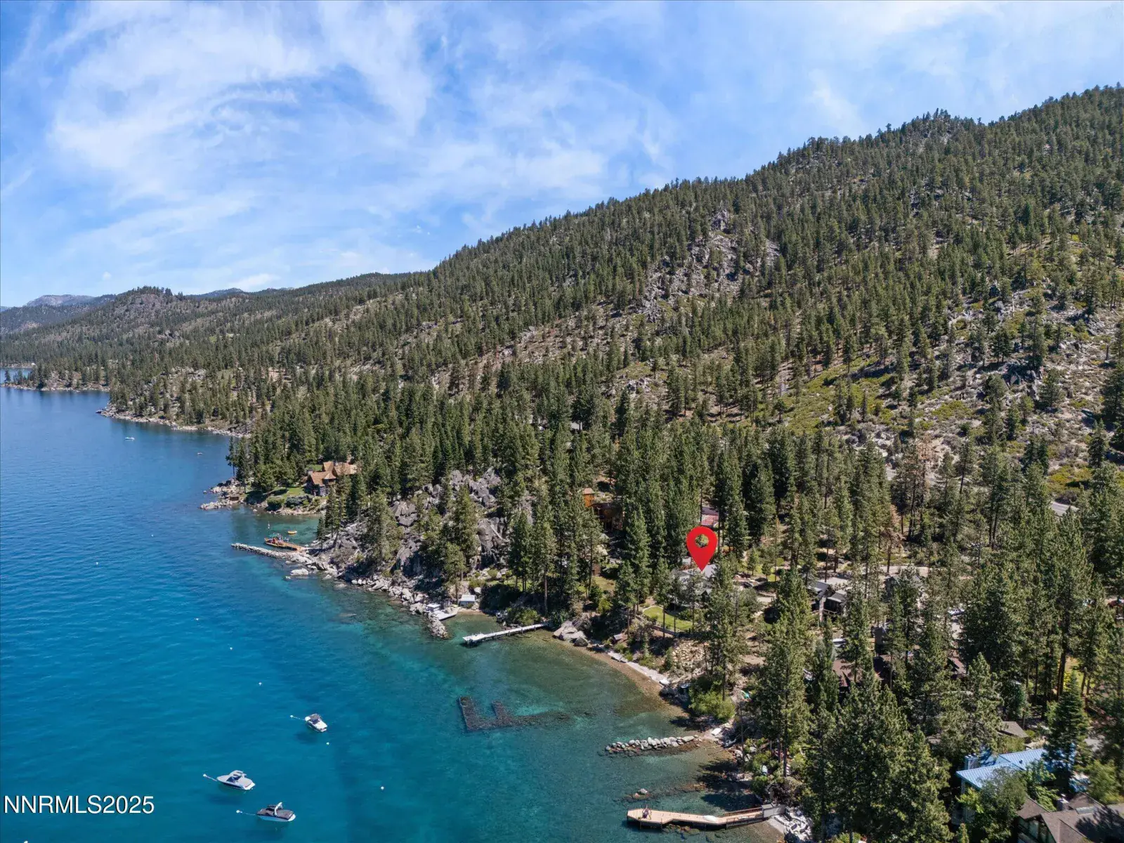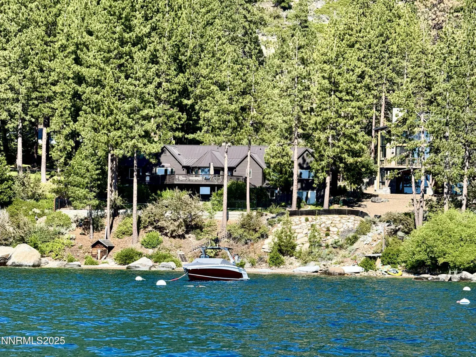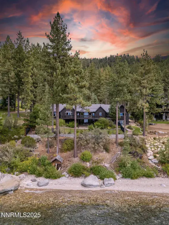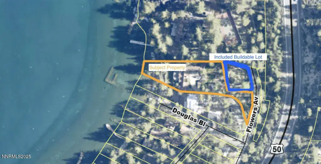 Timeless Lakefront Lodge, including dual lots 1472 & 1474 Flowers Avenue, Glenbrook, NV Once the cherished lakefront estate of baseball legend Ty Cobb, this extraordinary legacy property on Lake Tahoe’s eastern shore is a rare fusion of Old Tahoe craftsmanship and elevated modern living. Encompassing two legal parcels, 1472 Flowers Ave, .87 acres & 1474 Flowers Ave. , .25 acres, totaling 1.13 acres and 50 feet of pristine shoreline, the offering includes a beautifully updated 1938 lodge-style residence, deeded boat buoy, and sunset-facing views that stretch across the lake and Sierra horizon. The primary lakefront home showcases a grand lodge aesthetic with timeless materials: aged knotty pine paneling, restored original 1930s hardwood floors, and a magnificent stone fireplace that anchors the great room. Towering picture windows and expansive lake-view decks blur the line between indoor serenity and outdoor splendor. The remodeled kitchen strikes a perfect balance between rustic warmth and modern utility, with stone countertops, premium appliances, and open sightlines ideal for entertaining or relaxed daily living. A tranquil lakeside primary suite and two guest bedrooms are located on the main level, while a spacious new addition includes a luxe media/family room and a rare 4-car garage. Downstairs, two more bedrooms, a full bath, and ample storage provide flexibility for multi-generational living, guests, or expansion potential. The entire home has been extensively upgraded in thoughtful improvements, including a new standing-seam metal roof, fully redesigned bathroom suite, two new water heaters, water filtration, security cameras, high-end ceiling fans, designer lighting, and custom window treatments. Outdoor living is effortless, from the professionally landscaped gardens and gated drive to a secluded beachfront walkway and fenced backyard oasis. Lakeside decks are ideal for sunset dining, fireside lounging, or watching the waves gently lap the shore. The included upper parcel—1474 Flowers Ave—is a separate, but seamlessly integrated, buildable lakeview lot with conceptual architectural plans, offering an extraordinary opportunity for future development, guesthouse, or estate expansion. Private water rights, a shared well system, and dedicated security upgrades enhance both independence and peace of mind. This is a once-in-a-generation offering for those seeking a refined retreat, a lasting legacy, or a one-of-a-kind lakefront compound along the most coveted shoreline in Lake Tahoe.