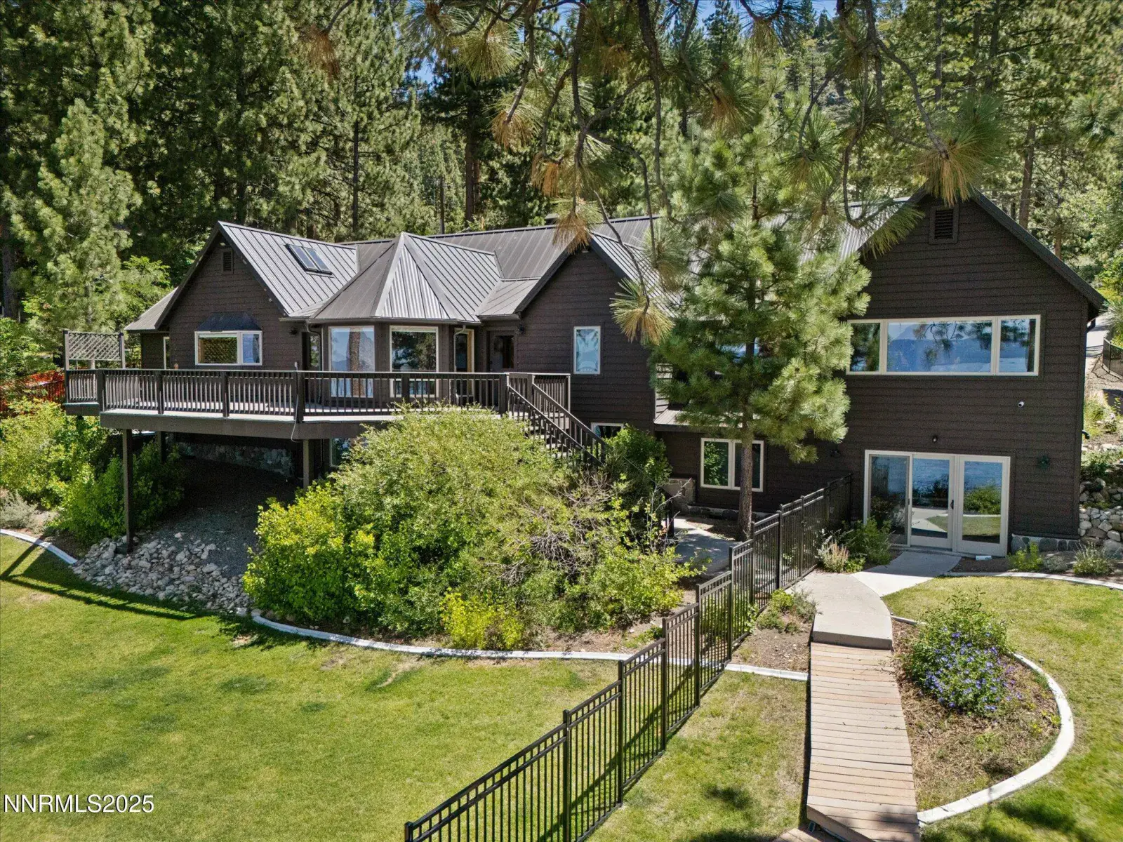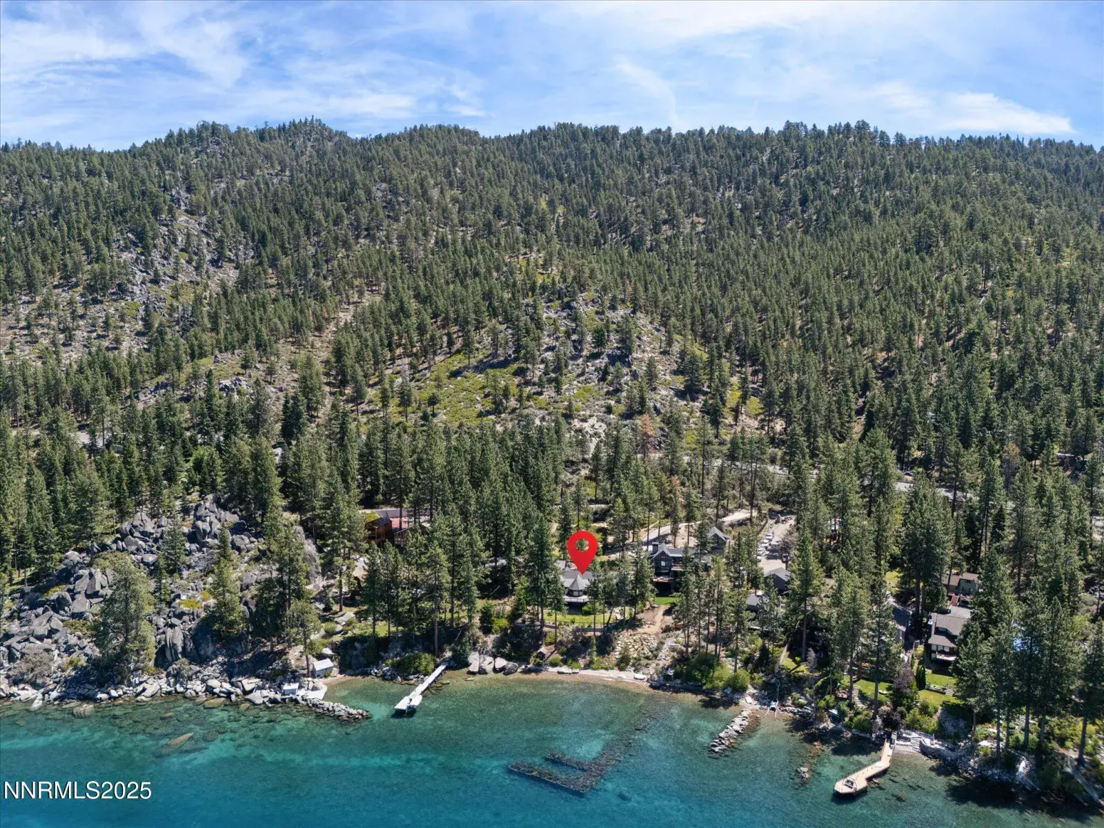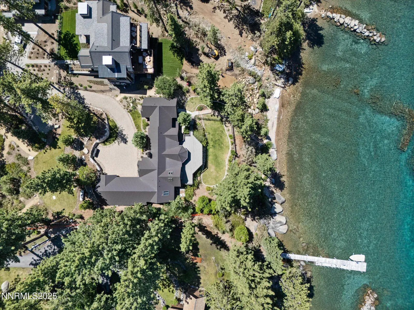 Timeless Lakefront Lodge, including dual lots 1472 & 1474 Flowers Avenue, Glenbrook, NV Once the cherished lakefront estate of baseball legend Ty Cobb, this extraordinary legacy property on Lake Tahoe’s eastern shore is a rare fusion of Old Tahoe craftsmanship and elevated modern living. Encompassing two legal parcels, 1472 Flowers Ave, .87 acres & 1474 Flowers Ave. , .25 acres, totaling 1.13 acres and 50 feet of pristine shoreline, the offering includes a beautifully updated 1938 lodge-style residence, deeded boat buoy, and sunset-facing views that stretch across the lake and Sierra horizon. The primary lakefront home showcases a grand lodge aesthetic with timeless materials: aged knotty pine paneling, restored original 1930s hardwood floors, and a magnificent stone fireplace that anchors the great room. Towering picture windows and expansive lake-view decks blur the line between indoor serenity and outdoor splendor. The remodeled kitchen strikes a perfect balance between rustic warmth and modern utility, with stone countertops, premium appliances, and open sightlines ideal for entertaining or relaxed daily living. A tranquil lakeside primary suite and two guest bedrooms are located on the main level, while a spacious new addition includes a luxe media/family room and a rare 4-car garage. Downstairs, two more bedrooms, a full bath, and ample storage provide flexibility for multi-generational living, guests, or expansion potential. The entire home has been extensively upgraded in thoughtful improvements, including a new standing-seam metal roof, fully redesigned bathroom suite, two new water heaters, water filtration, security cameras, high-end ceiling fans, designer lighting, and custom window treatments. Outdoor living is effortless, from the professionally landscaped gardens and gated drive to a secluded beachfront walkway and fenced backyard oasis. Lakeside decks are ideal for sunset dining, fireside lounging, or watching the waves gently lap the shore. The included upper parcel—1474 Flowers Ave—is a separate, but seamlessly integrated, buildable lakeview lot with conceptual architectural plans, offering an extraordinary opportunity for future development, guesthouse, or estate expansion. Private water rights, a shared well system, and dedicated security upgrades enhance both independence and peace of mind. This is a once-in-a-generation offering for those seeking a refined retreat, a lasting legacy, or a one-of-a-kind lakefront compound along the most coveted shoreline in Lake Tahoe.