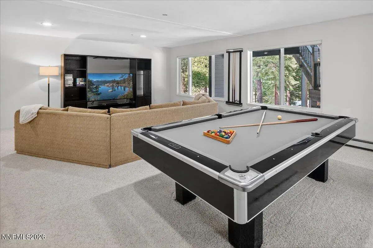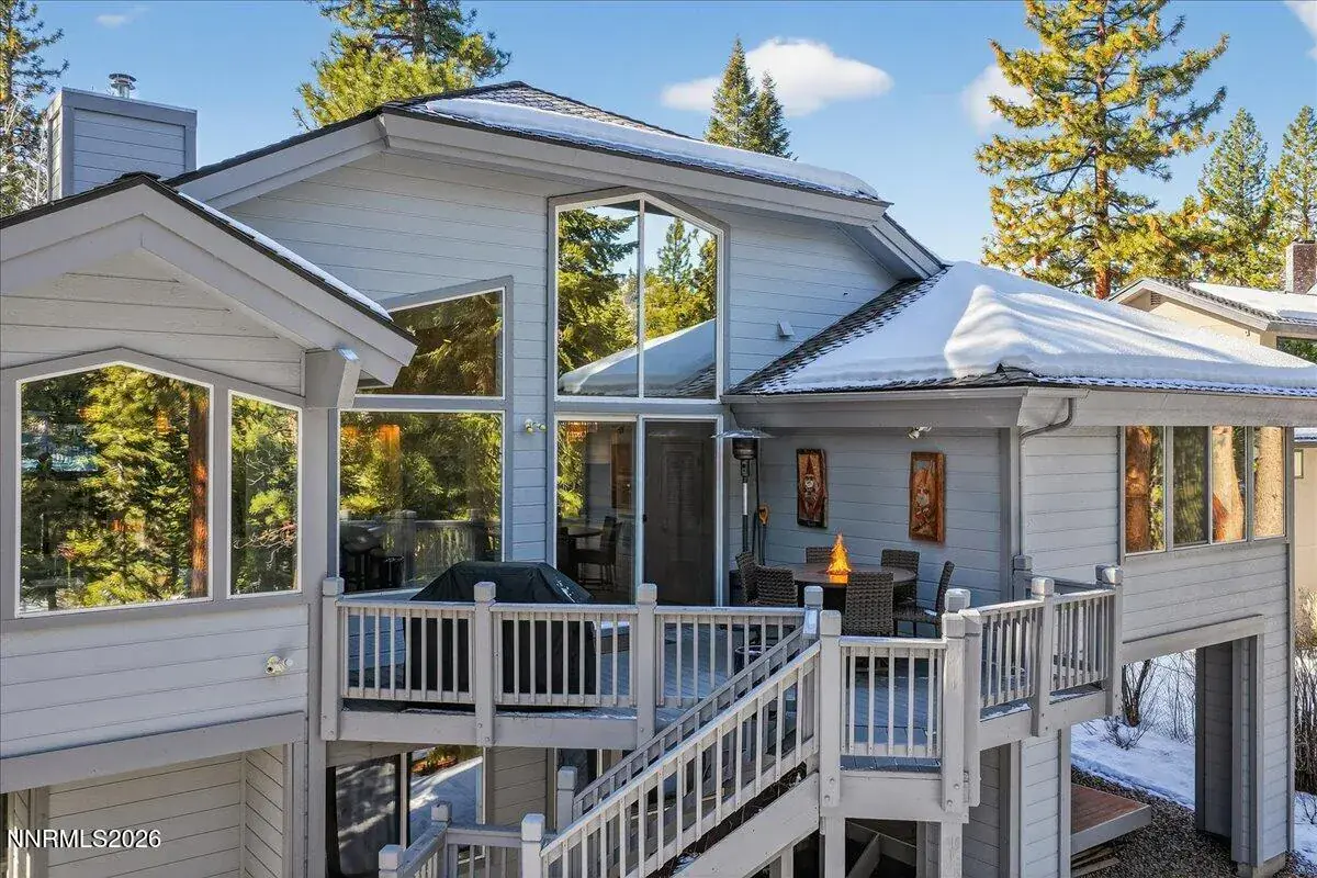 Experience the essence of Tahoe living at 1264 Hidden Woods, a stunning 5,427-sq-ft mountain retreat set on a .41-acre lot backing to National Forest, providing the rare luxury of your own forest escape with access to miles of hiking and biking trails from your own backyard. Nestled in Hidden Woods, an enchanting and highly sought-after Lake Tahoe community, this rare opportunity offers ownership in one of the area’s most exclusive neighborhoods, featuring just 26 custom-designed homes, while underground utility lines preserve the landscapes natural beauty and charm. Most furnishings will be included for a seamless, turnkey experience. This home invites you to dive straight into Tahoe’s renowned four-season lifestyle. Just bring your skis, paddleboard, and sense of adventure. Inside, discover five spacious bedrooms and five-and-a-half baths across two thoughtfully designed levels. The main-level showcases soaring ceilings and expansive windows that flood the space with natural light. A river-rock gas fireplace anchors the living area with warmth and character, while a built-in bar and generous entertaining space make hosting effortless. A dedicated home office offers an inspiring setting for productivity or creative pursuits. The primary suite is a true retreat, featuring it’s own fireplace, two walk-in closets, and an en-suite bath with dual sinks, soaking tub, and separate shower. Two additional guest bedrooms and baths are also located on the main-level, offering ideal single-level living. The lower level offers a spacious secondary living area that doubles as a game and entertainment room, complete with a pool and ping-pong table, plus another built in bar. Wine connoisseurs will delight in the dedicated wine room, perfectly designed to store and showcase a prized collection. A private guest suite with its own en-suite bath and sliding glass door opens to a secluded forest-facing patio, ideal for visitors or extended stays. Fitness enthusiasts will appreciate that one of the bedrooms has been thoughtfully converted into a fully equipped home gym that also has an en-suite bath and walk-in closet. Whether you’re hosting cozy après-ski evenings by the fireplace or celebrating summer barbecues with friends, this residence embodies the ultimate year-round mountain lifestyle. Framed by towering pines, the home features two expansive raised decks, where you can unwind in the Jacuzzi hot tub, with crisp mountain air and tranquil surroundings. A three-car garage provides ample space for vehicles and Tahoe toys. Thoughtfully designed, TRPA-approved plans are available to elevate the home’s already exceptional features. Beyond the property’s boundaries, you’ll have access to a wealth of year-round recreational activities. Explore nearby world-class ski resorts, or enjoy thrilling water sports on the pristine waters of Lake Tahoe. It’s the perfect retreat after a day of outdoor adventures. If you’re seeking a private mountain escape, this luxury retreat is the opportunity you’ve been waiting for. Schedule your private showing today and experience Tahoe living at its finest.
