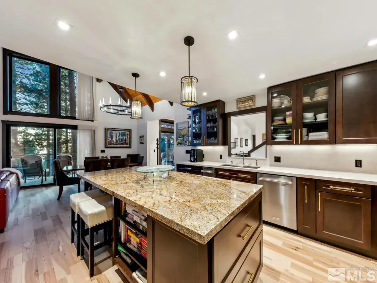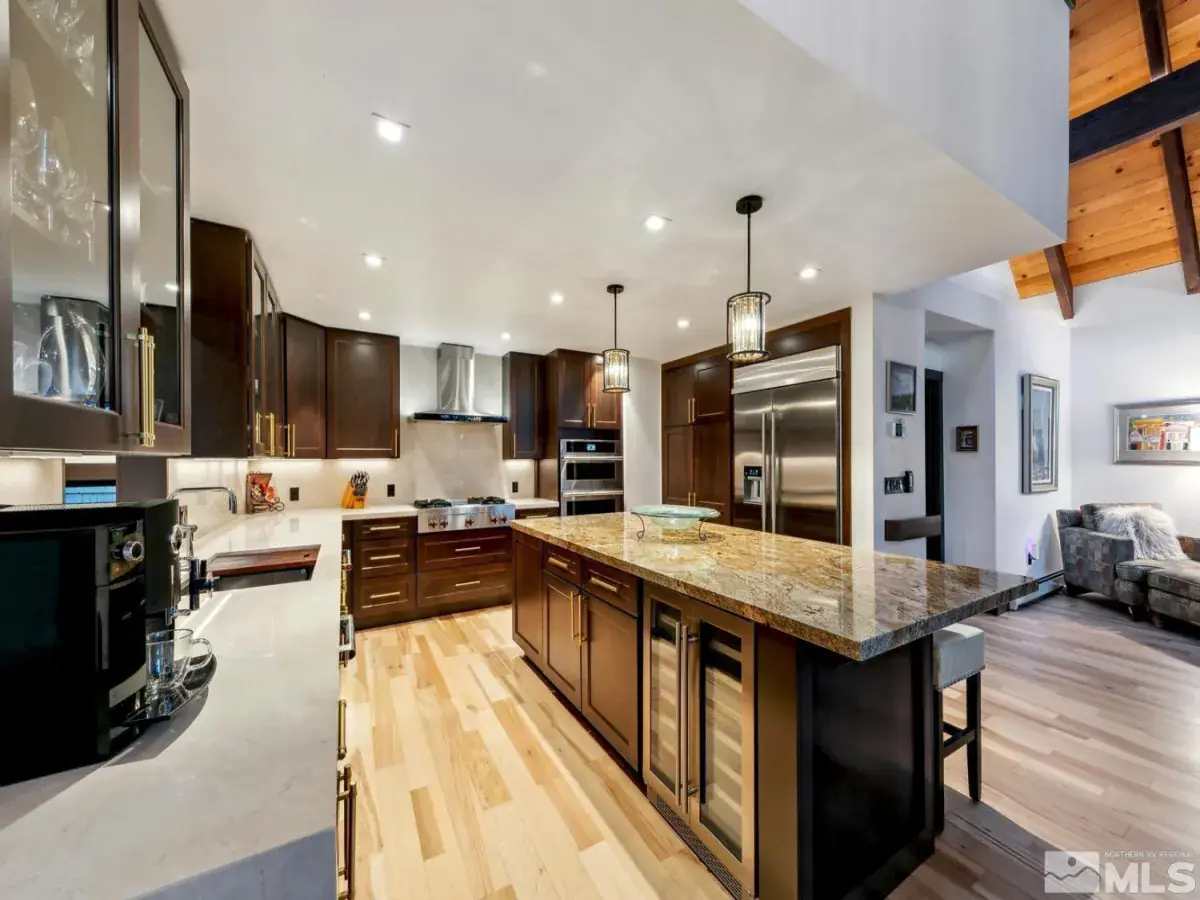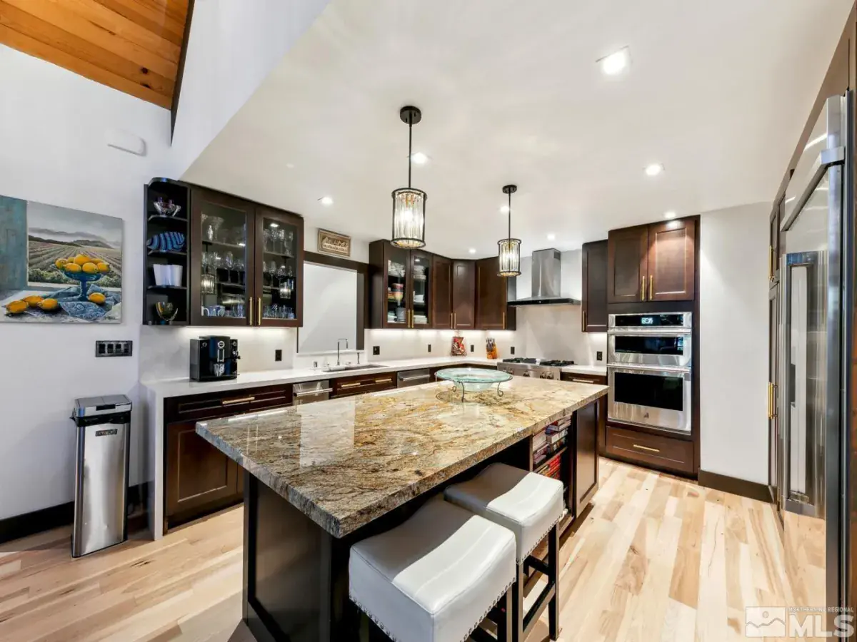 Come see this fully remodeled and just like new home featuring 5 Bedrooms & private office/media room! Nestled in the heart of the picturesque Incline Village, this extraordinary property offers a rare combination of luxury, comfort, and natural beauty. Originally built in 1973, this home has undergone a comprehensive renovation and expansion, completed in June 2024. Designed by renowned local architect Dale Smith of Smith Design Group and expertly crafted by Mark Nielson-General Contractor, the home has been transformed down to the studs with an impeccable eye for detail., Key Features: •Size & Layout: Spanning 3,373 square feet, this expansive home offers generous space across its thoughtfully designed floor plan. •One-of-a-Kind Lot: The low elevation lot provides unparalleled access to peaceful views, blending perfectly with the natural surroundings of Lake Tahoe and the Sierra Nevada mountains. •Gourmet Kitchen: A true showstopper, the kitchen boasts custom cabinetry, Jenn-Air built-in appliances, and luxurious granite and marble surfaces, complete with a waterfall edge. High-end fixtures from Watermark, including hand-dipped polished chrome faucets, add a distinctive touch. The gas range with integrated griddle, oven/microwave combo, and dishwasher ensure both style and function for the modern home chef. •Primary Bath Retreat: Relax and unwind in the spa-like primary bath, featuring custom cabinetry with Quartz surfaces, hand-dipped Watermark fixtures, and a marble feature wall in the shower. A freestanding tub with a Watermark floor filler, large backlit mirror with fog control, and integrated Bluetooth sound system make this a true sanctuary. •Luxurious Details: Hickory flooring throughout the main living level complements the stylish design, while plush carpeting in the rec room and upstairs bedrooms ensures comfort. The home is wired for high-speed internet and features five baseboard heating zones, a Lochinvar boiler, and Rheem Platinum on-demand hot water with recirculation. •Entertainment & Living Spaces: The Great Room showcases a floor-to-ceiling window with two 8-foot sliding doors, allowing natural light to flood the space and seamlessly blending the indoor and outdoor living areas. The room also features elegant ceiling accent lighting, creating an inviting atmosphere. A cozy office with a fireplace and custom cabinetry provides the perfect space for work or relaxation. •Outdoor Living: Enjoy the tranquil surroundings and peeks of the lake on the spacious deck with cedar decking and custom aluminum cable railings from Rail FX. Perfect for entertaining or simply unwinding in the 6-person spa, this offers the ideal space to appreciate the beauty of Incline Village. •Smart Home Features: This home provides peace of mind and cutting-edge convenience. Equipped with a Generac whole-house generator, Simply Safe alarm system with doorbell, security cameras and Wi-Fi-enabled Maytag top-load washer and dryer, new Andersen windows and new doors. Plus, all new electrical, plumbing, drywall (except for two bedrooms). •Sustainable & Efficient: The home is fully TRPA compliant with an updated BMP certificate, ensuring optimal drainage and sustainable landscaping. The property includes a dedicated parking space alongside and in front of the home, a two-car garage with integrated cameras, and is wired for heat tape to support gutters, flat transitions, and drainage to drywells. •Community: Incline Village offers unparalleled recreational opportunities, including skiing at the nearby Diamond Peak Ski Resort, golfing at the Championship Golf Course, and boating on Lake Tahoe. The area’s stunning natural beauty, combined with its upscale amenities, makes this an ideal place to call home. Whether you are looking for a year-round residence or a luxurious getaway, this newly remodeled home in Incline Village is an opportunity not to be missed.