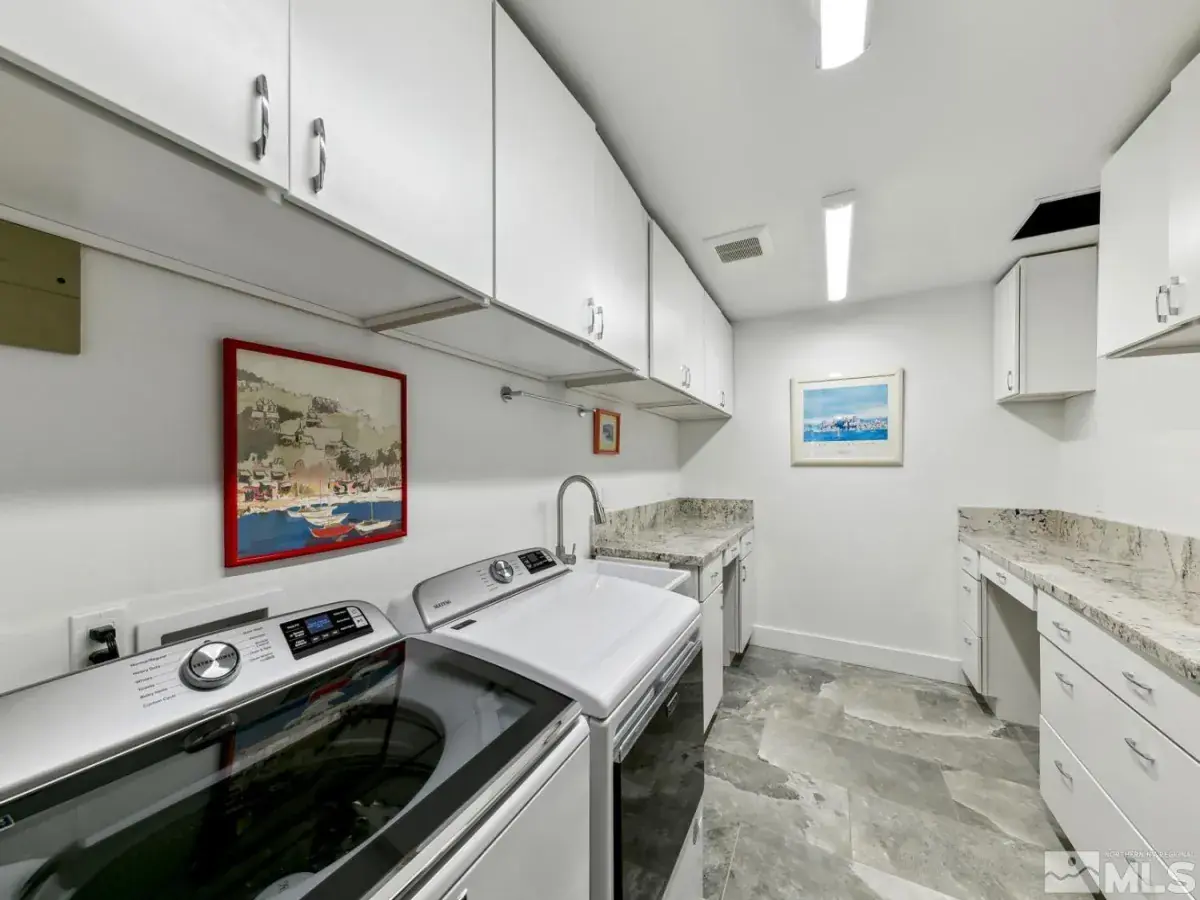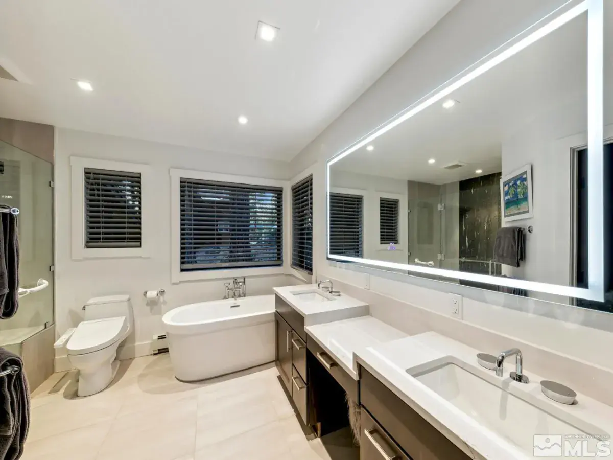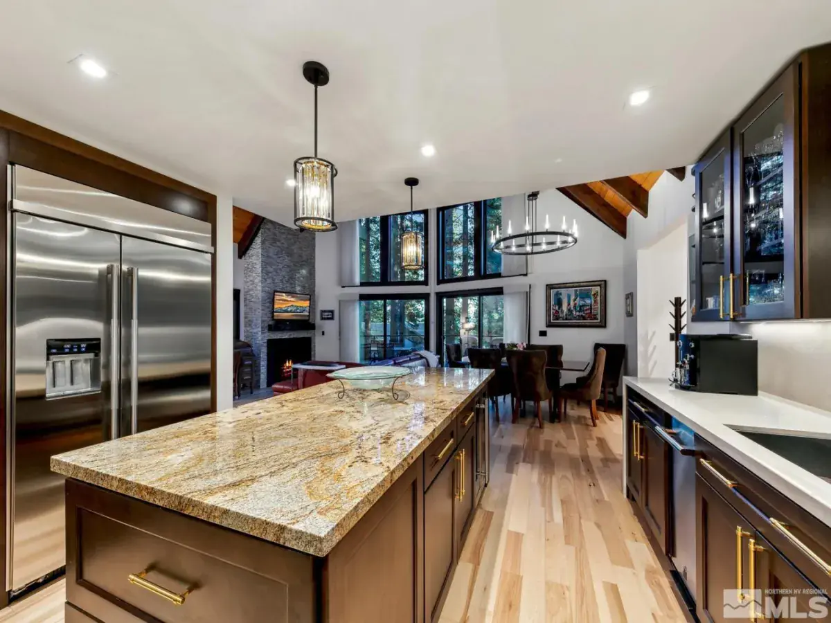 Come see this fully remodeled and just like new home featuring 5 Bedrooms & private office/media room! Nestled in the heart of the picturesque Incline Village, this extraordinary property offers a rare combination of luxury, comfort, and natural beauty. Originally built in 1973, this home has undergone a comprehensive renovation and expansion, completed in June 2024. Designed by renowned local architect Dale Smith of Smith Design Group and expertly crafted by Mark Nielson-General Contractor, the home has been transformed down to the studs with an impeccable eye for detail., Key Features: •Size & Layout: Spanning 3,373 square feet, this expansive home offers generous space across its thoughtfully designed floor plan. •One-of-a-Kind Lot: The low elevation lot provides unparalleled access to peaceful views, blending perfectly with the natural surroundings of Lake Tahoe and the Sierra Nevada mountains. •Gourmet Kitchen: A true showstopper, the kitchen boasts custom cabinetry, Jenn-Air built-in appliances, and luxurious granite and marble surfaces, complete with a waterfall edge. High-end fixtures from Watermark, including hand-dipped polished chrome faucets, add a distinctive touch. The gas range with integrated griddle, oven/microwave combo, and dishwasher ensure both style and function for the modern home chef. •Primary Bath Retreat: Relax and unwind in the spa-like primary bath, featuring custom cabinetry with Quartz surfaces, hand-dipped Watermark fixtures, and a marble feature wall in the shower. A freestanding tub with a Watermark floor filler, large backlit mirror with fog control, and integrated Bluetooth sound system make this a true sanctuary. •Luxurious Details: Hickory flooring throughout the main living level complements the stylish design, while plush carpeting in the rec room and upstairs bedrooms ensures comfort. The home is wired for high-speed internet and features five baseboard heating zones, a Lochinvar boiler, and Rheem Platinum on-demand hot water with recirculation. •Entertainment & Living Spaces: The Great Room showcases a floor-to-ceiling window with two 8-foot sliding doors, allowing natural light to flood the space and seamlessly blending the indoor and outdoor living areas. The room also features elegant ceiling accent lighting, creating an inviting atmosphere. A cozy office with a fireplace and custom cabinetry provides the perfect space for work or relaxation. •Outdoor Living: Enjoy the tranquil surroundings and peeks of the lake on the spacious deck with cedar decking and custom aluminum cable railings from Rail FX. Perfect for entertaining or simply unwinding in the 6-person spa, this offers the ideal space to appreciate the beauty of Incline Village. •Smart Home Features: This home provides peace of mind and cutting-edge convenience. Equipped with a Generac whole-house generator, Simply Safe alarm system with doorbell, security cameras and Wi-Fi-enabled Maytag top-load washer and dryer, new Andersen windows and new doors. Plus, all new electrical, plumbing, drywall (except for two bedrooms). •Sustainable & Efficient: The home is fully TRPA compliant with an updated BMP certificate, ensuring optimal drainage and sustainable landscaping. The property includes a dedicated parking space alongside and in front of the home, a two-car garage with integrated cameras, and is wired for heat tape to support gutters, flat transitions, and drainage to drywells. •Community: Incline Village offers unparalleled recreational opportunities, including skiing at the nearby Diamond Peak Ski Resort, golfing at the Championship Golf Course, and boating on Lake Tahoe. The area’s stunning natural beauty, combined with its upscale amenities, makes this an ideal place to call home. Whether you are looking for a year-round residence or a luxurious getaway, this newly remodeled home in Incline Village is an opportunity not to be missed.