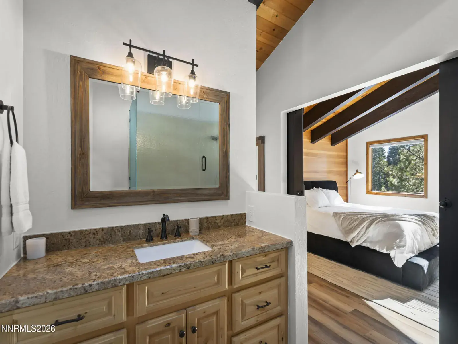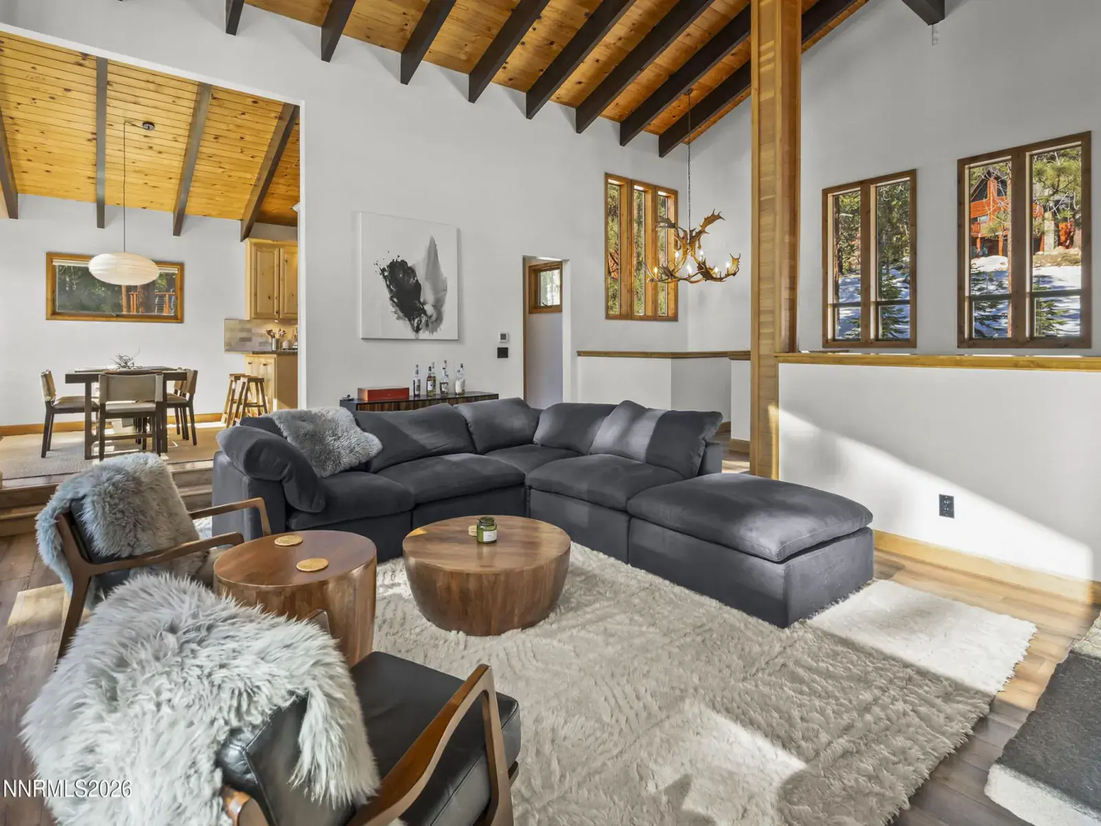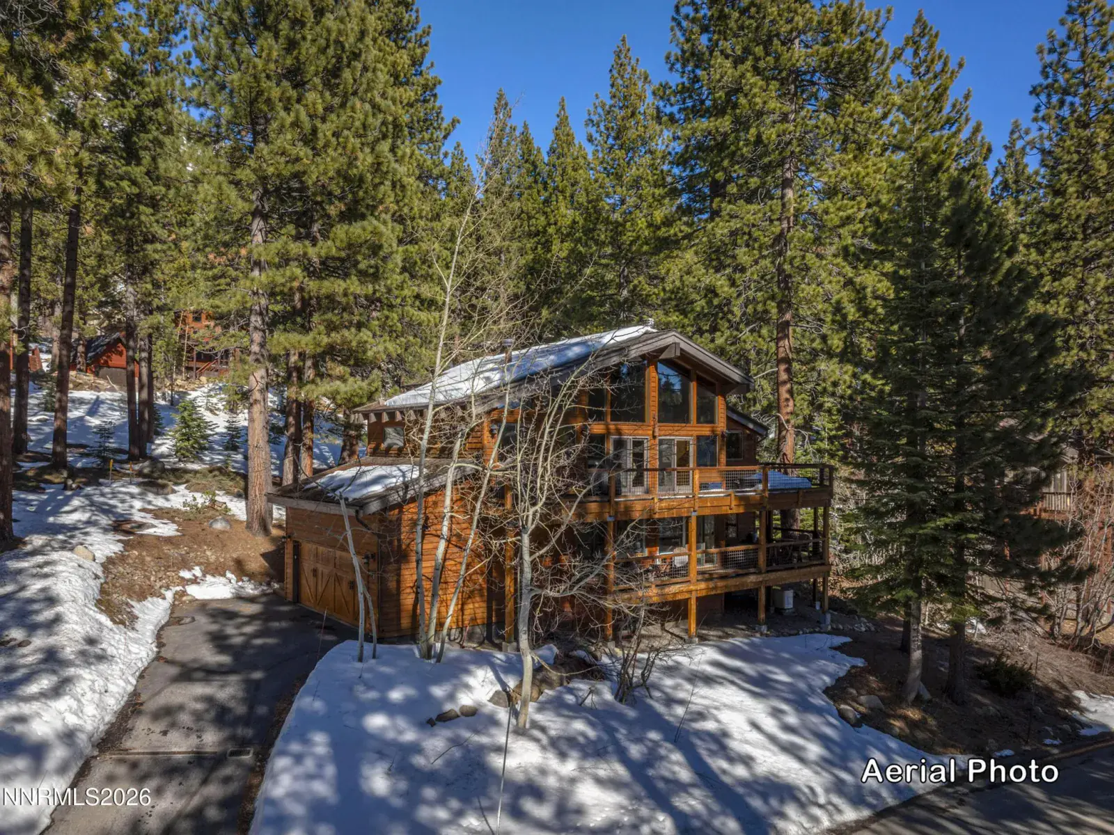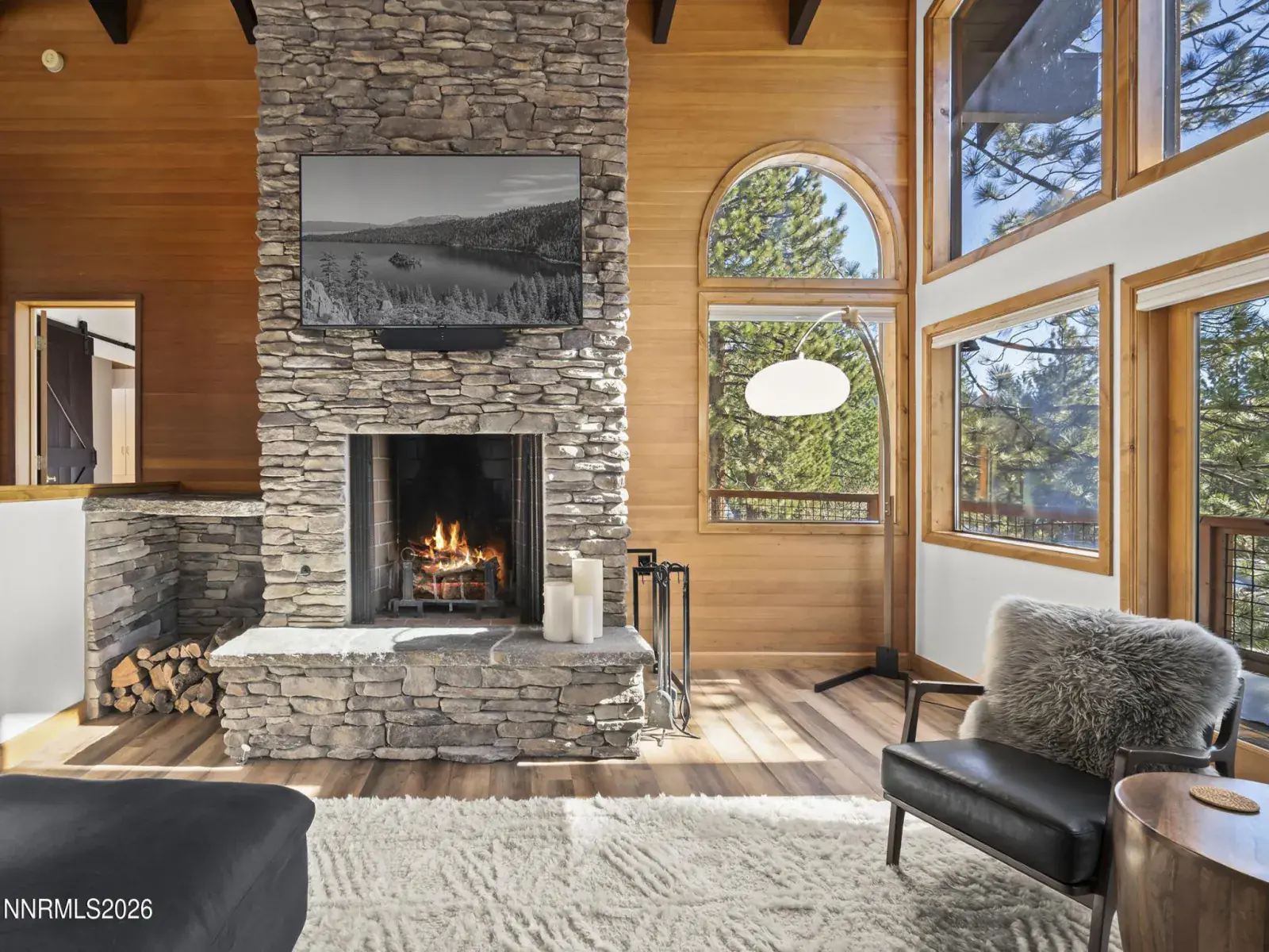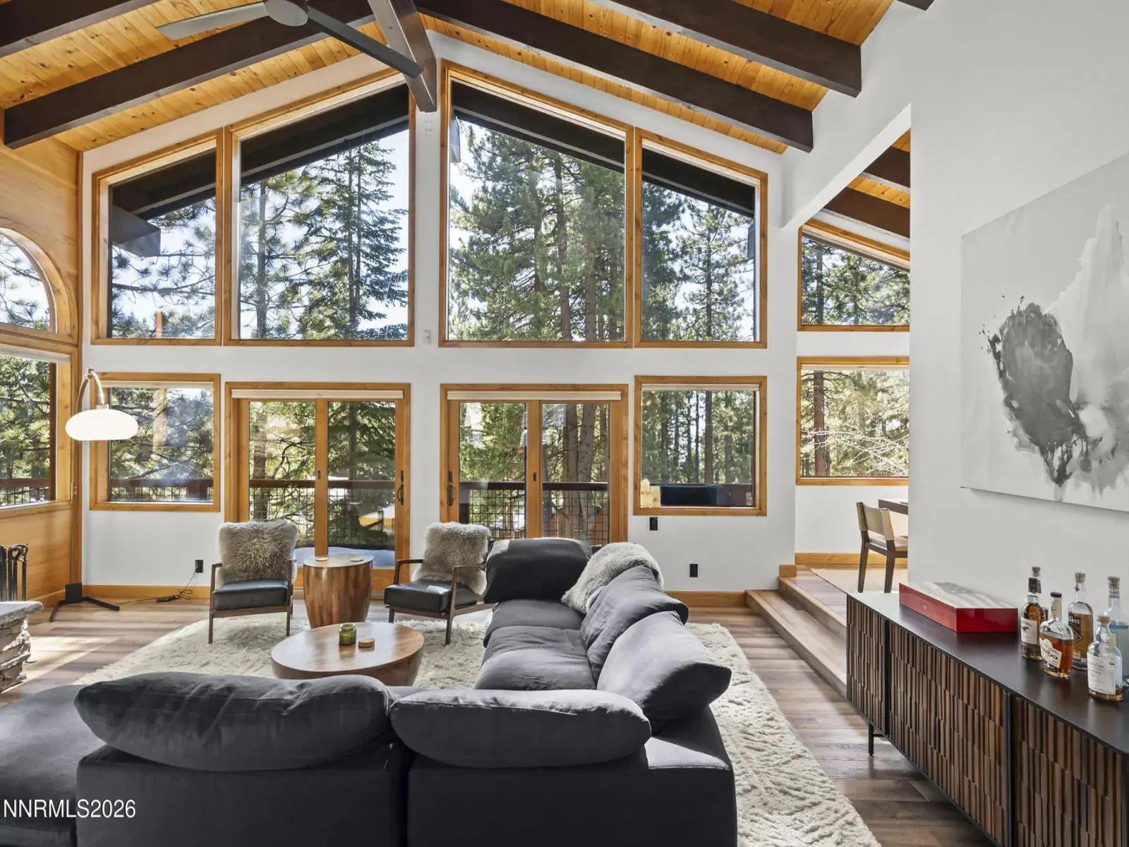Set along a quiet, low-traffic road & bordered by Forest Service land, this south-facing Incline Village mountain retreat enjoys exceptional year-round sun exposure with filtered lake & surrounding peak views. Recently renovated with mountain modern finishes, the 4-bedroom, 2.5-bath home features luxury laminate flooring, granite countertops, & updated wood siding. The flexible fourth bedroom functions perfectly as a den or office. Soaring open-beam ceilings & a dramatic wall of windows flood the living area with natural light & frame the forested setting. Two expansive decks invite peaceful summer evenings among the pines, while dual wood-burning fireplaces create a warm alpine atmosphere in winter. The primary suite offers a soaking tub/shower combo, & skylight for more natural light. The attached two-car garage adds storage & everyday convenience. Enjoy full Incline Village amenities & Nevada tax advantages — ideal as a primary residence, vacation escape, or investment opportunity.