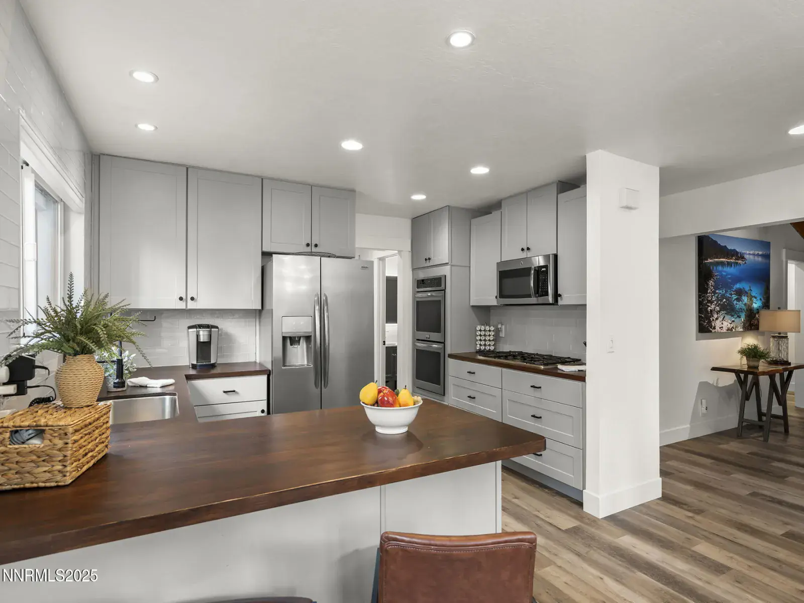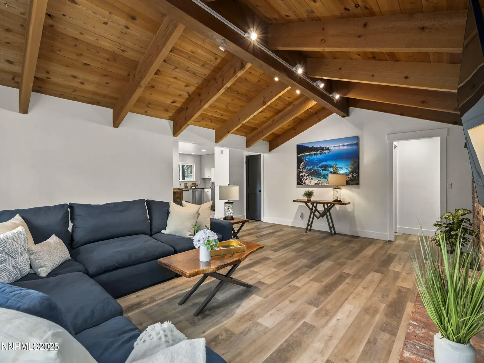 Every day feels like a Tahoe vacation in this beautifully remodeled single-level home in Incline Village’s sought-after Lakeview neighborhood. Just a short stroll to Village Center shops, favorite restaurants, and private Incline beaches, it offers easy access to everything you love about Tahoe. A sun-filled great room with vaulted, beamed ceilings and a cozy gas fireplace sets a welcoming tone, while the chef-friendly kitchen features stainless steel appliances, double ovens, a gas range, and butcher-block counters. Recent upgrades include luxury vinyl plank flooring, roof (2019), AC (2018), water heater (2023), newer windows and doors, Nest thermostat with smart-home controls, and freshly painted interior. Outdoor living shines with a private fenced backyard with patio and Trex deck. An oversized 3-car garage with tall ceilings and epoxy floor completes this move-in ready home, perfectly blending style, comfort, and the best of Lake Tahoe living.
