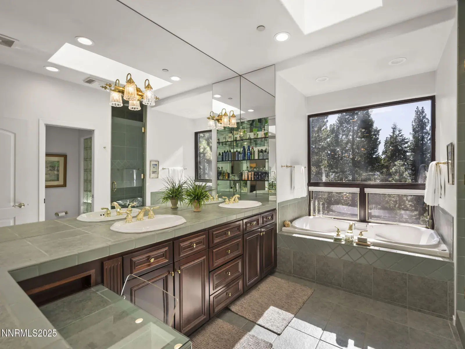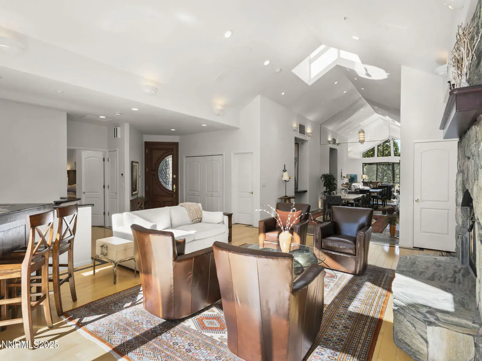 The main level welcomes you with soaring vaulted ceilings, skylights that flood the space with natural light, and a warm river rock fireplace with insert. Hardwood floors flow seamlessly through the open living room, and primary bedroom. Remodeled dining area, painted cabinetry in kitchen,w/ new Subzero refrigerator. An expansive deck extends the living space outdoors with serene lake views. The main floor also offers a half bath, the luxurious primary suite w/ two walk-in closets, a spa bath, separate shower, and a private deck. The lower level is ideal for gatherings, complete with a spacious family room, wet bar, and direct access to the backyard. Three additional bedrooms (or office), a full bath, and an extra half bath provide versatility for guests, family, or work-from-home needs. A well-appointed laundry room with built-in cabinetry and sink. Upgrades include a fire sprinkler system, central vac, air conditioning, newer composition roof, and full-house generator.