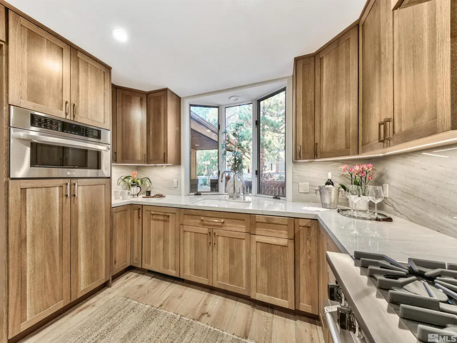 Discover modern luxury at VILLAGE HIGHLANDS. This exquisitely remodeled unit combines style and convenience, nestled in an ultimate location just steps from beaches and town. The open floor plan features custom oak cabinets and Viking appliances, with in-floor hydronic heating ensuring year-round comfort. Three spacious bedrooms each boast en-suite bathrooms, providing privacy for all. A large two-car garage, offers ample space for vehicles and toys. With its prime location and modern amenities, this home o