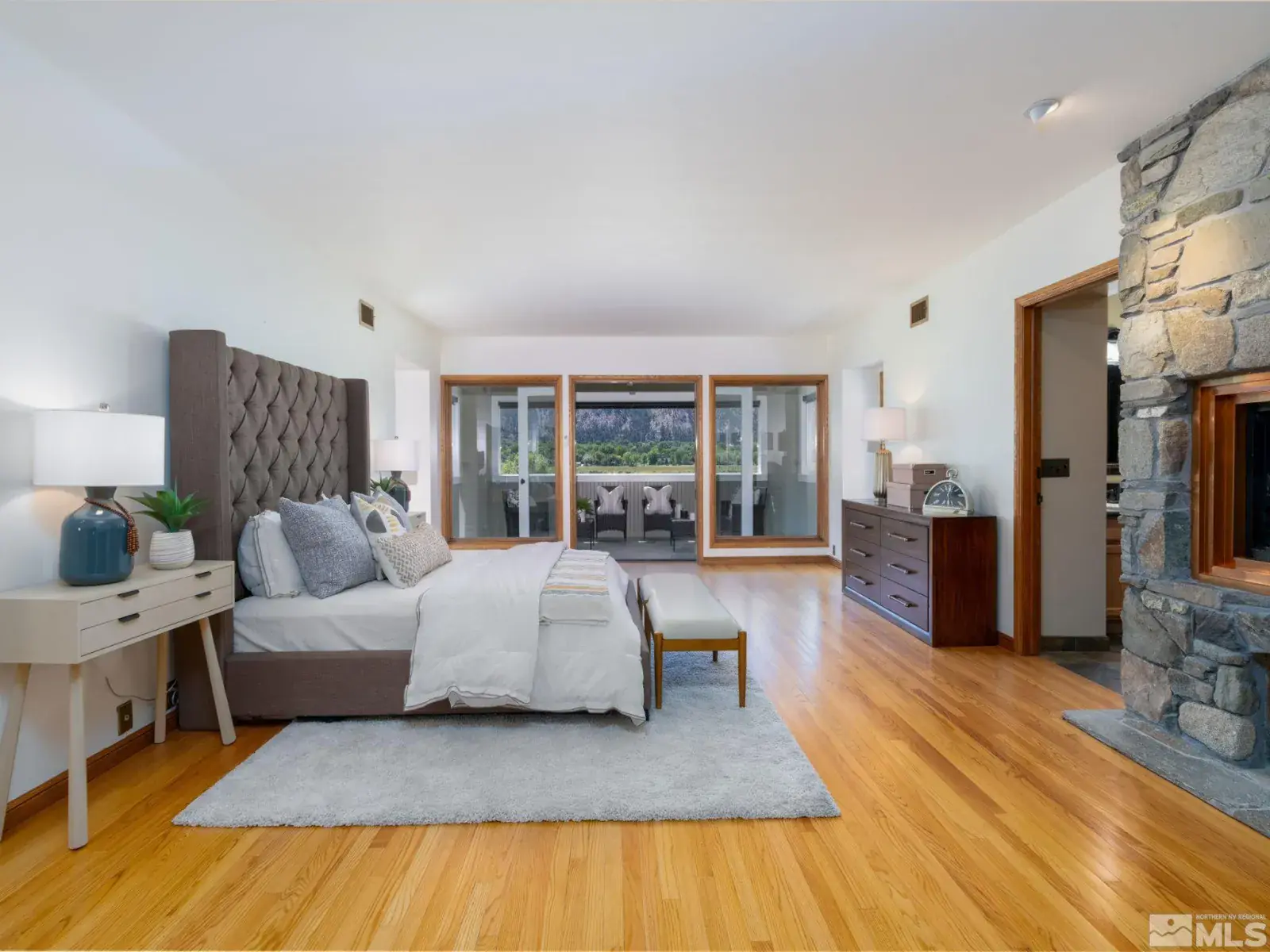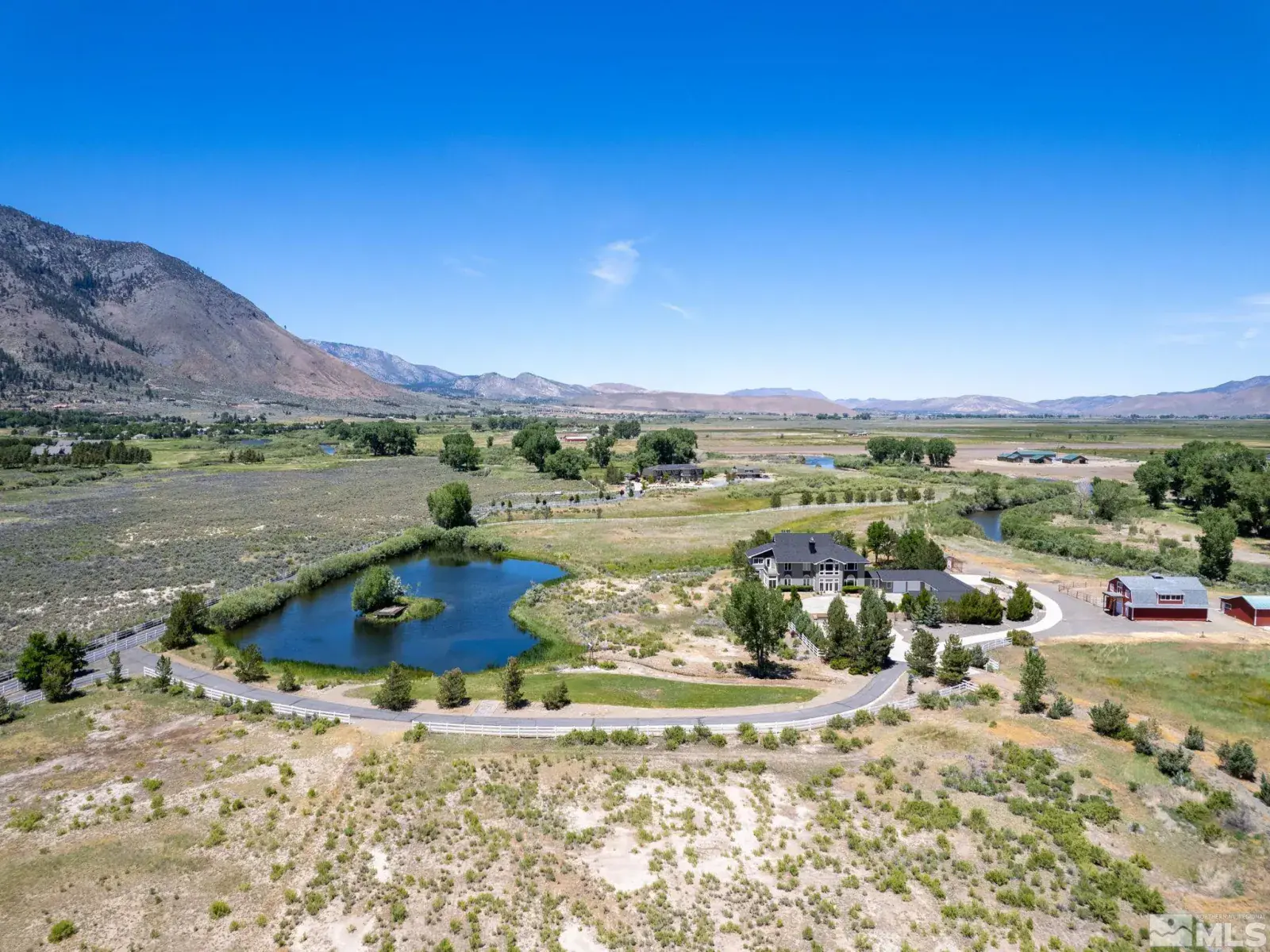 Paradise awaits at this picturesque 25-acre property. Highlights include 6 bedrooms with 2 master suites featuring private baths and fireplaces, 4 1/2 baths including “Jack & Jill” bathrooms, and multiple living areas adorned with fireplaces. The chef’s kitchen offers a commercial range, dual sinks, and ample counter space, complemented by oak and solid flagstone floors throughout, enclosed patios, and exterior balconies with breathtaking views., Additional features include an elevator, well water supply, natural gas, and 4 heating/air conditioning systems for comfort. The beautifully landscaped backyard boasts mature trees, a 6-car attached garage expandable to 8 bays, with workshop areas, half-bath, and secured storage. A new 40-year roof ensures durability. Outdoor amenities include 750 feet of Carson River frontage, extensive vinyl fencing dividing the property into pastures, and additional outbuildings such as a 3,200 sq. ft. barn and a 3-bay agricultural garage. Surrounded by serene landscapes and bordering the Carson River and a 750-acre nature preserve, the estate attracts diverse wildlife including deer, quail, hawks, eagles, and waterfowl. A stocked pond enhances the tranquil ambiance. Boasting over 7,000 sq. ft. of luxurious living space, the European Ranch-style home features a spacious and open layout perfect for entertaining. Don’t miss this rare opportunity to own a piece of Genoa’s history offering unmatched privacy and luxury living. Schedule your private tour today!