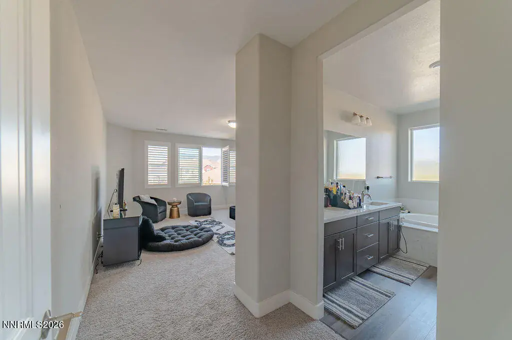 New Listing in the Heart of Minden, NV! Welcome to this stunning 2,958 sq. ft. home built in 2022, perfectly located near Minden Elementary and Douglas High School, just minutes from local restaurants, and a short drive to world-class destinations—20 minutes to Heavenly Ski Resort in Lake Tahoe and 15 minutes to Carson City, the Nevada State Capital. This thoughtfully designed home features two oversized primary suites (one conveniently located on the main level), plus a spacious loft area by the primary suite upstairs. The chef’s kitchen offers stainless steel appliances, granite countertops, an oversized island, pantry, and luxury finishes—a perfect space for gathering and entertaining. The garage is equally impressive with epoxy flooring, additional counters and cabinetry, plus a utility sink for added convenience. Other highlights include luxury vinyl plank flooring, plantation shutters, and a laundry room with cabinets and a sink. Step outside to a beautifully landscaped yard featuring xeriscape, artificial grass, and a built-in pergola—ideal for entertaining and low-maintenance living. This home truly combines modern luxury with prime location—don’t miss your chance to make it yours!