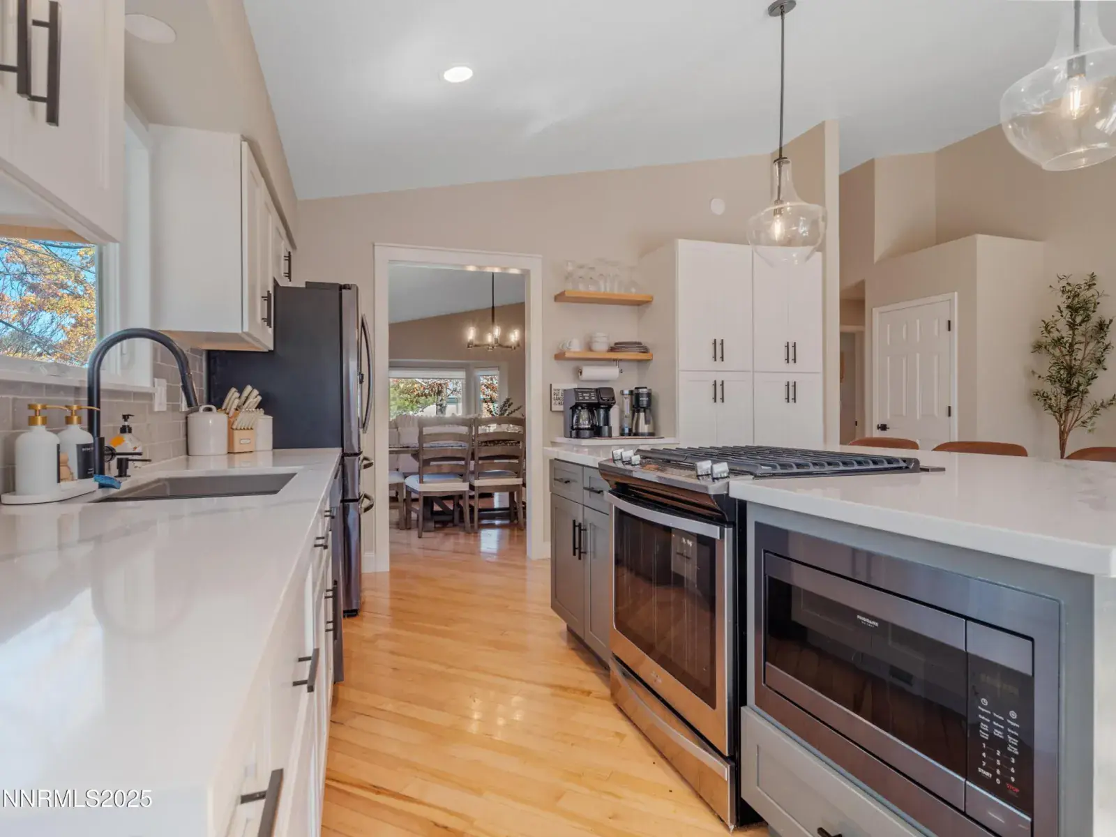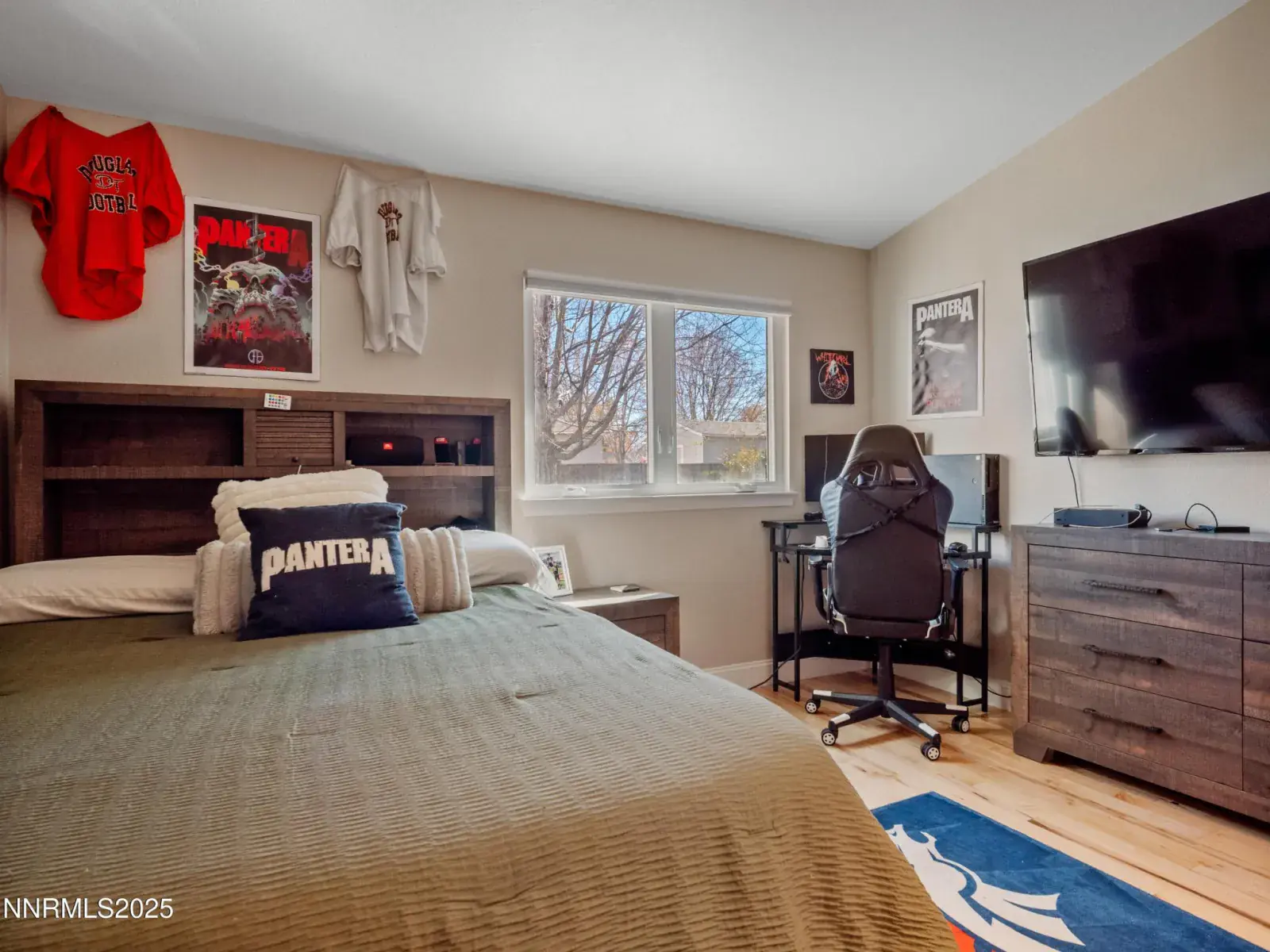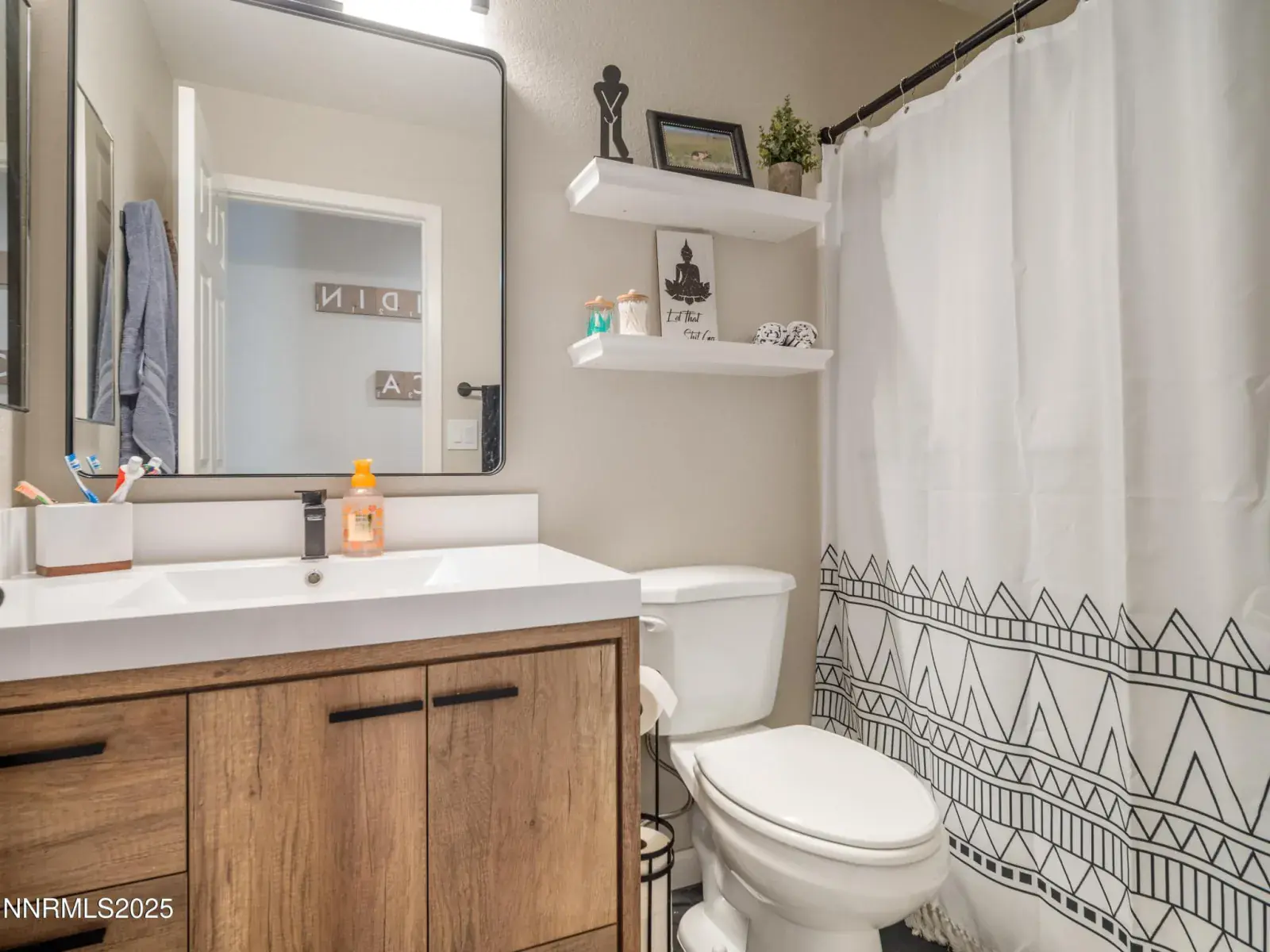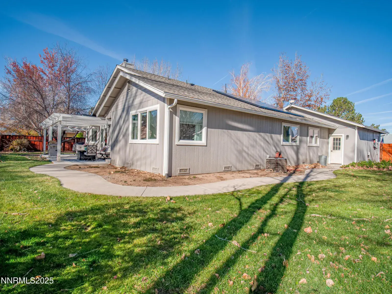 Move right into 829 Mahogany Drive — a completely updated home in Minden’s coveted Westwood community, offering exceptional value and modern upgrades throughout. This meticulously maintained property has been thoughtfully upgraded over the years and is truly move-in ready. Step inside this 4 bedroom, 2 1/2 bath home to find gorgeous hardwood floors throughout, newer carpet, and fresh interior and exterior paint. The fully paid-off Tesla solar panels and EV charger add exceptional value and efficiency. Outside, you will see over 30k in recent concrete work including an extended RV/boat parking pad, spacious patio off the kitchen, and a beautifully landscaped yard with lush greenery, a pergola, gas firepit, and BBQ stub — perfect for outdoor entertaining. The heart of the home features an updated kitchen filled with natural light, highlighted by a large quartz island, modern cabinetry, and quality appliances. The open-concept layout flows seamlessly into the living area, while a separate dining space near the entry offers versatility for gatherings. The primary suite is a true retreat, boasting a fully remodeled bathroom with porcelain tile floors, a custom walk-in shower with dual shower heads, and designer lighting. Set on nearly one-third of an acre, this home offers privacy, space, and charm — complete with a large side yard, over 30k in a new concrete for RV/ Boat parking pad that extends past the gate with new concrete back patio and a 10×12 storage shed. Located just minutes from Minden’s shopping, parks, and schools, and within 20 minutes to Heavenly Ski Resort (NV side) or 45 minutes to South Reno, this property perfectly combines comfort, convenience, and style. Don’t miss this rare opportunity — this Westwood gem is priced to sell!