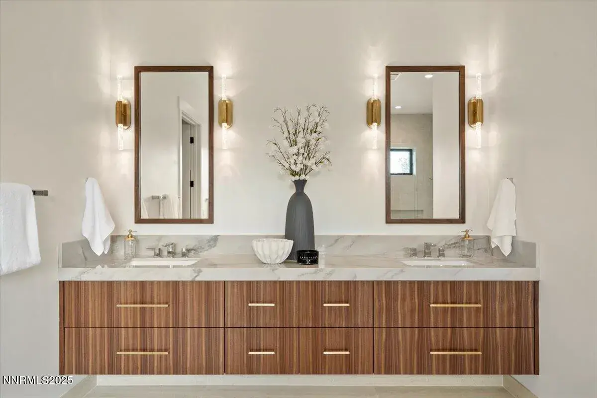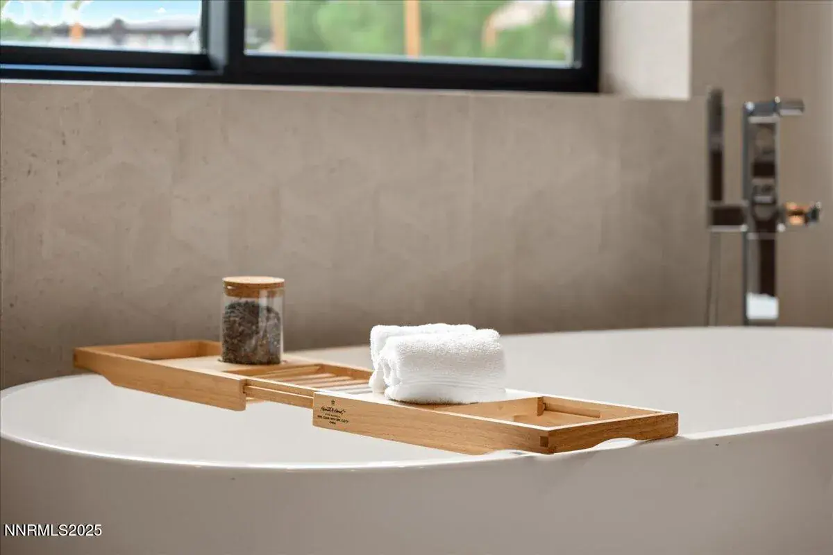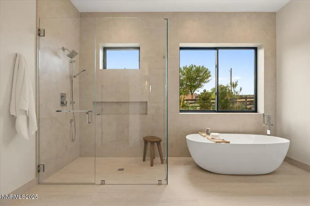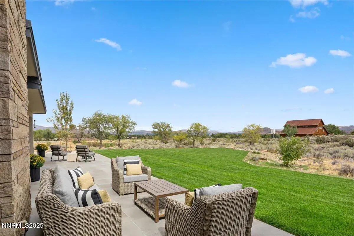 Welcome to 10 Glenhaven Drive, the first completed residence at Glenhaven, Reno’s newest custom home community. This 4,512-sqft, 4-bedroom home set on nearly 3 acres harmoniously combines modern design with a peaceful setting in a highly sought-after location. Starting from the outside in, this contemporary residence incorporates high-quality materials and elevated design. Natural sandstone cladding, metal roofing, and cedar accents combine for a striking exterior that sets an upscale tone for what’s to come, inside. Sunlight pours in through the glass entryway with 12-foot ceilings to create an airy and expansive ambiance that is continued by the white oak flooring and 10-foot ceilings found throughout the rest of the home. The home is centered around the open living and kitchen area, featuring custom walnut cabinetry by a local craftsman, natural quartzite counters, and premium Wolf, Bosch, and Sub-Zero appliances. A separate butler’s pantry with sink and dishwasher provides additional functionality and storage. Entertaining family and friends will be a privilege for guests and the host alike in the spacious dining area offset by a stylish dry bar equipped with a full-height wine cooler and ice machine. Designer pendant lighting and a 60″ gas fireplace with custom walnut paneling bring elegance and artistry to the Great Room, while three sets of sliding glass doors open to a large patio for seamless indoor-outdoor flow. The primary suite is a tranquil haven with captivating views and direct patio access, allowing nature to become a source of calm and reflection. The spa-like bath is a private retreat featuring a tiled shower, soaking tub, custom vanity, designer lighting, and bespoke mirrors. The lavishness continues in the massive primary closet, outfitted with built-in storage, chandelier, and LG Styler steam cabinet for added convenience. Each of the home’s secondary bedrooms includes generous closet space and a private ensuite bathroom with custom vanity, natural stone countertop, and decorative lighting. The sun-splashed office, which can alternatively serve as a bedroom, is an inspiring workspace with oversized windows that frame direct views of Mt Rose. Upstairs, a ~600-square-foot bonus room and large covered balcony are the ideal place to enjoy informal gatherings and take in the impressive city views. A wet bar and fifth full bathroom complete this versatile space. Two garages provide parking for four vehicles and will delight car enthusiasts and hobbyists alike. The single-bay garage offers myriad alternative uses, including shop, studio, fitness room, or golf simulator. The exterior is fully landscaped, enhancing the home’s curb appeal and providing a serene outdoor environment to enjoy year-round. Glenhaven is a boutique gated community with 24 custom homesites located in prime South Reno with conveniences less than 5 minutes away. Don’t miss this opportunity to embrace the town and country lifestyle and make Glenhaven Drive your new address!