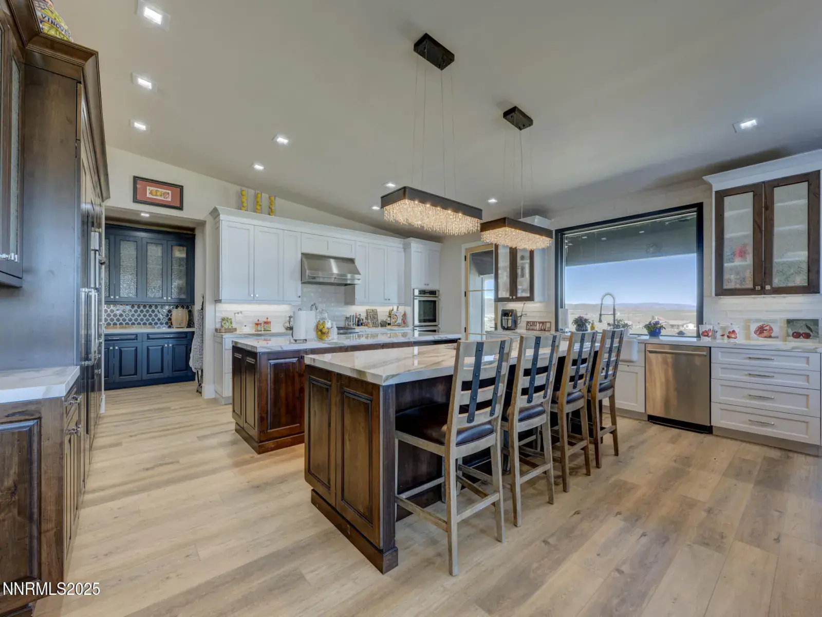 Rare Find in Silver Knolls! This custom Mountain Modern Farmhouse sits on a full acre with unobstructed 360° views of the surrounding mountains, valley, and desert—truly a one-of-a-kind setting in an established neighborhood. Zoned for horses and no HOA, this property provides the freedom and space you’re looking for. The home features an open, light-filled floor plan with soaring ceilings and beautiful high-end finishes throughout. The luxurious primary bathroom boasts a modern wet bath design, combining a soaking tub and shower in the same space, complete with heated floors for spa-like comfort. A fully self-sustained apartment with a separate entrance includes its own bedroom, living room, full kitchen, bathroom, and laundry—ideal for guests, multigenerational living, or rental income (currently rents for 1,800/month). The chef’s kitchen is a showstopper, featuring two large islands, rich alder cabinetry, two sinks, built-in refrigerator with wine tower, and a massive butler’s pantry perfect for entertaining and storage. The oversized garage (833 sq ft) offers 12′ ceilings and extra-large doors—spacious enough to accommodate an RV, boat or even a workshop. Don’t miss this rare opportunity to own a stunning, versatile property in a sought-after rural location—minutes from town, but a world apart!
