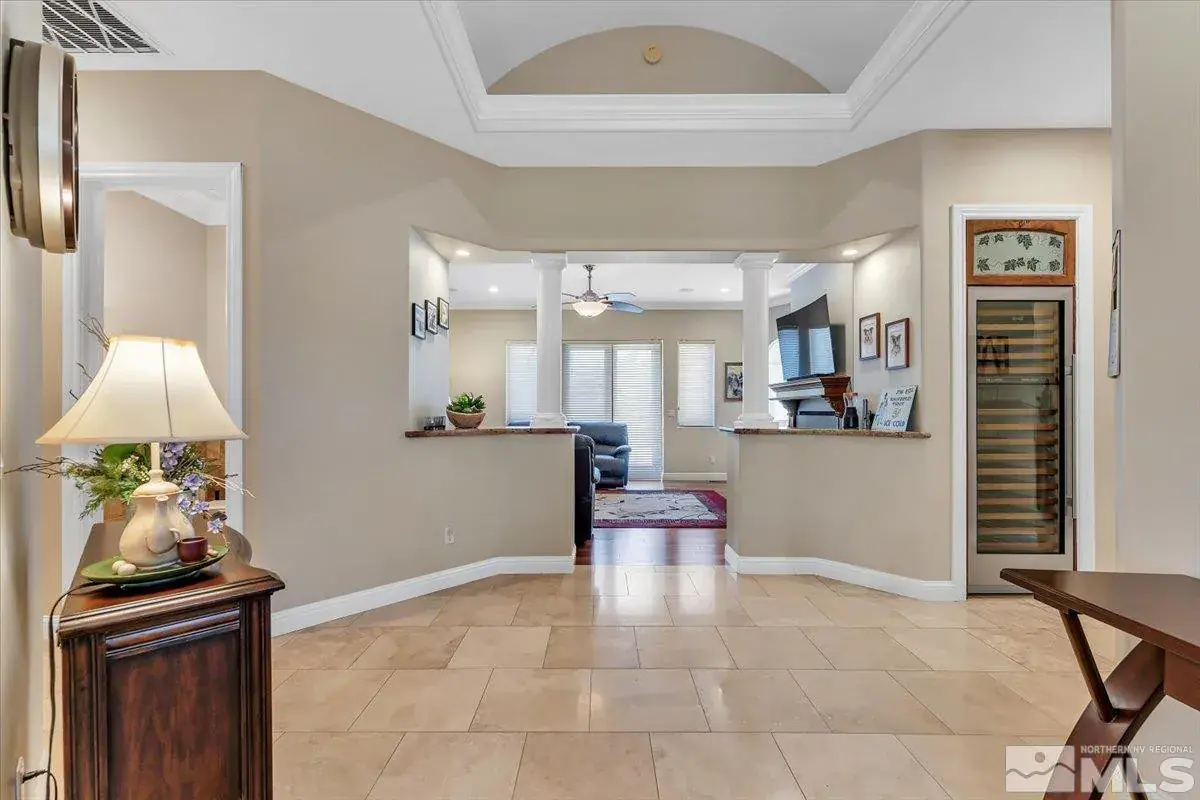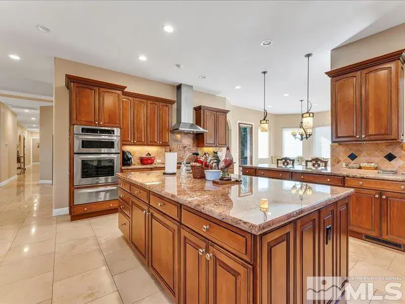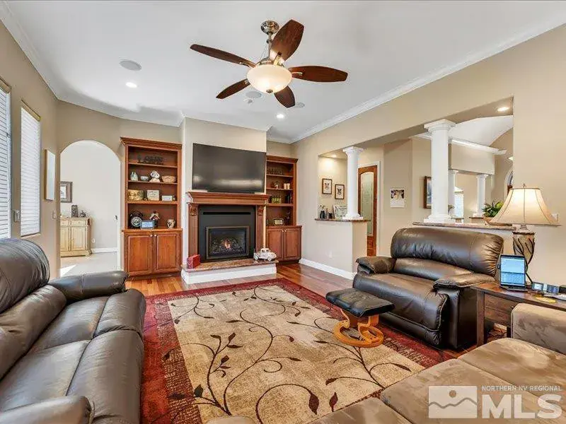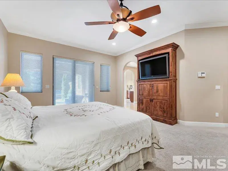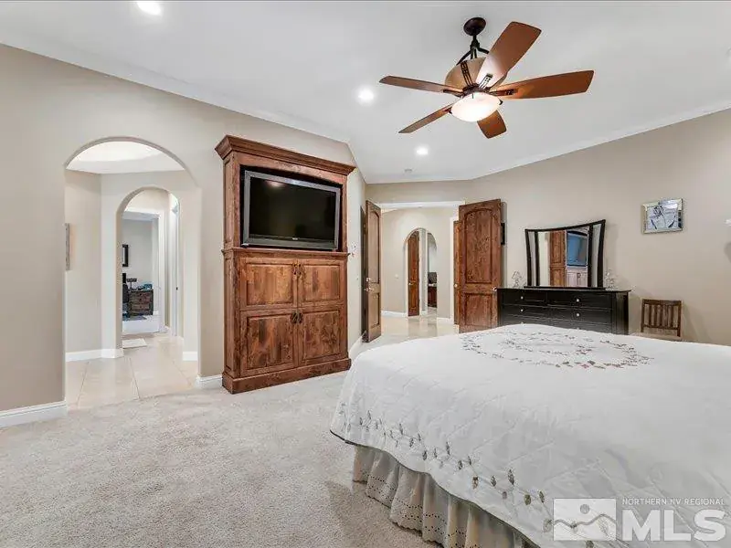 A South Reno Estate That Redefines Luxury Living – With No HOA. If you’re looking for a home that offers both Privacy and beautiful Trees, this sprawling single-story estate in South Reno is for you. Step through the grand foyer, and you’re greeted by a series of expansive common areas, each boasting luxurious flooring that creates a warm yet sophisticated ambiance. This home seamlessly blends modern upgrades with timeless appeal. And if you’re into entertaining, this place has you covered. There’s a custom home theater, a wine fridge big enough to keep the collection ready for guests, an in-ground pool, and a garage setup that’s a car lover’s dream. The kitchen features top-of-the-line appliances, a Wolf range, granite countertops, and opens to a dining area with views of the lush grounds and sparkling pool. And, the kitchen is a chef’s dream come to life – complete with stunning cabinetry, sleek stainless-steel appliances, an oversized island, and a breakfast bar. It’s got a bit of everything: striking architectural details, a layout that’s equal parts cozy and impressive, and finishes that make every room feel like a statement piece. It’s the kind of place that invites you to entertain, unwind, and just live without compromise. For entertaining or everyday relaxation there is a formal dining room and a living room. The family room, with its cozy fireplace, opens directly to the pool and gazebo area. The master suite is the ultimate retreat complete with access to a covered patio and proximity to the pool and hot tub. And, of course, you’ve got separate his-and-her bath areas, with his featuring a steam shower. The oversized closet and adjacent office space round out the suite, making it as functional as it is luxurious. Nestled in an exclusive, gated compound of just three custom homes, this estate offers the privacy you crave with all the convenience you need. Located close to golf courses, major shopping, and fine dining, you’re also just 15 minutes from Reno-Tahoe International Airport and 25 minutes from Lake Tahoe. This property boasts construction with insulated concrete forms, meaning superior energy efficiency. Remodeled in 2014 to add a home theater, a private cabana area and expand the RV garage. With three bays plus room for an RV, you’ve got space for your cars and your next project. If you’re not filling it with vehicles, the space could easily convert to guest quarters. Piano is not included in the purchase price but could be sold if buyer desires.