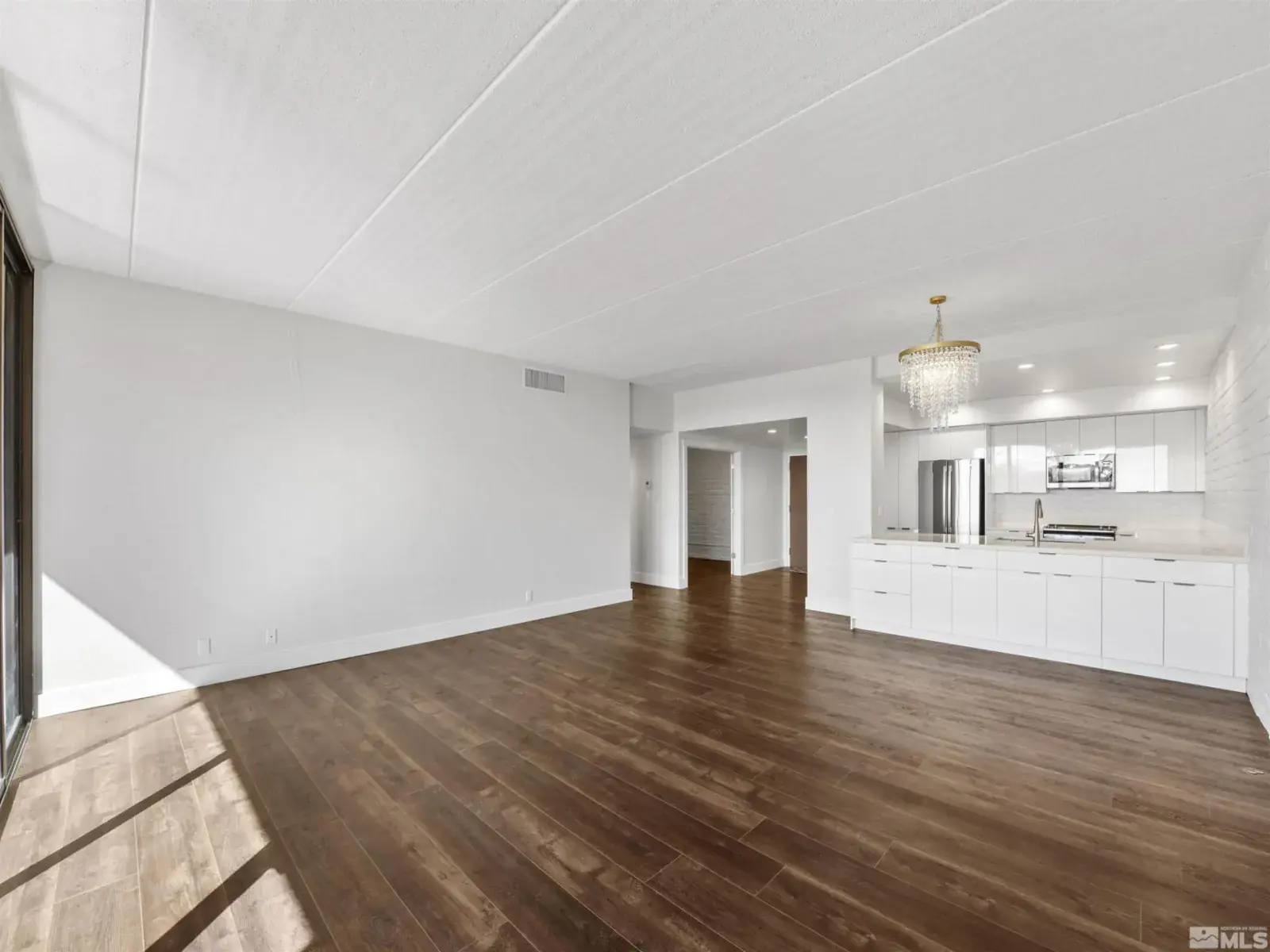 0.2 mi to Idlewild Park • Truckee River & Sierra views • Fully remodeled • Tenth-floor condo with expansive views of the Truckee River and Sierra Nevada. This unit was fully remodeled down to the studs and includes new HVAC, electrical and plumbing, extended countertops, modern cabinetry, upgraded lighting, and open-concept layout with the soffits removed. Kitchen and living areas face west for evening light and sunset views from the covered balcony. Layout features generous living space, office space or a second bedroom, extra storage, and in-unit washer/dryer. Perfectly smooth textured walls and new luxury vinyl plank flooring throughout. HOA amenities include heating and A/C, water and garbage, a pool, clubhouse with gym, BBQ area, gated covered parking, secure garage, elevators, 24-hour security, 4×8′ storage room, and LUSH LANDSCAPING. Located directly along the river and within blocks of downtown dining, shops, and farmer’s markets.