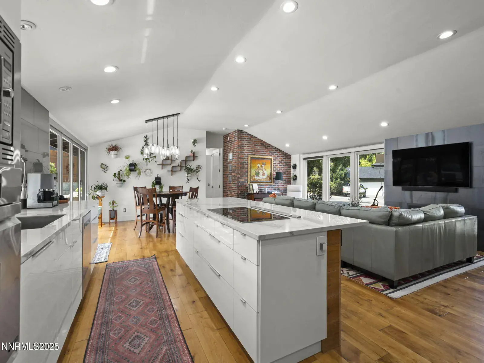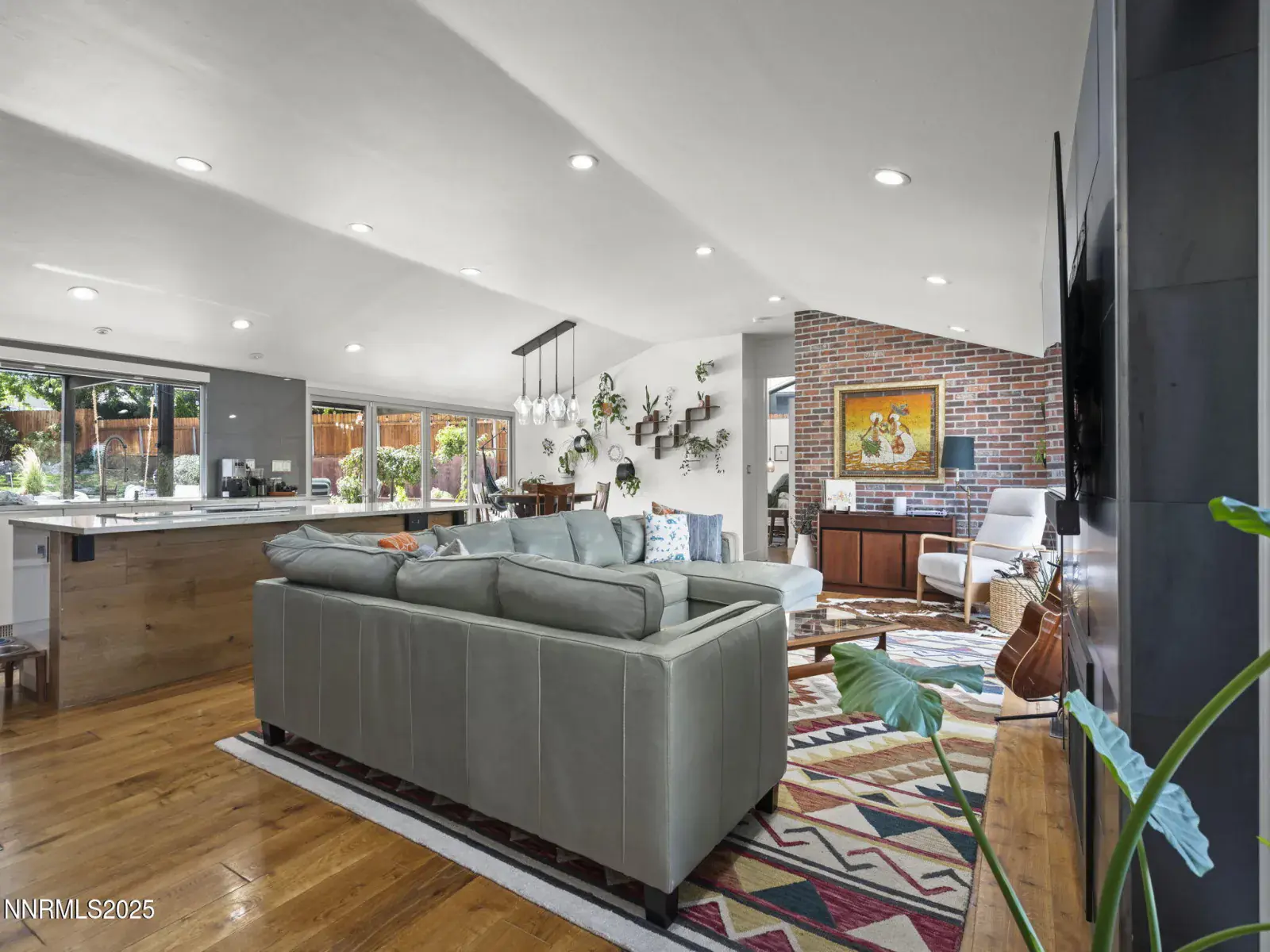 “Extensively remodeled home in the heart of Reno on a spacious corner lot with a saltwater pool and exceptional indoor/outdoor living. A 12-foot sliding glass door opens the great room fully to the backyard, creating a seamless flow for entertaining or relaxing. The outdoor space includes a covered patio, raised garden beds, open lawn, and mature apple trees. The corner lot provides two driveways, private off-street RV parking, and multiple areas to gather in both the front and back yards. Inside, the home blends updates with unique character. Features include a remodeled kitchen and bathrooms, hardwood floors throughout, exposed brick accents, and a striking steel fireplace that serves as the centerpiece of the living area. The open layout provides comfortable living space along with three bedrooms and three bathrooms, offering functionality for a variety of needs. Energy efficiency is another highlight of this property. Fully paid-off solar panels offset most energy costs and can support electric vehicle charging in the garage. This home offers the rare combination of location, upgrades, and efficiency. Just minutes from schools, shopping, dining, and recreation, it provides both convenience and lifestyle in one of Reno’s most desirable central areas.”