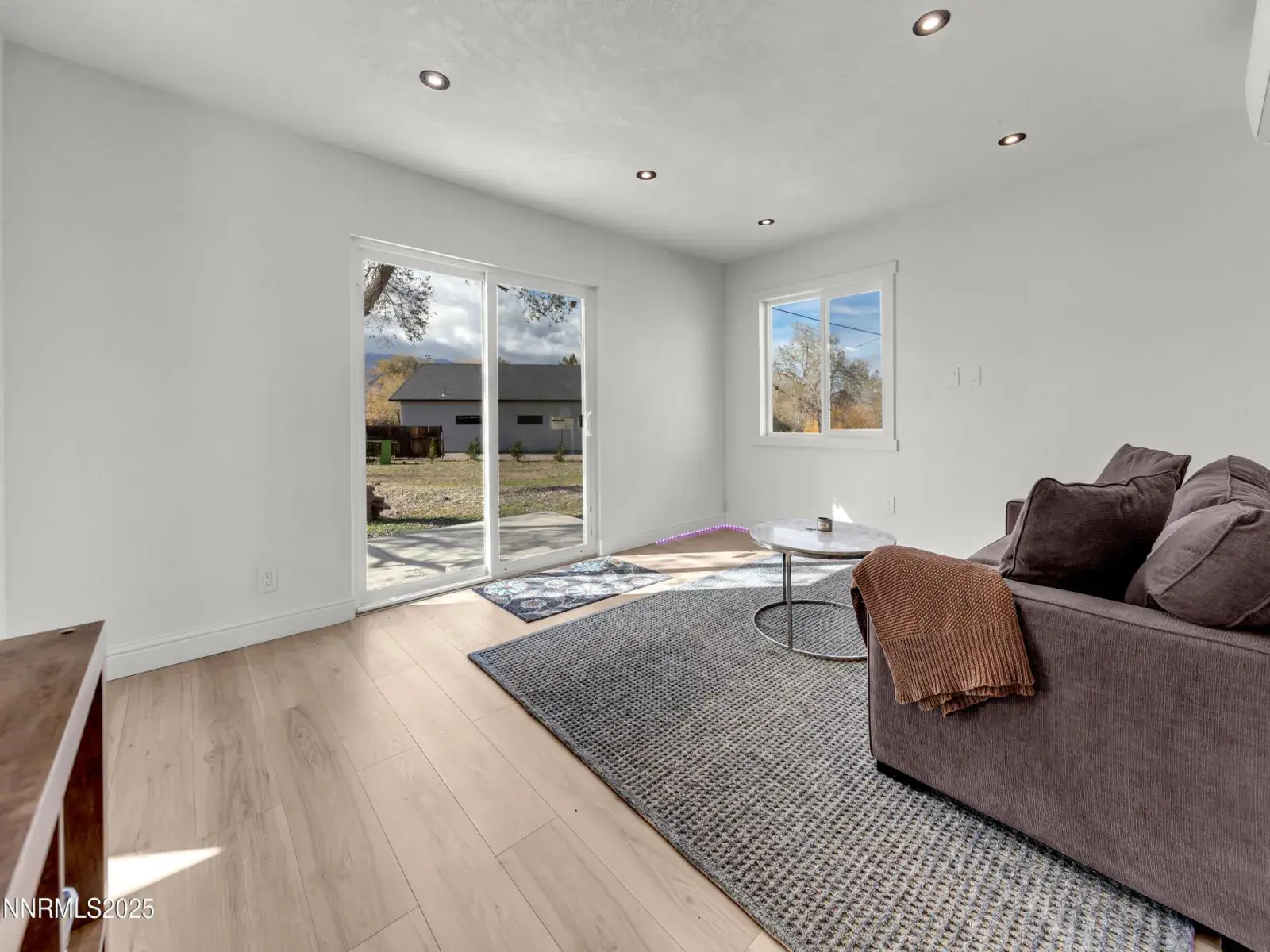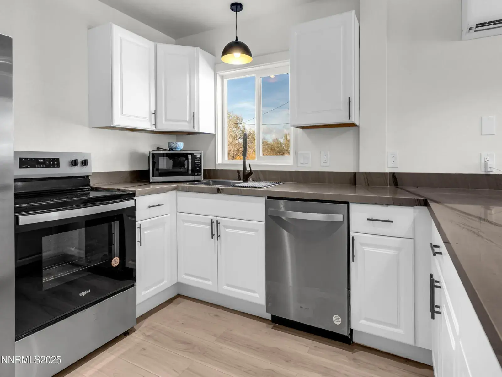 Stylish and move-in ready, this fully remodeled 2-bedroom, 2-bath home sits on a spacious 0.5-acre lot offering comfort, functionality, and room to grow. Inside, you’ll find new quartz kitchen counters, new appliances, and LVP flooring throughout. One bathroom features a tub/shower combo, and the other offers a walk-in shower. Additional updates include new windows, new mini split units in each room for heating and a/c, front entry and door, new lighting and fixtures, rain gutters, and fresh interior and exterior paint. Exterior improvements include a new roof, a mature tree, and evergreen bushes that line the property for added privacy. The lot provides plenty of space to expand the home, build a workshop, or create your own outdoor living area. Conveniently located approximately 23 minutes to Mt. Rose Ski Tahoe, 40 minutes to Lake Tahoe, and 13 minutes to the airport, with nearby shopping, dining, and freeway access. Tenant currently in place with a lease through June 2026. Seller is willing to negotiate an early lease termination if buyer wishes to occupy sooner.