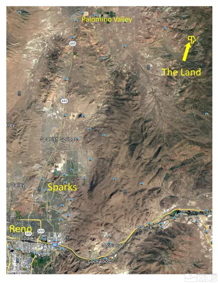 A view that will make your jaw drop! This 40 acre parcel draped across the hills on the Virginia Range out of Palomino Valley is very accessible with great (private) roads leading to the perch that nods a salute to Jobe’s Peak and Heavenly ski area, Mt. Rose and our local hills. I’m thinking there’s a good twinkle of city lights as well. If you want deer and wild horses in your yard, this is virtually gauranteed to happen like clockwork. Power at site. This can be purchased with the adjoining 75 acres with the creek running through it. Let’s talk about a package deal: Both parcels for 235000