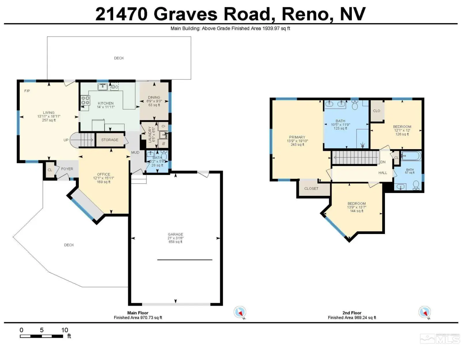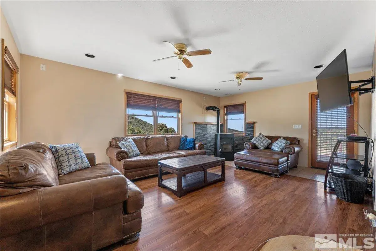Stunning Virginia City Highlands Home with Panoramic Views and Upgrades Nestled in the serene Virginia City Highlands, this breathtaking 3-bedroom, 2.5-bathroom home offers unparalleled views of Reno, the Sierra Mountains, and the Virginia Range. Situated on 2.24 acres, combining two lots into one, this property boasts not only a beautiful residence but also a 2,400 sq. ft. detached garage—perfect for extra storage, vehicles, or workspace., Interior Features: • Spacious living room with a large bay window, framing the picturesque surroundings. • Newly remodeled kitchen with a sleek countertop, large stainless-steel sink, modern faucet, and updated ceiling featuring a Bluetooth light. • New flooring in the living room and office/den with Pergo waterproof laminate wood, replacing carpet. • Custom oak steps leading to the second floor. • Fresh interior and exterior paint throughout. • New pellet stove with a stylish tile back wall. Bathrooms: • Master bathroom offers a luxurious feel with a new shower featuring a glass enclosure, stone tile walls, luxury vinyl plank flooring, and a newly installed toilet. Plumbing is ready for a freestanding bathtub. • 2nd bathroom completely updated with a new shower/bath, faucets, mirror, vanity light, and fan/light/heater. • Brand new half bath with stylish fixtures, including a fan/light combo with wood ceiling accents. Outdoor Living: • Expansive deck with 220V connection and dedicated electrical wiring/panel, ready for a hot tub. • Freshly expanded front porch with a beautiful pergola. • New back deck, perfect for outdoor entertaining and soaking in the incredible views. • Concrete apron driveway and new garage door to the attached garage. • New outdoor decorative light fixtures add charm and curb appeal. Upgrades & Systems: • Kinetico water system with reverse osmosis. • New septic line, septic risers, and septic tank services completed in 2021. • All new appliances for modern living. • New window blinds (faux wood) and new window screens. Additional Features: • Newly constructed steel shop/detached garage (40×60) with final inspection completed in August 2024. This home is an absolute gem, combining comfort, style, and functionality, with thoughtful upgrades throughout. Don’t miss the opportunity to experience this one-of-a-kind property with stunning views and peaceful surroundings. This home is perfect for getting away from the city noise but only 20 minutes from Reno. 30 minute drive from Reno-Tahoe International Airport, 37 minutes from Tahoe skiing, 35 minutes from downtown Carson City. Wake up and open your patio door to say good morning to the wild horses that roam in the neighborhood. Located in the Virginia Range, and just minutes from access to 80,000+ acres of public land ROOM and BUILDING DIMENSIONS — MAIN FLOOR — Living: 13’11” x 18’11” *** Kitchen: 14′ x 11’11” *** Dining: 6’9″ x 9’3″ *** Office: 12’1″ x 15’11” *** Bath: 5’2″ x 5’6 *** Laundry: 6’5″ x 6’5″ *** Attached Garage: 21′ x 31’6” — 2ND FLOOR — Primary: 13’9″ x 19’10” *** Bath: 10’5″ x 11’9″ *** Bedroom 2: 13’9″ x 13’7” *** Bath: 6’7″ x 9’8″ *** Bedroom 3: 12’1″ x 12′ — DETACHED GARAGE — 40’1″ x 60′ | 2408 sq ft
