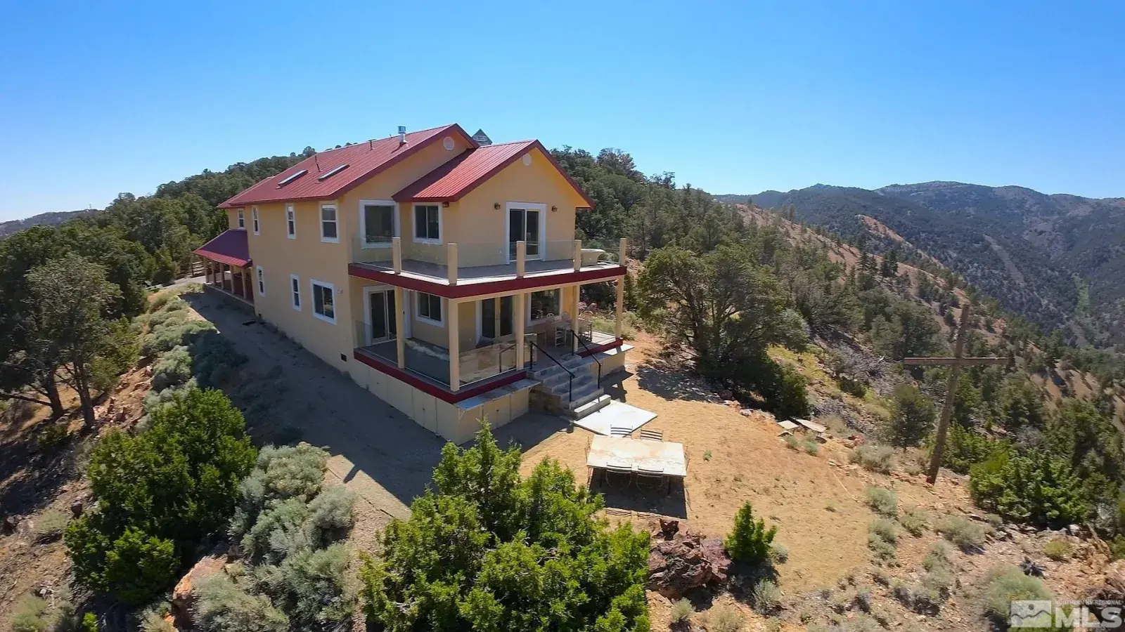 See extended public remarks. This is a must see property that offers a variety of uniqueness and quality throughout. Main House with 2 car garage Guest House Shop, with 3 Bays, 2 Hydraulic Lifts, can house up to 10 cars. RV accommodations., This is a unique and private property sitting on 10 acres adjoining BLM land on 2 sides. The property has natural landscaping with mature trees and wild horses. Spectacular sweeping views across Washoe Valley, Slide Mountain, Mount Rose, Pevine and the Reno Skyline. The property offers a 2880 square foot main house, a separate 2029 square foot guest house over a 2767 square foot garage/shop that has two hydraulic lifts, 3 bays all with high doors, one extra high door for RV. Garage can hold up to 10 cars. It has an alarm system, epoxy floors, warehouse racking, washer/dryer, half bath with shop sink. Ample private parking for toys, trailers or RV. Has RV hook ups and RV dump. There is a separate propane tank dedicated to the shop building. Metal siding and metal roof. The guest accommodations upstairs from the shop, has double door private entrance level with the driveway. One bedroom with spectacular views, a walk-in closet, full bath with shower. Gourmet kitchen with great space for entertaining any large groups. It has separate heating and cooling, sky lights, high ceilings, a propane fireplace, and a propane hot water tank. The main house was built with ICF (insulated concrete form) a green building solution that is fireproof, termite proof and R48 insulation, stucco exterior, metal roof. The second propane tank dedicated to the main house feeding two forced air propane furnaces and two air conditioning units and on demand propane hot water. There is a deep well great water new pump state of the art filtration system. The home is prepared for central vacuum system. There is a paved driveway to the main house with a manual gate entrance. This home boasts breathtaking panoramic views, sunrise on the mountains, sunsets over the mountains and beautiful night skies. There are 4 decks, 2 covered decks and outdoor dining with a fire pit. Large Chef’s kitchen has 48” propane Wolf range with large custom copper hood over the island with prep sink. Additional Dacor propane cook top, electric wall ovens, French door refrigerator. St. Charles cabinetry recovered from the Mapes Hotel Mansion in Reno. Large walk-in pantry/laundry area with additional full-size freezer and a 400-bottle oak wine cabinet. Ground level guest bedroom with double closets and en suite bathroom with steam shower. Large very private second floor master suite with high ceilings, sky lights and spectacular views from private deck with fire pit. Walk in closet with separate dressing area. Tunnel propane fireplace between the bedroom and bathroom with jacuzzi tub, large double shower, double sinks and private toilet room. Large family room, or 3rd bedroom has high ceilings and private deck. Separate bathroom with freestanding copper effervescent tub and traditional tub/shower combo.