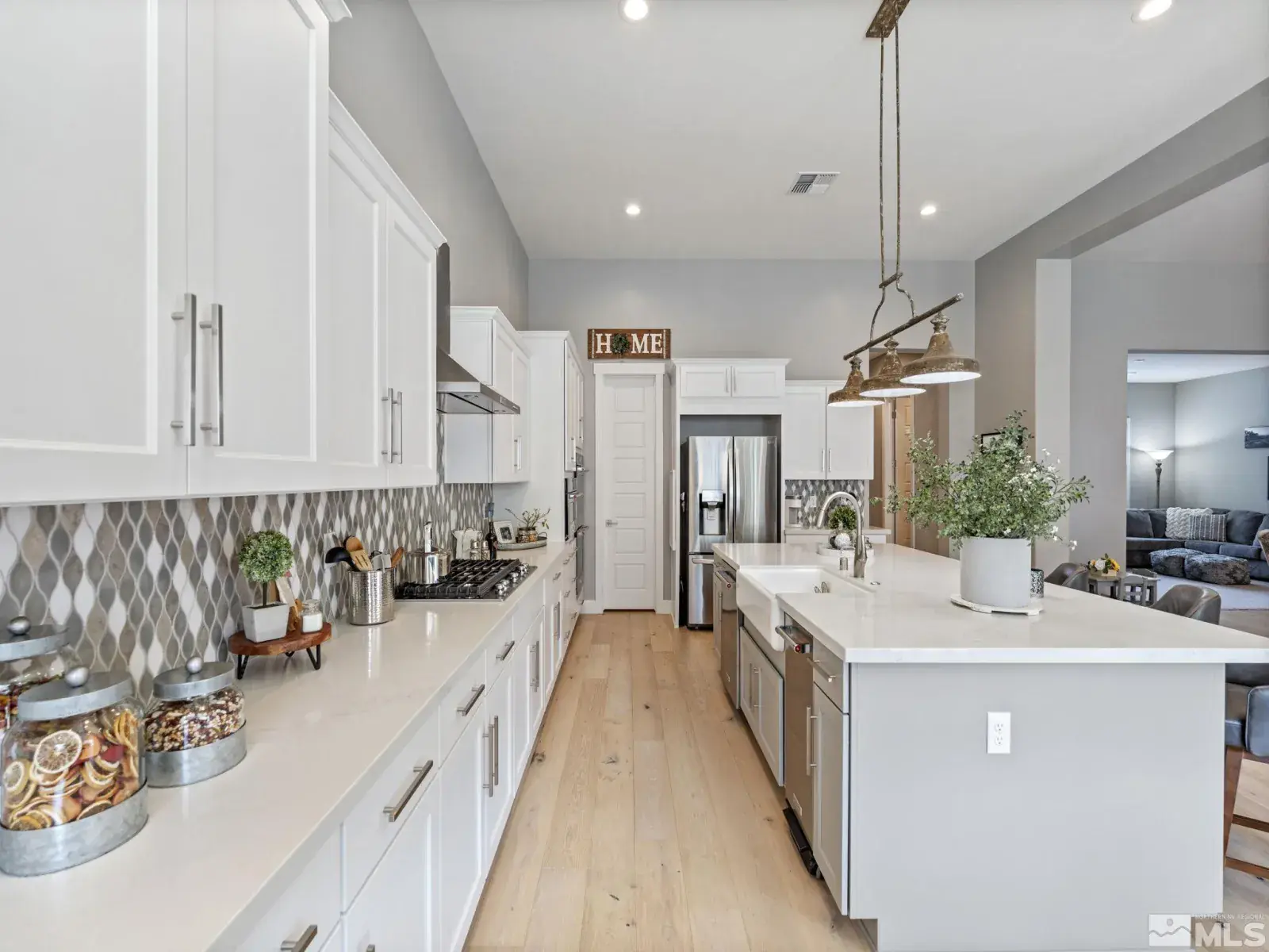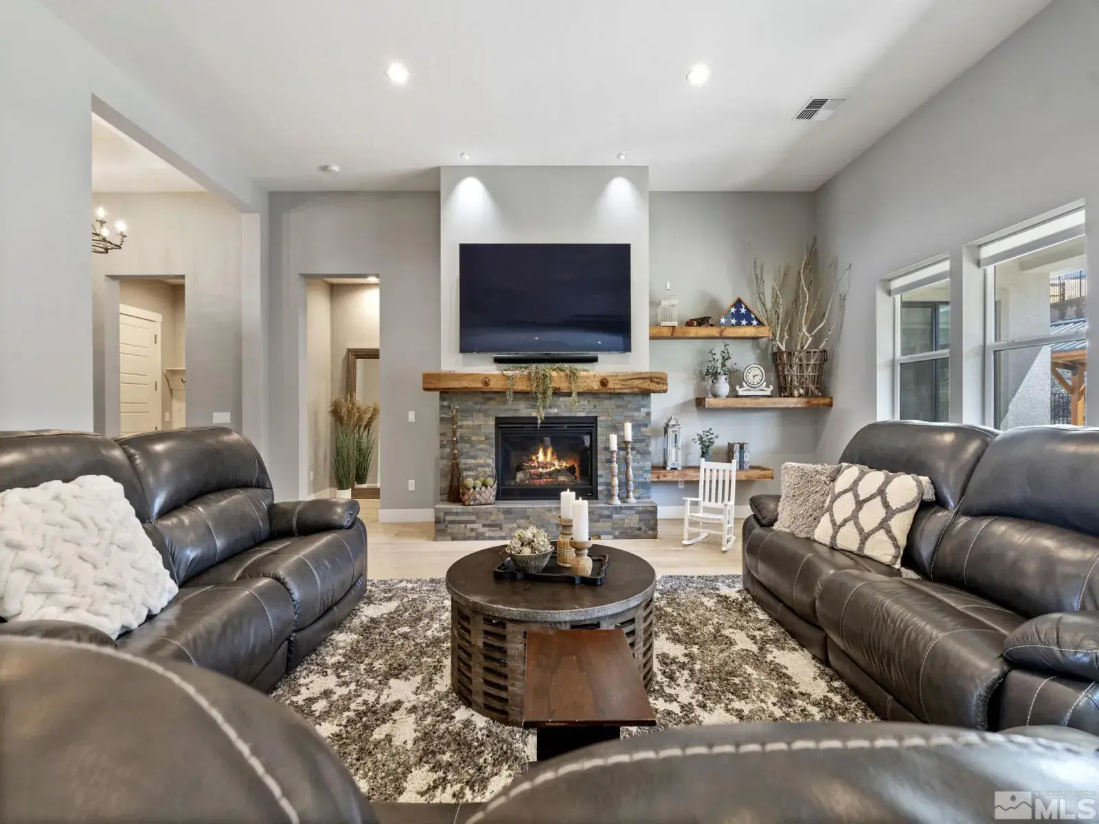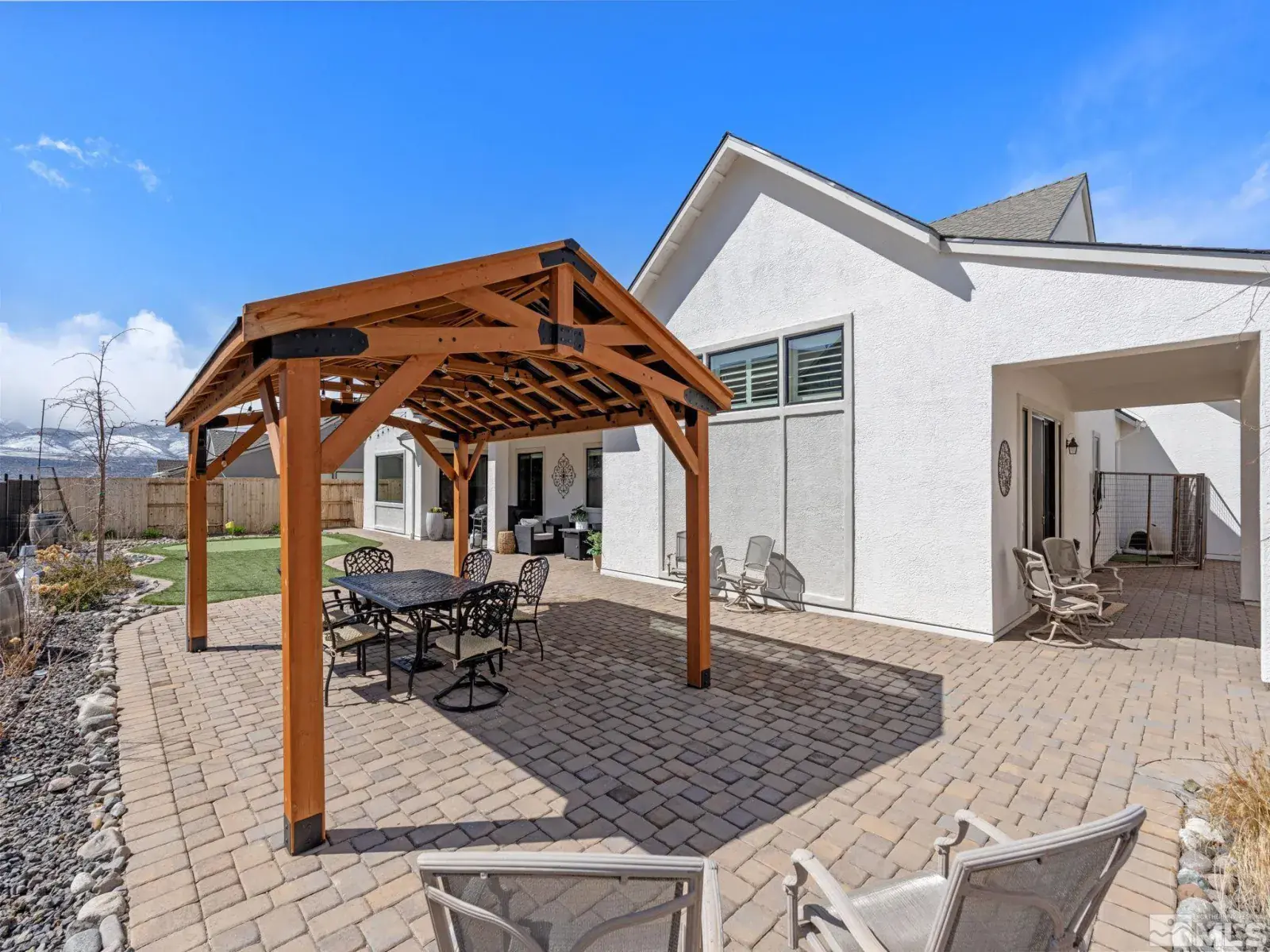 Ridgeline at Carmella Ranch – Refined Luxury for the Winter Season As the beauty of winter arrives in Northern Nevada, this elegantly upgraded home within the exclusive gates of Ridgeline at Carmella Ranch offers refined luxury and effortless living. Step inside to soaring 12-foot ceilings, wide-plank European Oak floors, and smooth hand-troweled walls that create a sense of warmth and sophistication. From the backyard, take in breathtaking snow-capped views of the Sierra Nevada, including majestic Mount Rose and Slide Mountain—just minutes from the crystal-blue serenity of Lake Tahoe. The chef’s kitchen is perfectly designed for holiday gatherings, featuring an oversized island, soft-close cabinetry, farmhouse sink, double ovens, and a spacious walk-in pantry. The adjoining dining area, enhanced by a custom shiplap accent wall, provides the perfect setting for entertaining. The primary suite is a tranquil winter retreat with a spa-inspired ensuite, oversized shower, dual vanities, and private patio access. Enjoy multiple outdoor spaces year-round—from a front porch with mountain views to a covered back patio, gazebo, and personal putting green. Additional highlights include walk-in closets in every bedroom, plantation shutters, 8-foot doors, and designer finishes throughout. Residents also enjoy resort-style amenities including a pool, spa, clubhouse, and fitness center. Experience the warmth of refined living this winter—this is more than a home, it’s a lifestyle.