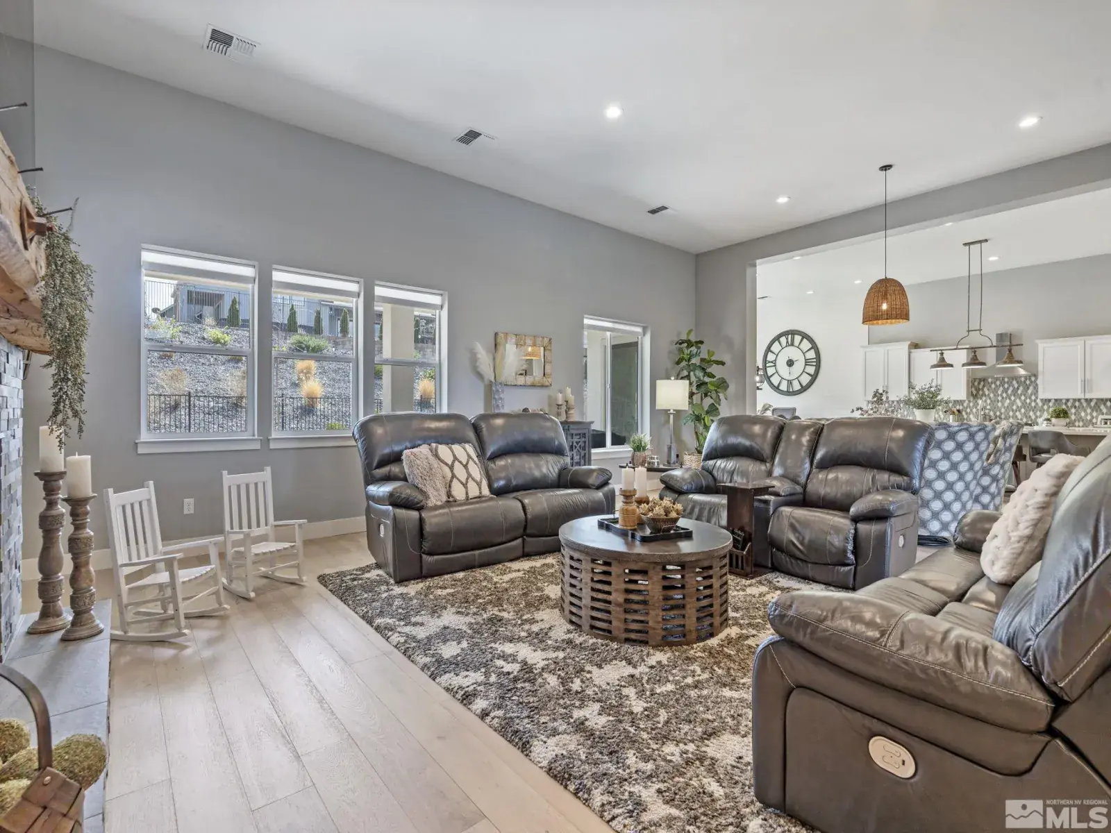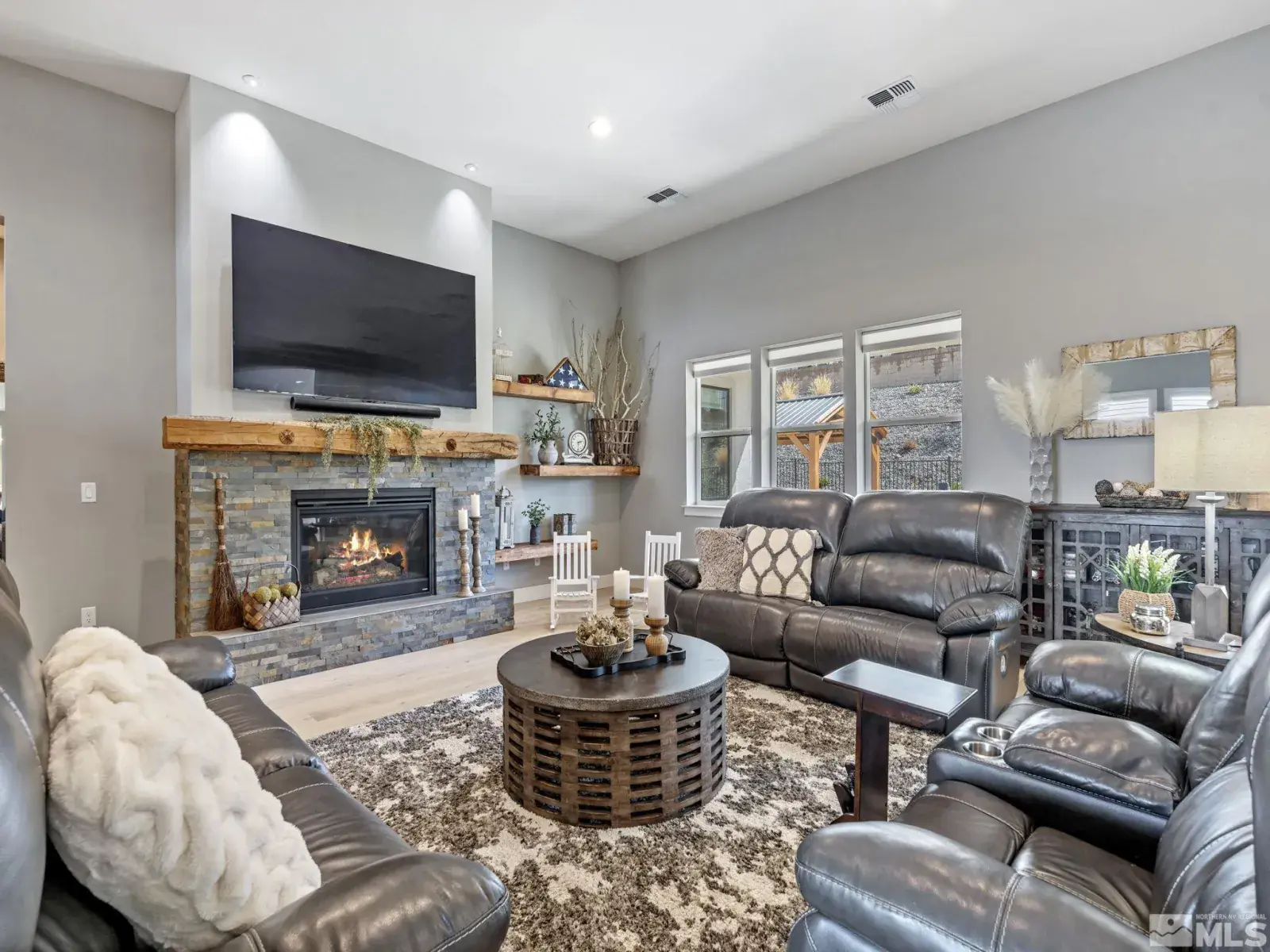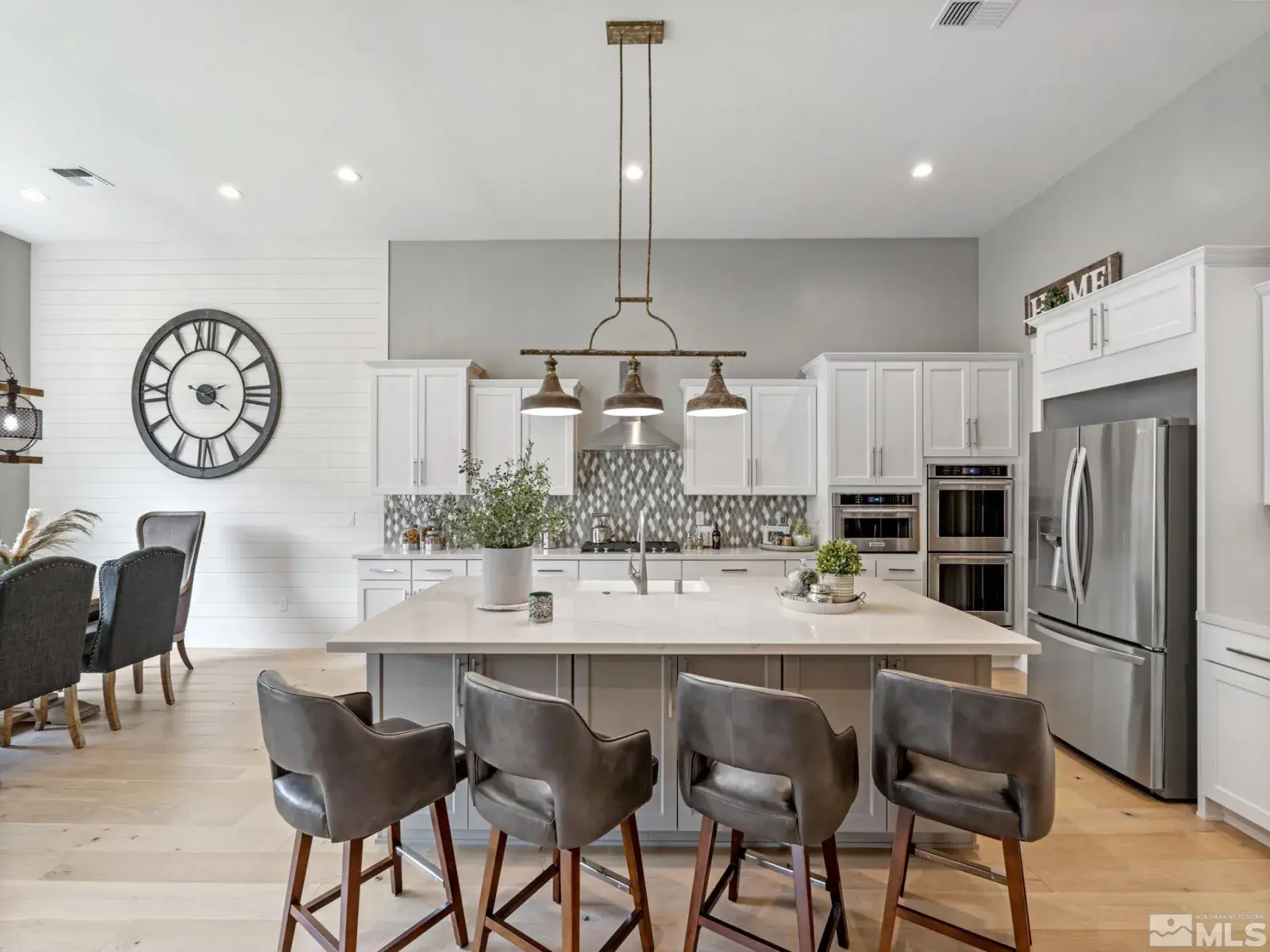 Ridgeline at Carmella Ranch – Refined Luxury for the Winter Season As the beauty of winter arrives in Northern Nevada, this elegantly upgraded home within the exclusive gates of Ridgeline at Carmella Ranch offers refined luxury and effortless living. Step inside to soaring 12-foot ceilings, wide-plank European Oak floors, and smooth hand-troweled walls that create a sense of warmth and sophistication. From the backyard, take in breathtaking snow-capped views of the Sierra Nevada, including majestic Mount Rose and Slide Mountain—just minutes from the crystal-blue serenity of Lake Tahoe. The chef’s kitchen is perfectly designed for holiday gatherings, featuring an oversized island, soft-close cabinetry, farmhouse sink, double ovens, and a spacious walk-in pantry. The adjoining dining area, enhanced by a custom shiplap accent wall, provides the perfect setting for entertaining. The primary suite is a tranquil winter retreat with a spa-inspired ensuite, oversized shower, dual vanities, and private patio access. Enjoy multiple outdoor spaces year-round—from a front porch with mountain views to a covered back patio, gazebo, and personal putting green. Additional highlights include walk-in closets in every bedroom, plantation shutters, 8-foot doors, and designer finishes throughout. Residents also enjoy resort-style amenities including a pool, spa, clubhouse, and fitness center. Experience the warmth of refined living this winter—this is more than a home, it’s a lifestyle.