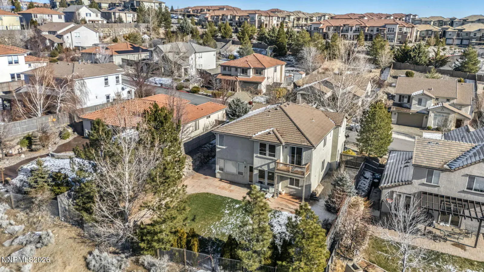 Photos represent home prior to exterior/interior paint work being completed. Perched in Reno’s sought-after Northwest hills, this beautifully refreshed 4-bedroom, 3-bath residence offers 2,861 sf of light-filled living space, including a versatile upstairs office. Recently painted inside and out, the home sits on an 8,892-square-foot lot and captures breathtaking mountain views, creating a true sense of elevated living. Built in 2005, the thoughtfully designed floor plan features both a cozy living room and a separate family room centered around a warm fireplace—ideal for everyday comfort and effortless entertaining. Step outside to a generous backyard designed for gatherings and relaxation, complete with an outdoor speaker system for evenings under the open sky. Mature apple and peach trees add charm and seasonal enjoyment to the outdoor space. The kitchen with a breakfast nook is tastefully appointed with rich cherry cabinetry, tile flooring, quality appliances, and a newer refrigerator—perfectly suited for both casual meals and culinary creativity. Throughout the home, a blend of laminate plank flooring, tile, and carpet provides warmth, durability, and style. The primary suite is a private retreat, featuring a spacious walk-in closet and an oversized ensuite bath with a walk-in shower and separate garden tub. Three full bathrooms offer ample convenience for family and guests. A 3-car tandem garage provides abundant space for vehicles, hobbies, and storage, enhanced by storage shelving units in a portion of the garage. Unwind by the fireplace on quiet evenings or enjoy stunning sunsets from the private upstairs balcony off the primary suite, overlooking the surrounding mountains. Conveniently located near top-rated schools, shopping, and freeway access, this peaceful neighborhood offers the perfect balance of serenity and accessibility. Blending comfort, space, and spectacular views, this exceptional home is ready to welcome its next owner.