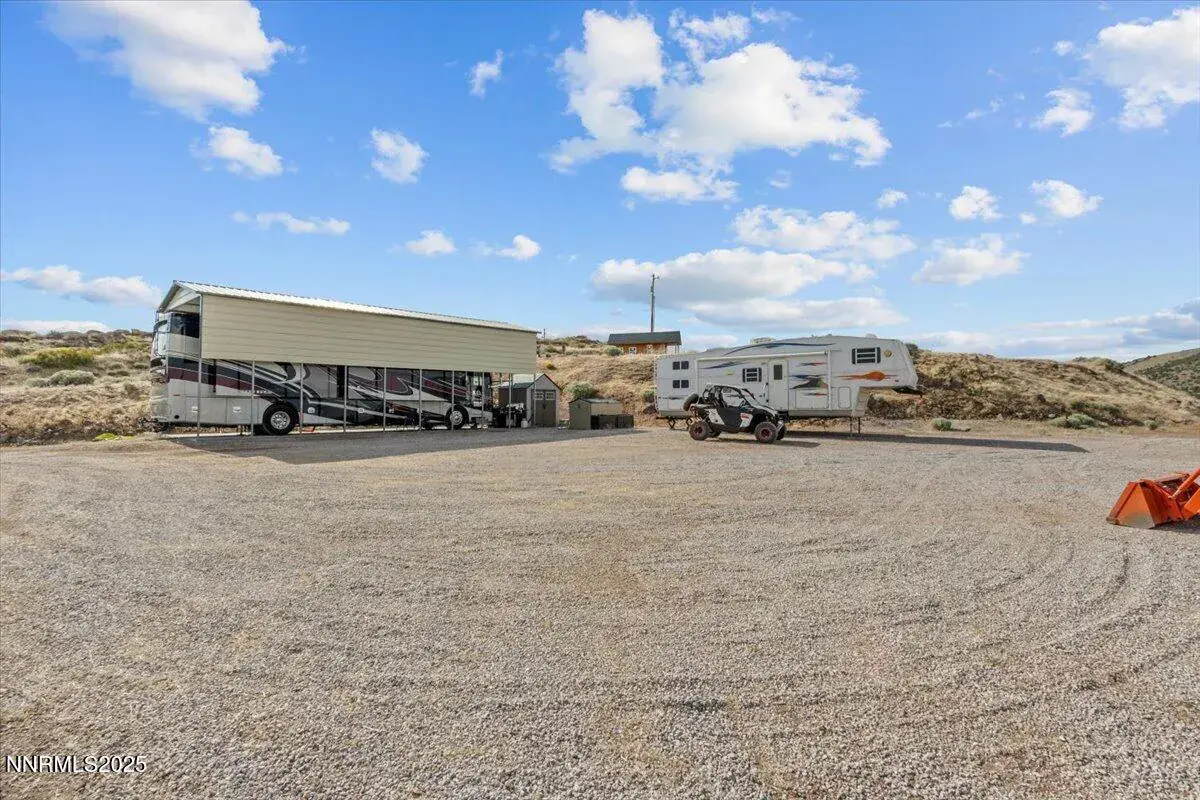 This ready-to-go Golden Valley lot offers a rare opportunity to build or park your RV on a well-equipped property with panoramic views and space to grow. This property backs to BLM so bring your Off Road vehicles. The partially fenced lot features an electronic gate, a reinforced concrete RV pad with covering, and access to well water, power, and an unpermitted septic system.