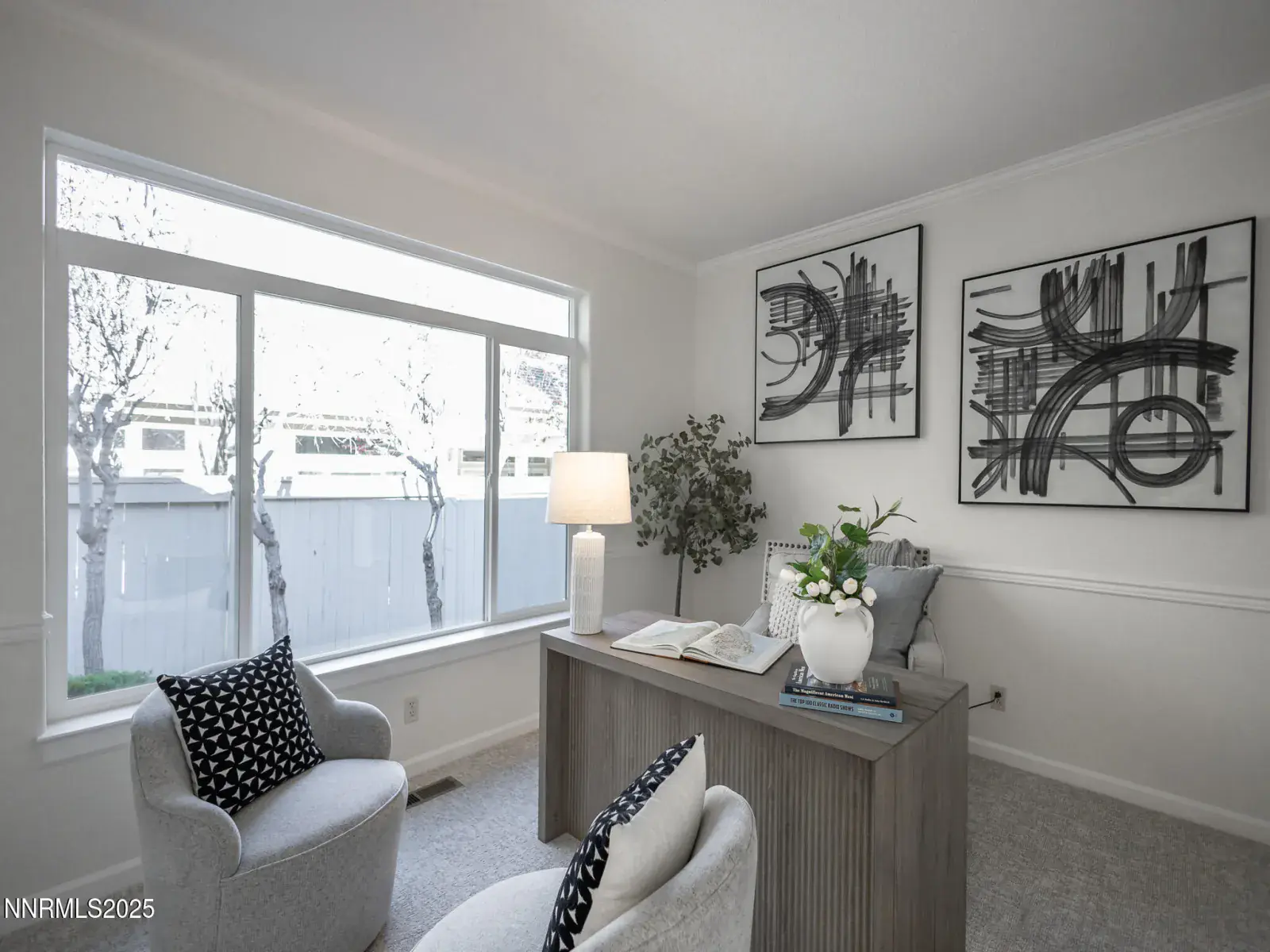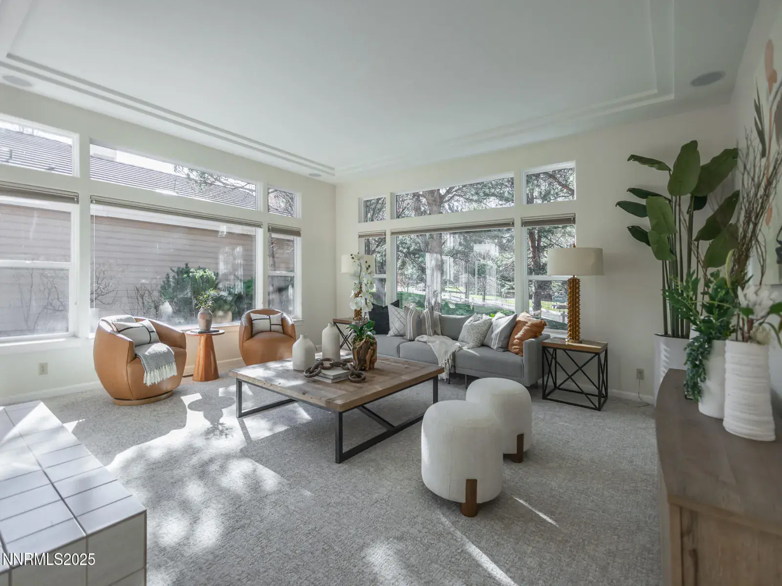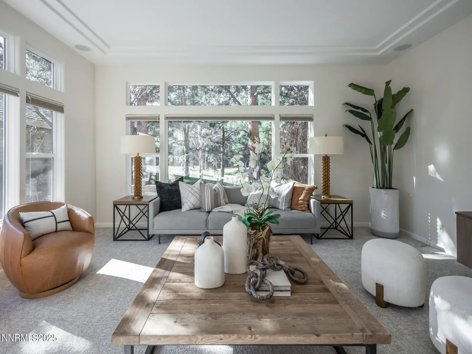 Experience refined living in this immaculate Caughlin Ranch home, where modern elegance meets everyday comfort. Offering 2296 sqft of open living space, this residence features a beautifully updated kitchen with quartz counters, an expansive island, and seamless flow into the dining and outdoor patio areas. Natural light fills the spacious great room, highlighted by a cozy fireplace, high ceilings, and panoramic windows framing the lush surroundings. The home includes two generous bedrooms, two and a half baths, and thoughtful finishes throughout—balancing warmth and sophistication. Set on a private, landscaped lot of over 8,700 sq ft, the property provides serene outdoor living and an attached two-car garage. Nestled in one of Reno’s most desirable communities, this home offers timeless style, modern comfort, and a lifestyle of quiet luxury just minutes from trails, parks, and city amenities.