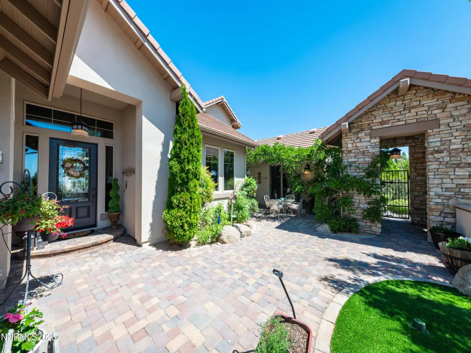 Welcome to luxury living in a small gated enclave within Reno’s Somersett Community. Just off the 4th roundabout, this custom home overlooks the signature 3rd hole and 4th tee of the Tom Kite designed Somersett Golf course. Enjoy stunning sunsets from the wisteria-covered deck that spans the great room, kitchen, and primary suite. The spacious primary suite with panoramic mountain and golf course views is complete with reading nook, coffee bar, soaking tub with fireplace and a glamorously sized closet. The den and powder room are just off the foyer. A charming guest suite flows into the enclosed courtyard with a barbeque and seating area. Downstairs, discover two guest suites, a family room with wet bar and wine storage, and a six-seat movie theater. The .86-acre lot includes a 4-car, 1,400 sq. ft. garage with workspace and attic storage. Don’t golf? Visit the town square for dining or wander to the HOA rec center with amenities including two pools, tennis & pickleball, a gym and Canyon Nine Golf Course. Trails and Parks are featured throughout the community. This is refined, relaxed living in one Reno’s most desirable settings—where views, privacy, and comfort come together seamlessly.