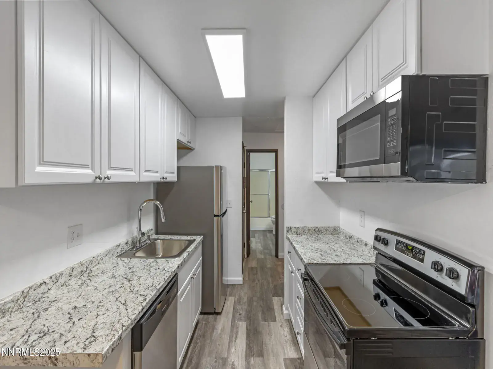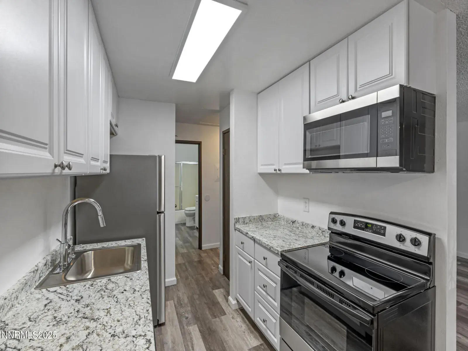 Discover comfort and convenience in this beautifully renovated 1-bedroom, 1-bath condo located in a desirable Reno community. This charming unit features brand-new cabinets, stylish countertops, and modern appliances, giving the kitchen a fresh, contemporary feel. Luxury vinyl plank flooring runs throughout the home, offering durability and a clean, modern look. The open living area provides a comfortable space to relax or entertain, while large windows bring in plenty of natural light. The bedroom is well-sized with ample closet space. Whether you’re a first-time buyer, downsizing, or looking for an investment property, this home is move-in ready and low maintenance. Enjoy access to the community pool—perfect for cooling off during Reno’s sunny summers. Located close to shopping, dining, parks, and easy freeway access, this property puts you near everything you need while still offering a peaceful residential setting. Don’t miss your chance to own this turn-key condo in a convenient and growing area of Reno. Schedule a tour today!