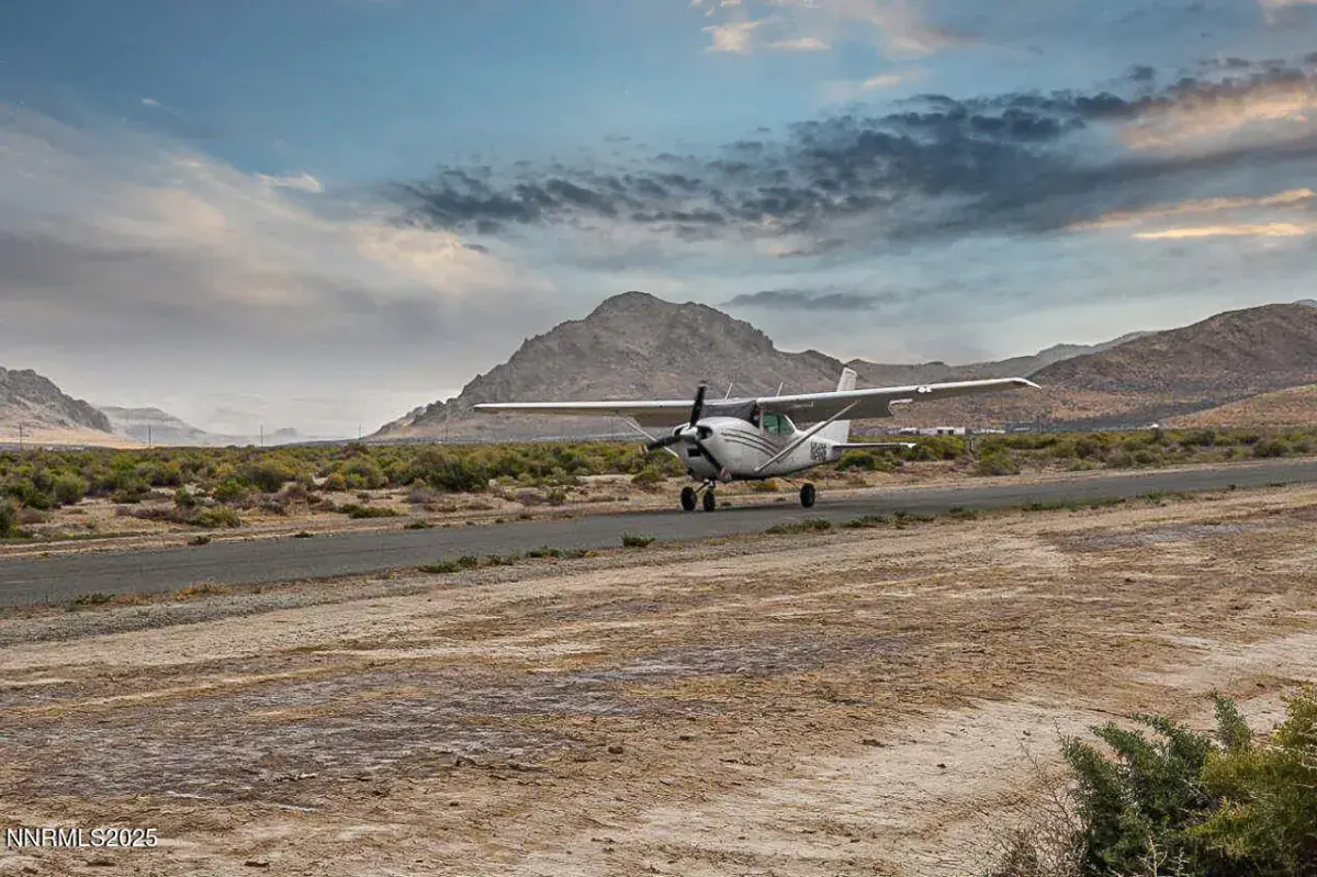 Welcome to Flying Eagle Airpark, Reno’s best-kept secret for those who value privacy, freedom, and the aviation lifestyle. This exclusive, gated community offers only 10 parcels across 640 acres, each spanning approximately 40 acres. With two paved runways—16/34 measuring 4,700′ x 35′ and 7/25 at 4,300′ x 25’—you can taxi directly from your hangar to the runway and take off from your own backyard.