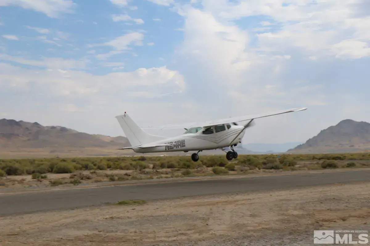 PRIVATE, GATED AIR-PARK COMMUNITY! Enjoy this rare opportunity to own 40 acres in a gated community! Whether you have a plane, or just want room to roam, this is the ideal community for you. 77NV Flying Eagles Airpark’s FAA designator, you will enjoy beautiful views of the mountains from every angle, and you are only 6 miles from Pyramid Lake! Enjoy the convenience of having all major shopping within 15 minutes. 2 existing runways and taxiways. Existing light system. Build your dream home and or hangar., Each parcel can have two separate homes each with its own hanger. All properties have direct runways/taxiways access. Additional Parcels Available for Sale (APN’s: 076-200-20, 076-200-21, 076-200-23, 076-200-27, 076-200-26, 076-200-25, 076-200-24, 076-200-31 and 076-200-32). VACANT LOT – the hanger(s) and plane(s) shown in photos are only to depict what can be done and are examples of what is currently in the development. One runway is 4,700′ long, the East/West runway is 4,300′ long. Latitude 39.8445461238265 Longitude: -119.684071931213 Additional Parcels Available for Sale (APN’s: 076-200-20, 076-200-21, 076-200-23, 076-200-24, 076-200-25, 076-200-26, 076-200-27, 076-200-31, 076-200-32).