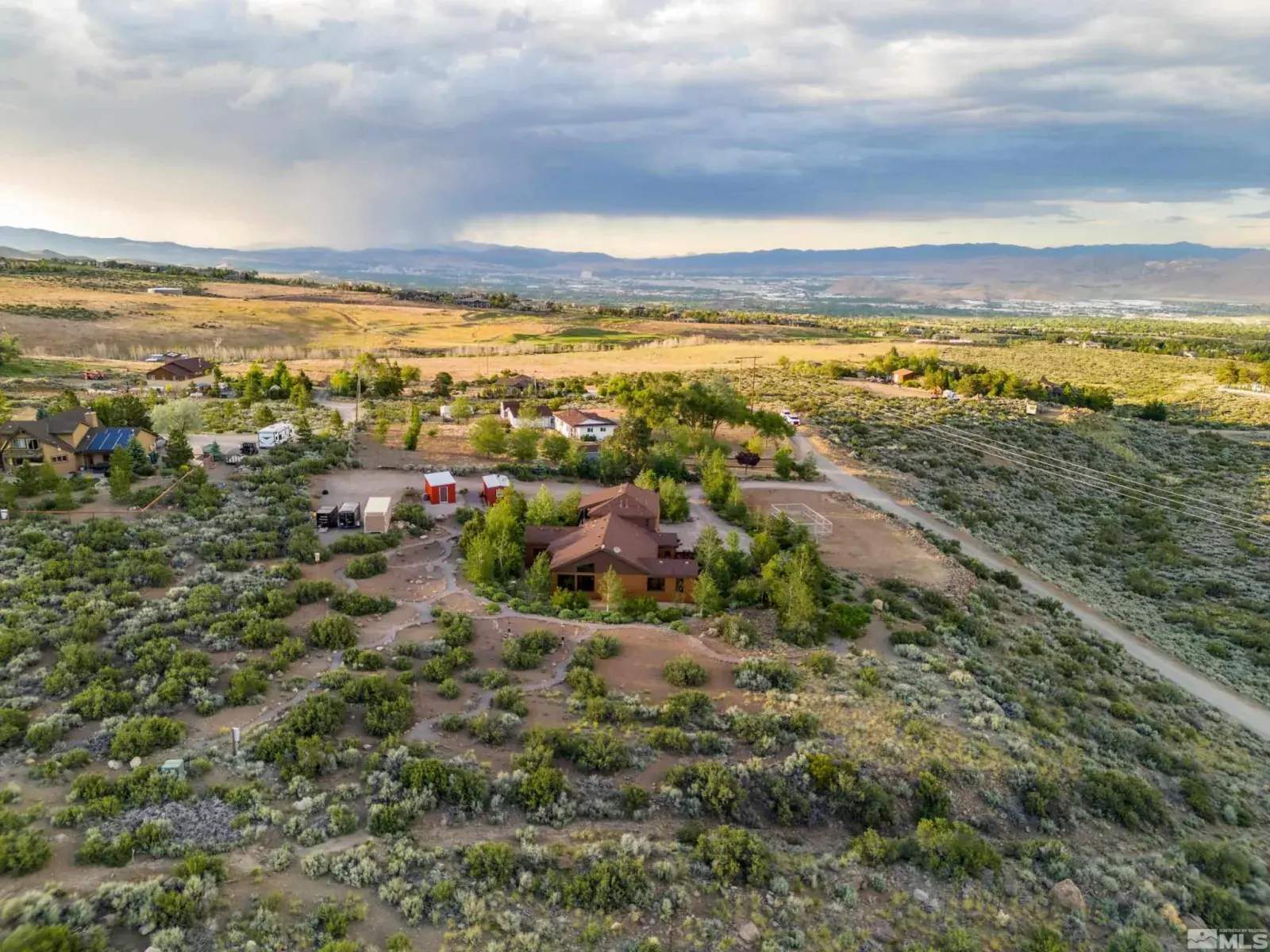 Nestled in a private and serene rural setting on 2.503 acres, this home offers majestic mountain and valley views from every window, while keeping you close to all the amenities South Reno and the Sierra Nevada area have to offer. The home and landscaping, designed by an AIA Award-winning architect, boast a great-room concept with the versatility to entertain guests or enjoy peaceful solitude with the ability to ride your bike or horse directly from the property, no loading or trailering required., The main living space includes: * A well-appointed 1,645 sq ft, single-level layout * Concrete floors and high ceilings * Two bedrooms with large closets and a dedicated office separated for privacy * A 24′ x 8′ mechanical/utility room with a dog wash station, which leads to the main home mudroom and the 2-car garage. * Backup generator * Alternative heating options with a pellet stove and passive solar capabilities. Property amenities include: *Two outbuildings *Whole-house water filtration system *Enclosed critter-proof raised bed garden *Views of Mount Rose, Mount Rose at Ski Tahoe, Virginia Mountain Range *Did I mention privacy all around Additionally, the property includes a second-floor guest/in-law/ADU apartment above the garages, currently rented monthly basis at 1,900 and generates income. This 1,003 sq ft space features: * Full kitchen* Laundry closet * One bedroom and one bathroom * A finished storage room with a window (currently utilized by the tenant as his office space) * Private entrance and stairs are located behind the 1-car attached garage For outdoor enthusiasts, this is a dream location with 5 acres of forest service land across the street and hiking and biking trails right at your doorstep. Thomas Creek Trail is just two houses away, Whites Creek Trail is approximately 1/4 mile away, and you’re only: * 20 minutes from Mt. Rose Ski Resort * 30 minutes from Lake Tahoe * 5 miles from the Summit Mall for dining and shopping The property also has stamped and approved architectural plans for a 30′ x 40′ RV garage.