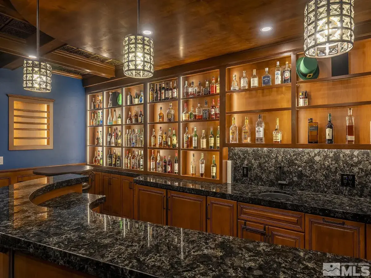 Quality, design, location…this gorgeous estate in prestigious Montreux offers just about everything the most discerning homebuyer’s wish list could hold, ensuring an unparalleled living experience. No expense has been spared in the quality upgrades added to the home and property., A Luxurious Oasis in Montreux…. Discover elegance and sophistication in this magnificent luxury home on nearly one acre of meticulously landscaped grounds within the prestigious Montreux private community. With a perfect blend of top-quality designer finishes and exceptional craftsmanship, a superior living experience is ensured. Inside a grand entrance leads to an expansive, open floorplan filled with natural light and high-end finishes. With five spacious bedrooms and five and one-half luxurious baths, this home is designed for both comfort and style. The gourmet kitchen is a chef’s dream featuring state-of-the-art appliances, custom cabinetry, and luxurious countertops. It opens seamlessly into the inviting living areas, perfect for both intimate family gatherings and grand entertaining. A standout feature of this home is the unique custom built private pub, tucked away in its own elegant room with an open outside balcony. This sophisticated space is ideal for hosting guests or enjoying quiet evenings. Additionally, a full guest suite, complete with its own kitchen and separate interior or exterior entrance, provides privacy and convenience for guests. Step outside to the beautifully landscaped backyard with fireplace, waterfall, pond, stream, and built-in entertaining area for a fabulous retreat with gorgeous views of the Patty Sheehan golf practice hole. Enjoy lush surroundings and a tranquil atmosphere while being part of the Montreux community, home to Reno’s only private Jack Nicklaus Championship Golf Course. Schedule your private tour today. (See attached Distinctive Features list). IMPORTANT NOTE: Montreux is certified with the “National Firewise USA” Program – call listing agent for info.