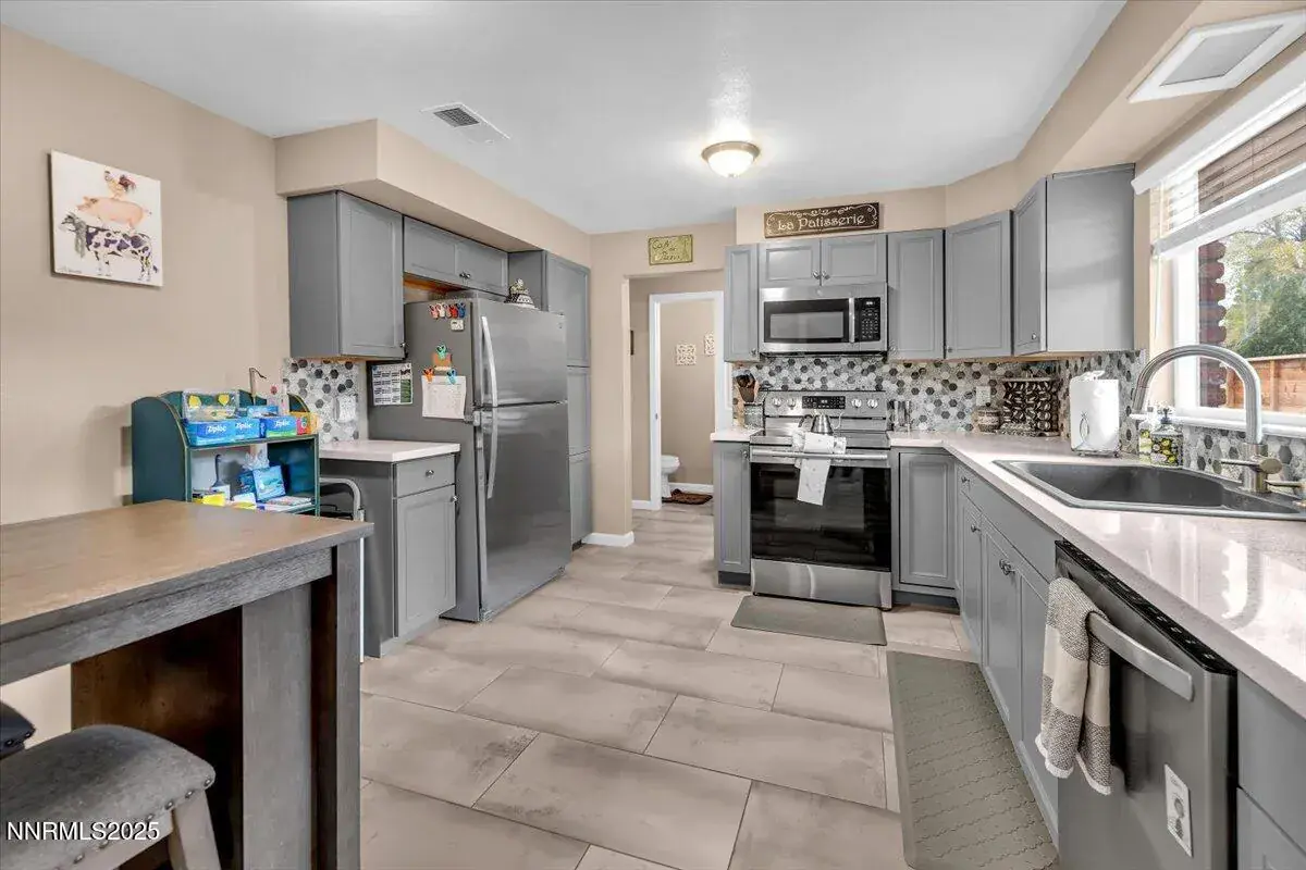 This Old Southwest Reno home is absolutely immaculate. Perfectly nestled in the highly sought-after Idlewild Park neighborhood, this address is your ticket to summer evenings at Food Truck Fridays, peaceful fall walks beneath changing leaves, and picturesque winter moments along the snow-dusted Truckee River. You’re just minutes from the heart of downtown Reno, surrounded by great schools— with the elementary school conveniently located across the street—plus easy access to favorite eateries and beloved mid-town shopping. As you arrive, the long driveway immediately sets the tone, offering plenty of room for multiple vehicles and even space for recreational toys. Step inside and you’ll instantly feel at home as natural light pours across the spacious living room. A stunning wood-burning fireplace with elegant stonework anchors the space, creating the perfect backdrop for cozy mornings and quiet evenings. Flowing seamlessly from the living room is the formal dining room, leading into a beautifully updated kitchen. Here, glistening granite countertops, stainless steel appliances, neutral grey cabinetry, and a playful backsplash combine to delight the chef in the family. Just down the hall, you’ll find three well-appointed bedrooms and a shared full bathroom featuring an upgraded double vanity and a stylish shower stall. As you make your way downstairs, you’ll pass a convenient half bath and the backdoor leading to your outdoor living space. The finished basement serves as a spacious family room—complete with your very own wet bar and ample room for entertaining. This level also includes the laundry area, a second full bathroom, and a versatile bonus room ideal for a home office, gym, or creative studio. Venture a bit further, and you’ll discover an additional ~100 sq ft of unfinished space perfect for storing bulk items or seasonal belongings. Outside, the fully fenced backyard offers true relaxation with a generous paver patio, a large grassy area, and plenty of room to play, garden, or unwind—without feeling like your neighbors are right on top of you. The sellers have lovingly maintained and thoughtfully upgraded this home, including the addition of natural gas, replacement of the oil boiler with a combination boiler/tankless water heater, installation of a gas furnace, AC, and upstairs ductwork, a new electrical panel, updated gutters, new fencing, and refreshed backyard landscaping. Their care and attention are evident in every corner of the property. Don’t miss your chance to call this little slice of heaven your own. Book your private showing today.