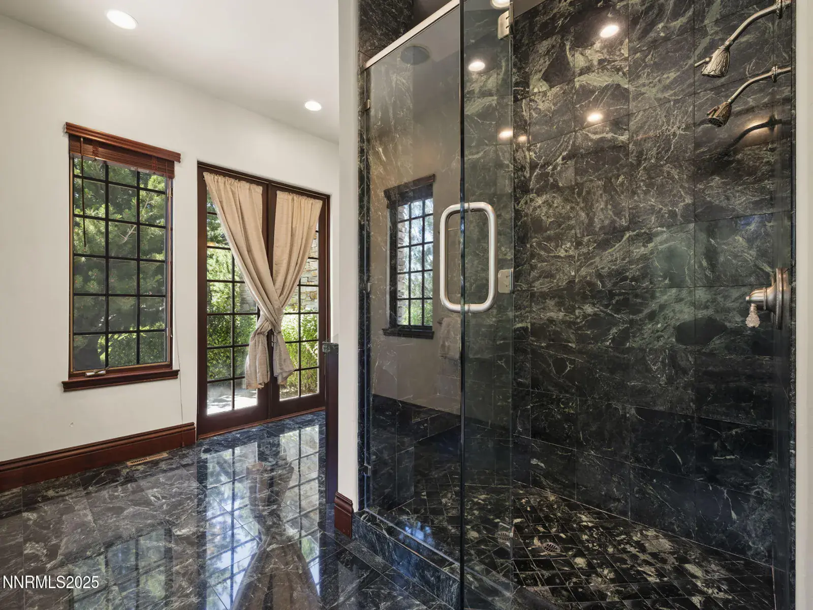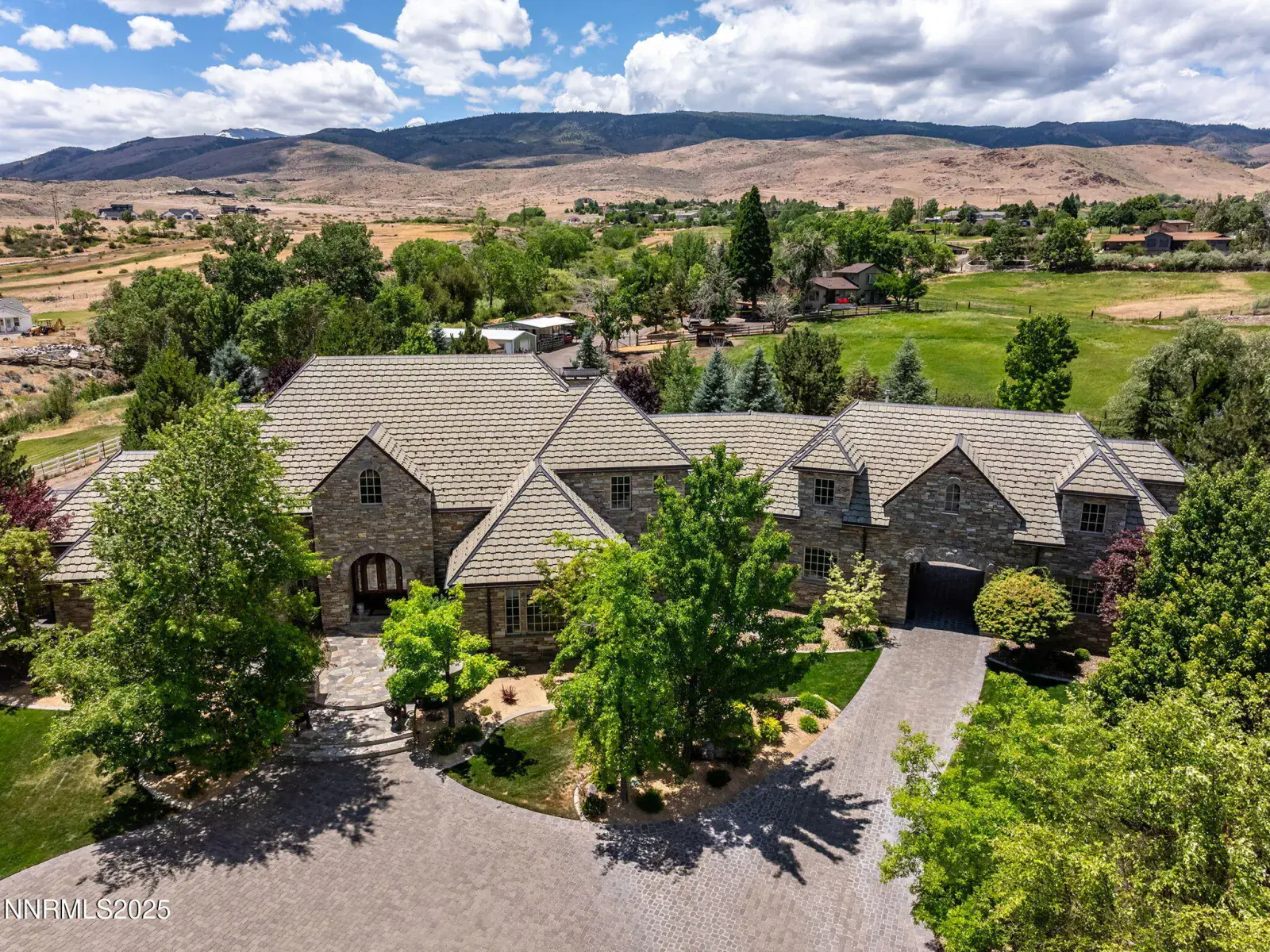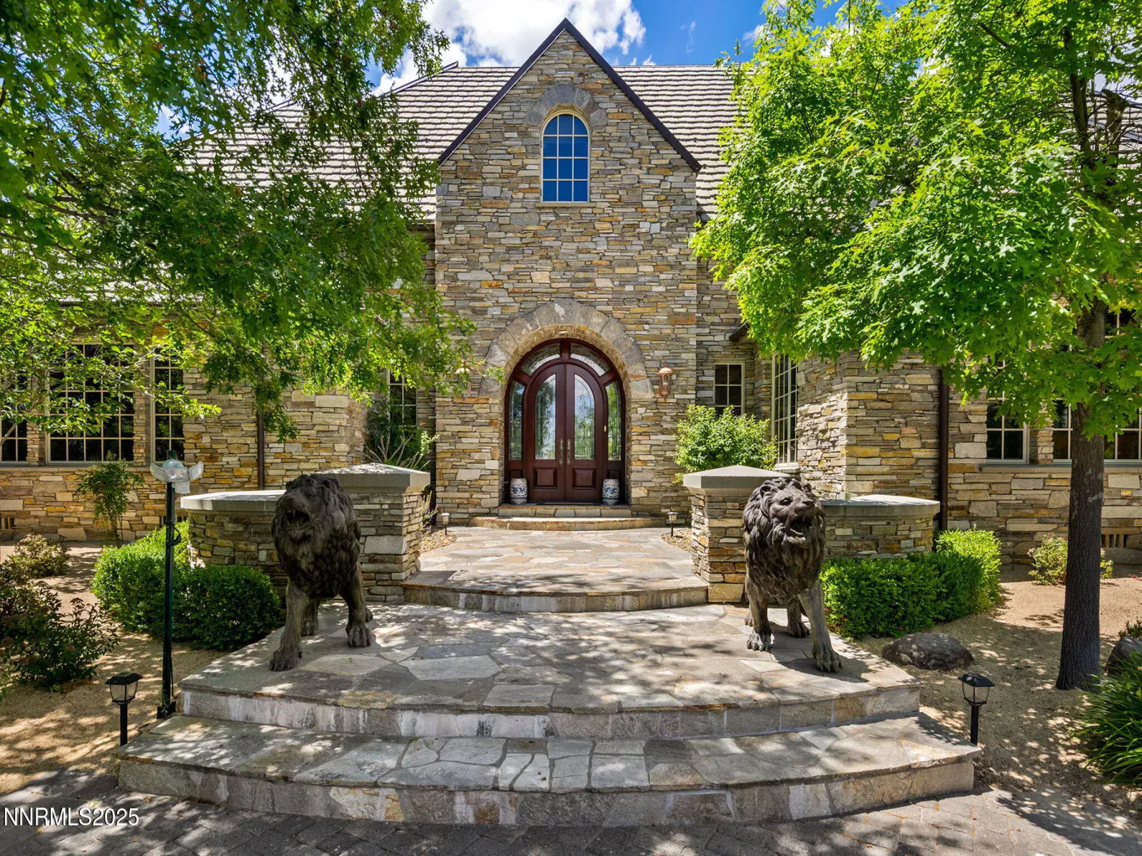 Rare and stunning property on 2.47 acres in coveted SW Suburban Reno Lakeside/Holcomb area. Down a long driveway and through the private gated entry, you will immediately be impressed by the mature landscaping and stunning exterior of this exquisite country manor with full hand-laid stone exterior. Wonderful curb appeal with beautiful entry, circular drive with water feature, and carriage breezeway between two 2-car garages. Additionally, there is a detached fully insulated and heated garage/car barn with soaring 18′ ceilings, 3 doors including RV door. Steamboat ditch irrigation rights, domestic well plus AG water rights. The comfortable yet elegant floorplan features 4 ensuite bedrooms and 3 separate half baths. Large office with beautiful built-ins and the primary suite located on the main level feature a fireplace, luxurious bath, and huge walk in closet. The magnificent gourmet kitchen is open to the family room featuring 20 foot ceilings and extraordinary floor to ceiling stone fireplace and hearth. The grand formal dining room and separate living room with wall of windows overlook the grounds. Upstairs has 3 large bedrooms with private baths, a 1/2 bath, and beautiful landing open to the family room below and leading to expansive game room with walk-in wet bar, plenty of room for seating, dining, or extra office space! Other features include 8′ solid Mahogany doors, water processing system, Control 4 lighting and Mesh Network Wi-Fi system. New insulated steel garage doors on attached garages, Generac whole house generator, extensive lighting and much more! Please see features list for more. Very close to all amenities .and airport yet very secluded country lifestyle Must see this extremely special home, location, and property!