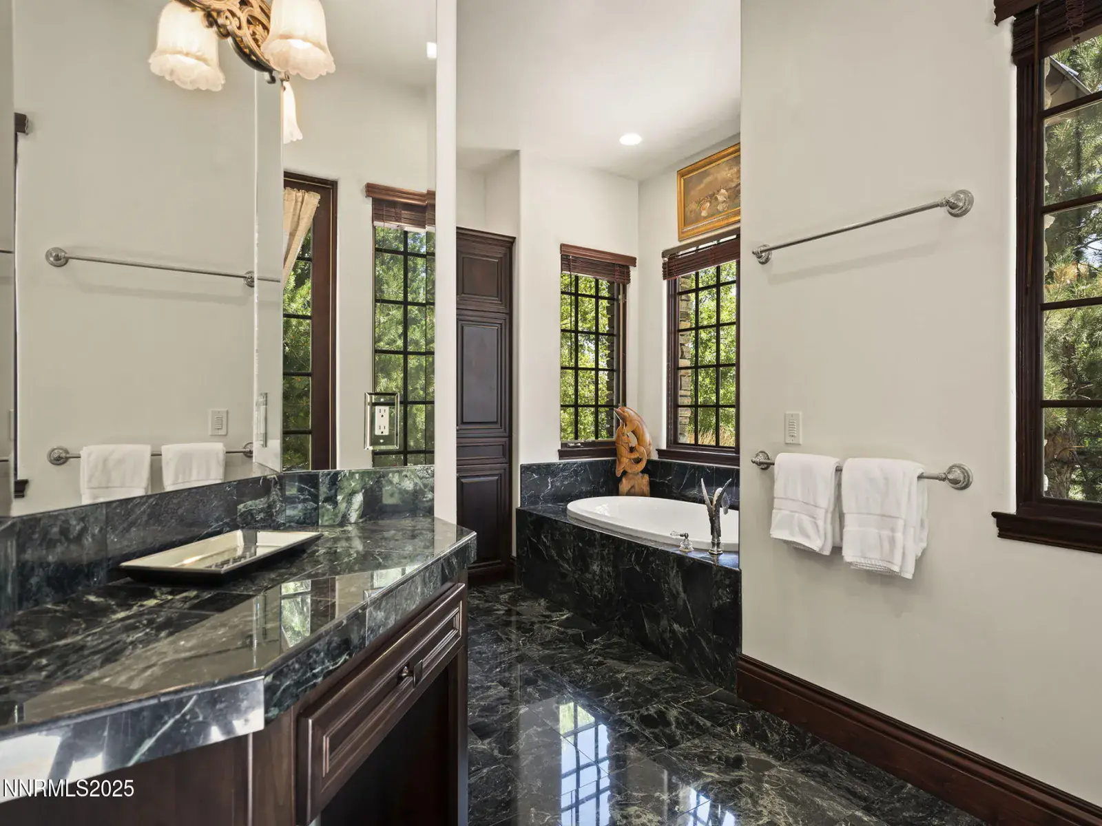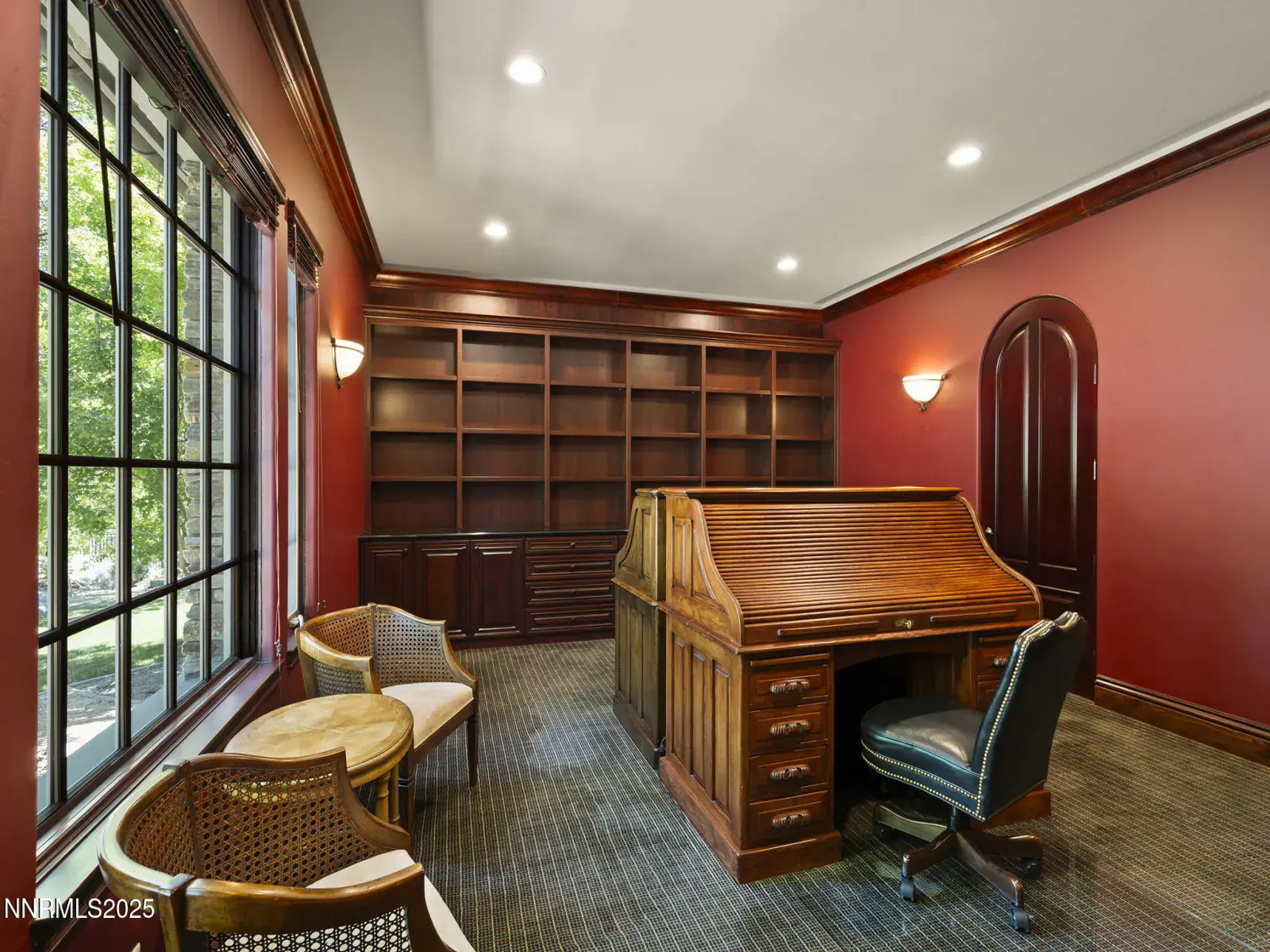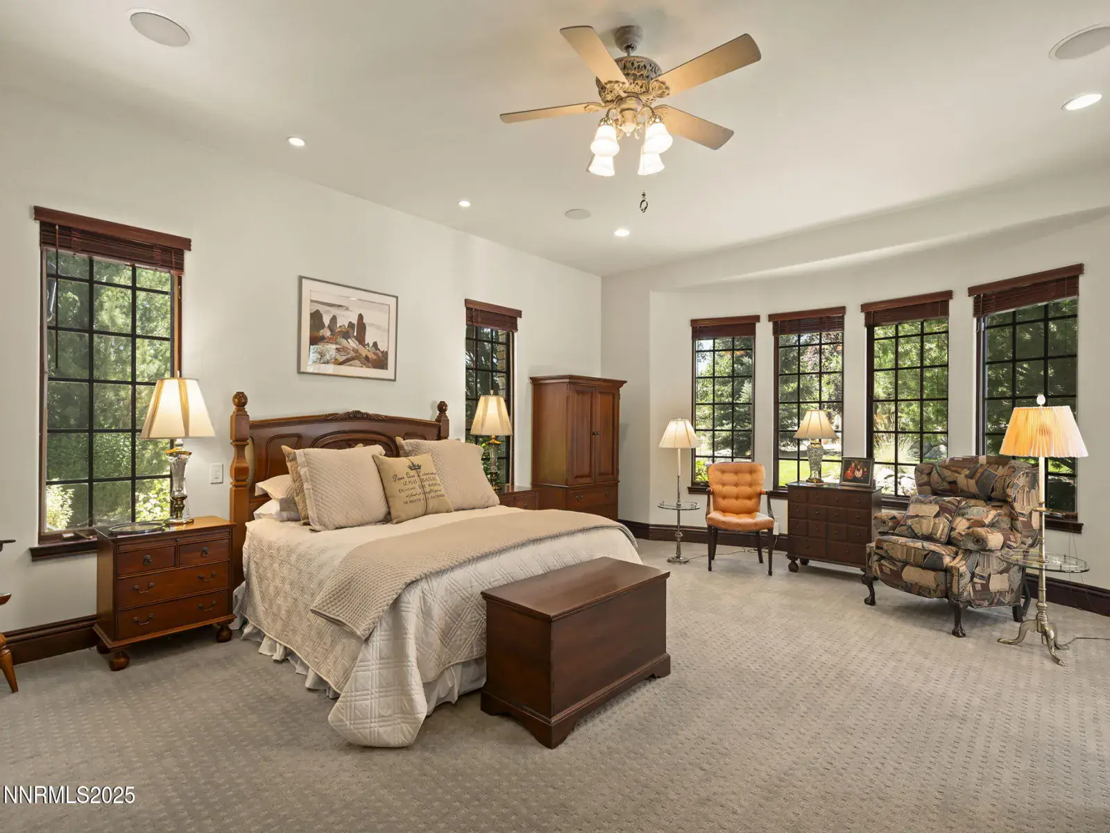 Rare and stunning property on 2.47 acres in coveted SW Suburban Reno Lakeside/Holcomb area. Down a long driveway and through the private gated entry, you will immediately be impressed by the mature landscaping and stunning exterior of this exquisite country manor with full hand-laid stone exterior. Wonderful curb appeal with beautiful entry, circular drive with water feature, and carriage breezeway between two 2-car garages. Additionally, there is a detached fully insulated and heated garage/car barn with soaring 18′ ceilings, 3 doors including RV door. Steamboat ditch irrigation rights, domestic well plus AG water rights. The comfortable yet elegant floorplan features 4 ensuite bedrooms and 3 separate half baths. Large office with beautiful built-ins and the primary suite located on the main level feature a fireplace, luxurious bath, and huge walk in closet. The magnificent gourmet kitchen is open to the family room featuring 20 foot ceilings and extraordinary floor to ceiling stone fireplace and hearth. The grand formal dining room and separate living room with wall of windows overlook the grounds. Upstairs has 3 large bedrooms with private baths, a 1/2 bath, and beautiful landing open to the family room below and leading to expansive game room with walk-in wet bar, plenty of room for seating, dining, or extra office space! Other features include 8′ solid Mahogany doors, water processing system, Control 4 lighting and Mesh Network Wi-Fi system. New insulated steel garage doors on attached garages, Generac whole house generator, extensive lighting and much more! Please see features list for more. Very close to all amenities .and airport yet very secluded country lifestyle Must see this extremely special home, location, and property!
