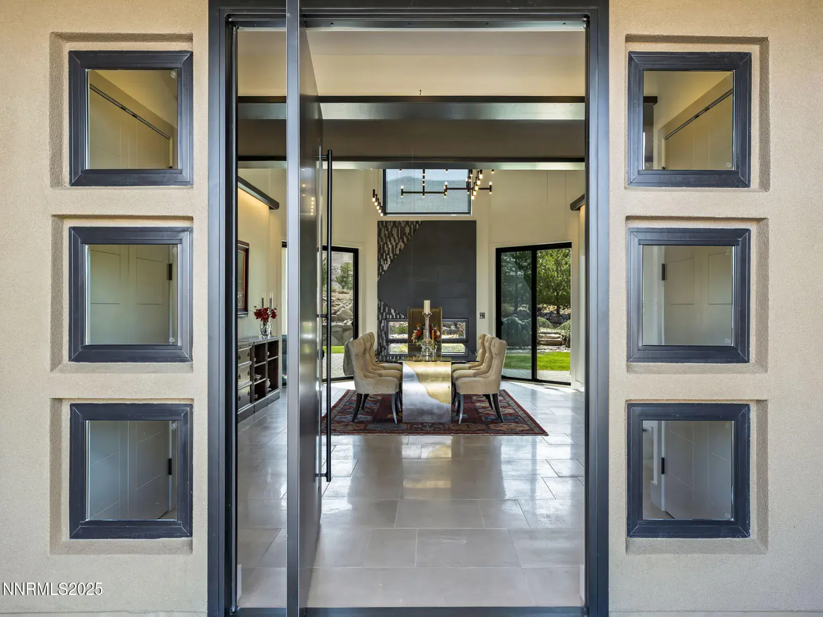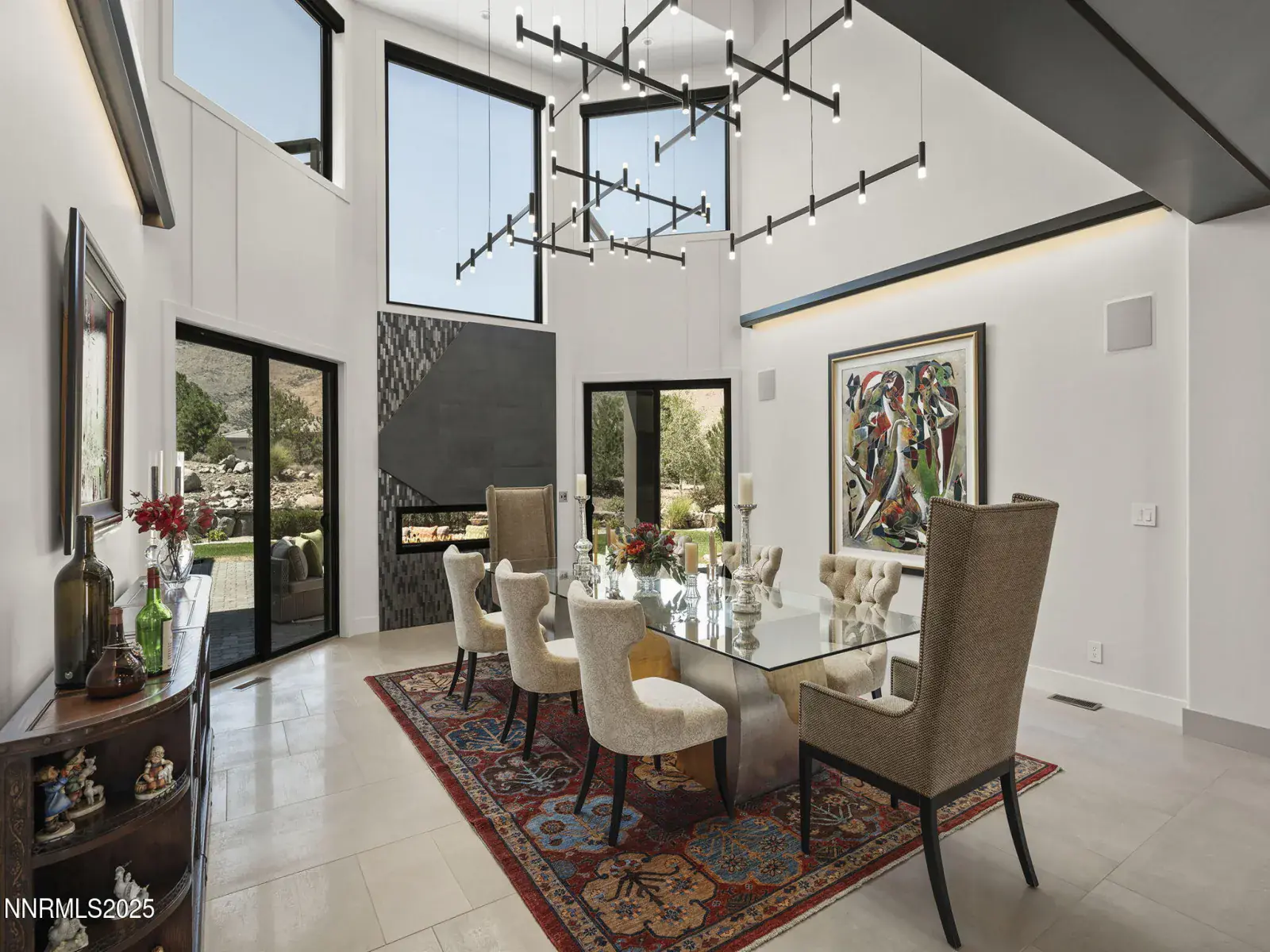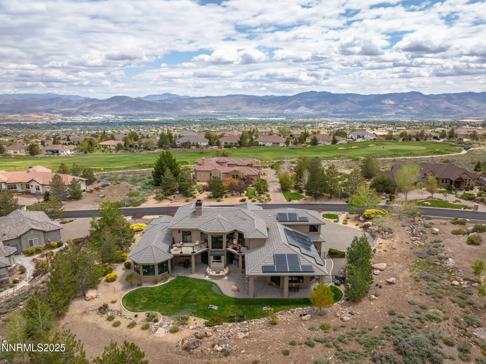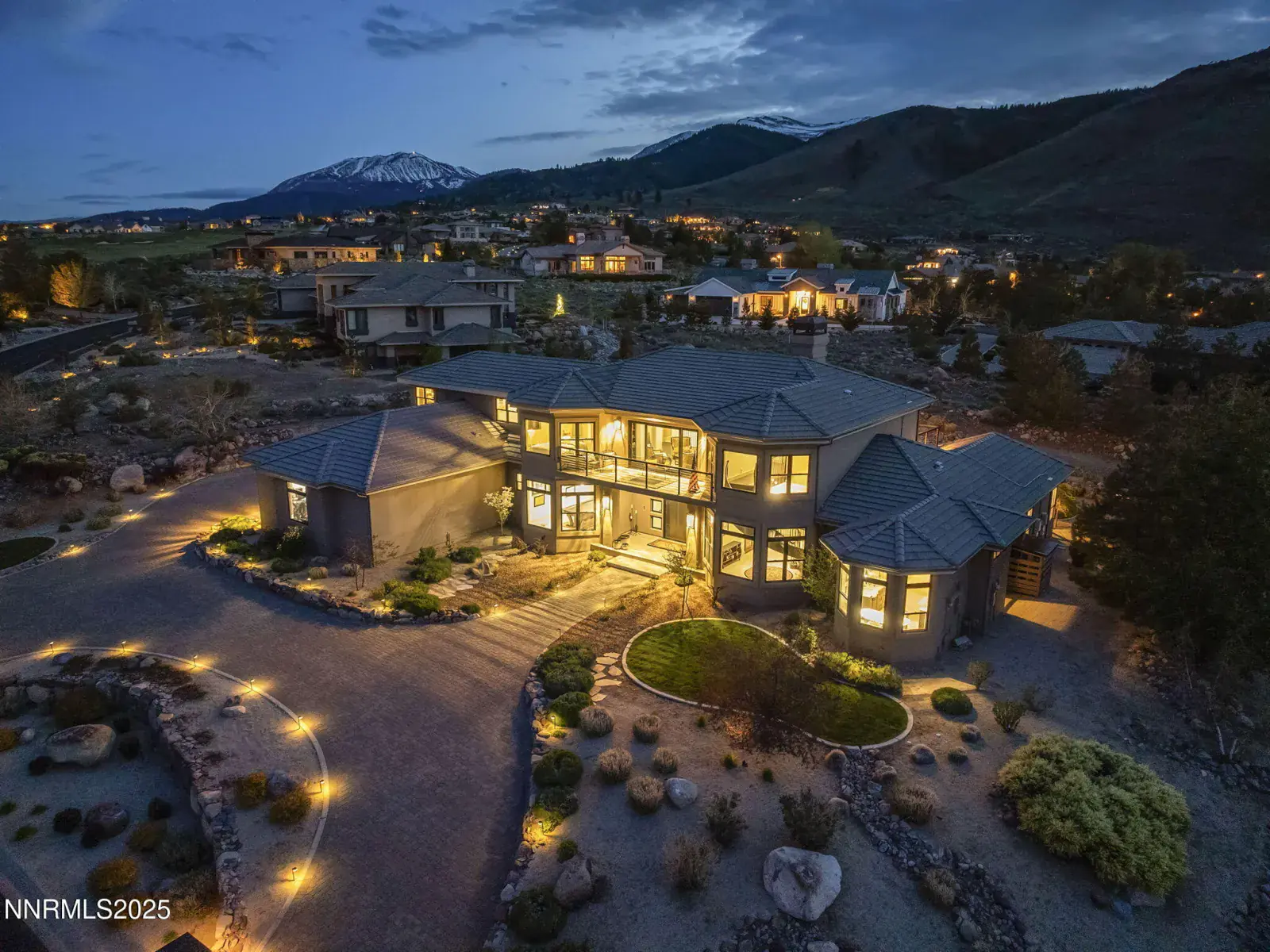 Step into 6177 North Featherstone, a residence reimagined from the ground up to embody the sophistication of design & the effortless grace of High Desert living. Nestled within the prestigious ArrowCreek community, this fully remodeled estate offers 5,586 square feet of inspired living on a full acre. With sweeping views across the Sierra Nevada & Mt. Rose mountains, lush golf fairways, & sparkling city lights, every angle of this home tells a story of elegance & connection to its surroundings. The owners began their remodel with purpose: to create a seamless flow, where form meets function & every detail enhances life, leisure, & entertaining. Walls were softened, pillars removed, & spaces reimagined to capture natural light & open sightlines. Modern finishes & thoughtful design balance grandeur with comfort. A finished basement & upstairs library added 312 square feet, expanding versatility without sacrificing intimacy. Arrival makes an unforgettable impression with a custom 9×6 steel pivot door by Modern Steel Doors of Arizona. Inside, a light-filled foyer leads to an expanded balcony, where sweeping golf course & city views set the stage for sunrise coffee or starlit evenings. At the heart of the home, the Dining Room has been elevated into a dramatic entertaining space with soaring two-story ceilings & a two-sided fireplace connecting indoors & outdoors. Andersen sliding doors open to patios & gardens, while striking Sonneman fixtures & art lighting create ambiance. Whether hosting holidays or intimate dinners, the space adapts with ease. The Main En Suite is a private retreat, complete with custom California Closets, cove lighting, & remote-controlled Hunter Douglas shades. The spa-inspired bath showcases a freestanding soaking tub beneath chandeliers, a dual-entry steam shower with rain head & sprayers, natural stone floors, shimmering glass tile, & custom cabinetry with quartz counters & lighted mirrors. The Great Room centers on a custom travertine fireplace with black quartz mantel, complemented by wood-grain tile floors, a Minka Aire fan, & integrated Sonos audio. The Kitchen & Nook feature a Wolf 48″ range, Sub-Zero refrigerator, & a central island with seating. The Games Room delights with Hubbardton Forge lighting, speakers, & motorized shades. A dramatic staircase of black-stained oak & iron railings rises beneath a cascading Sonneman chandelier. Upstairs, the new Library offers custom bookcases, club seating, & a 12-foot Andersen glass wall opening to a balcony with panoramic views. Four additional en suite bedrooms provide privacy, storage, & character. Outdoors, multiple patios, a two-sided fireplace, & landscaped grounds enhanced with solar lighting create serene gathering spaces. Modern systems include central HVAC with three units, radiant heated floors, Tesla solar panels, Cat-6 wiring, Sonos audio, & a four-car garage with EV charger. This estate is more than a home—it is a lifestyle. From morning coffee on the balcony to wine in the library at dusk, from quiet family nights to grand celebrations, this residence harmonizes elegance, comfort, & versatility. Every space has been thoughtfully crafted, every view a reminder of Reno’s beauty. This is a rare opportunity to own a fully realized vision of home, where luxury & ease coexist seamlessly.