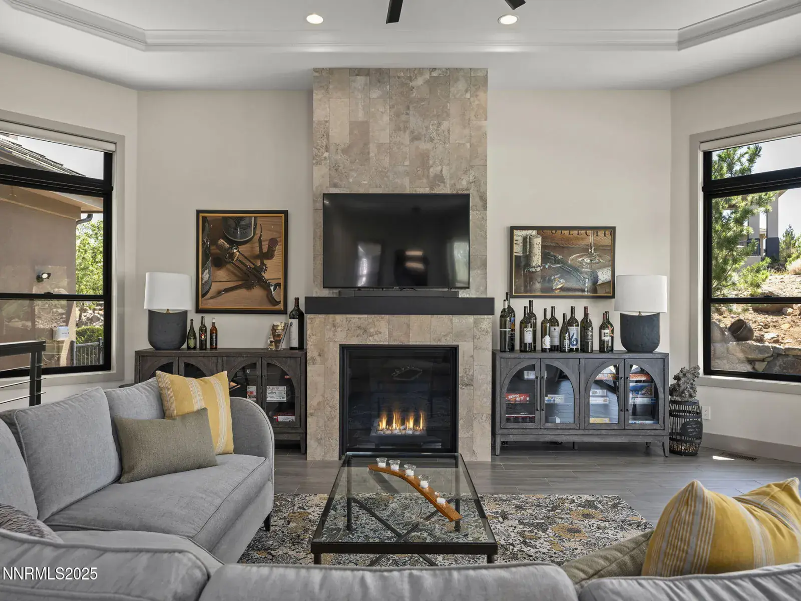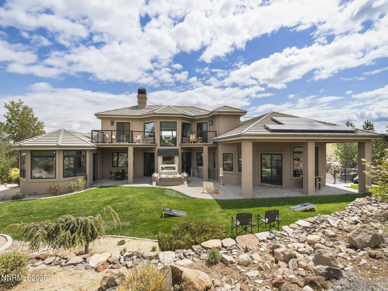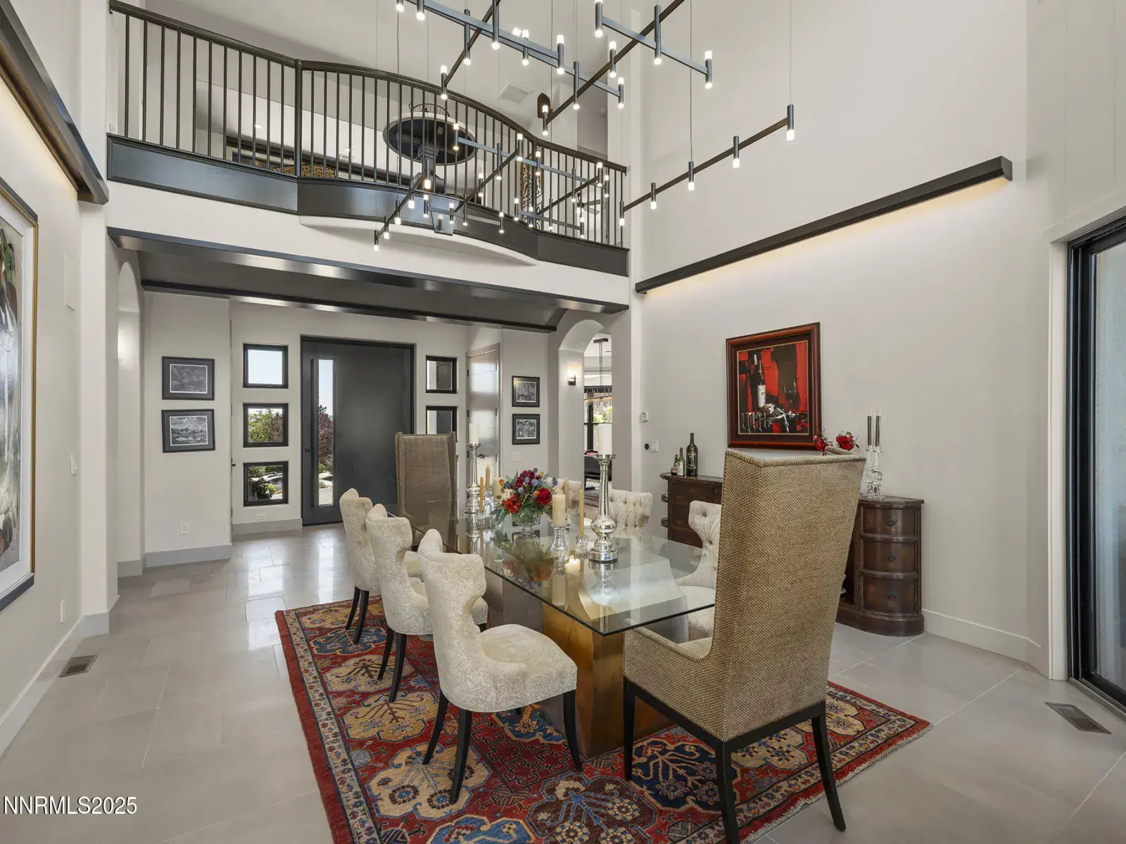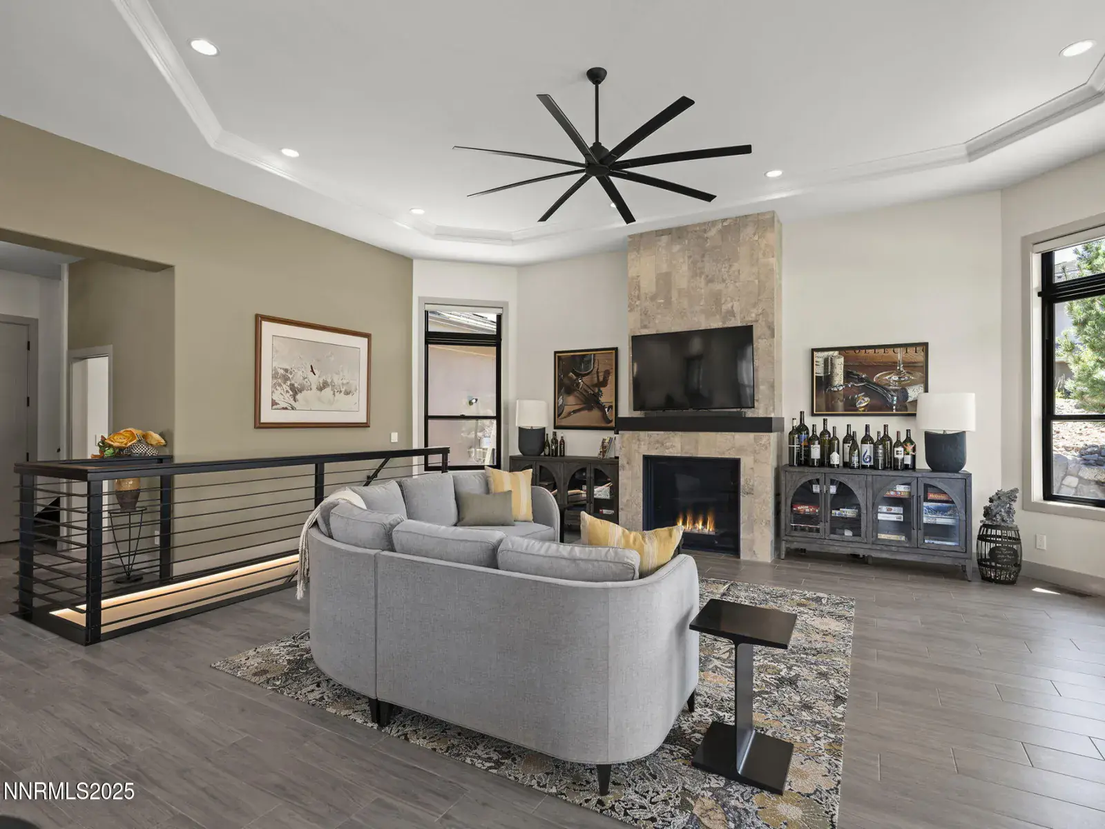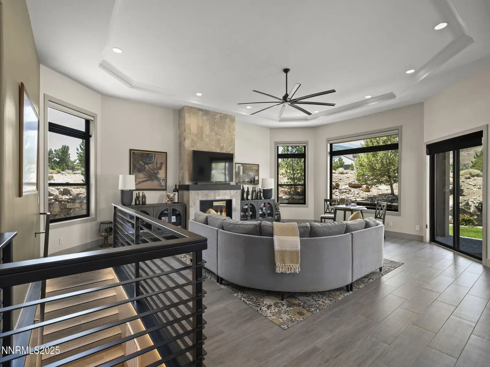 Step into 6177 North Featherstone, a residence reimagined from the ground up to embody the sophistication of design & the effortless grace of High Desert living. Nestled within the prestigious ArrowCreek community, this fully remodeled estate offers 5,586 square feet of inspired living on a full acre. With sweeping views across the Sierra Nevada & Mt. Rose mountains, lush golf fairways, & sparkling city lights, every angle of this home tells a story of elegance & connection to its surroundings. The owners began their remodel with purpose: to create a seamless flow, where form meets function & every detail enhances life, leisure, & entertaining. Walls were softened, pillars removed, & spaces reimagined to capture natural light & open sightlines. Modern finishes & thoughtful design balance grandeur with comfort. A finished basement & upstairs library added 312 square feet, expanding versatility without sacrificing intimacy. Arrival makes an unforgettable impression with a custom 9×6 steel pivot door by Modern Steel Doors of Arizona. Inside, a light-filled foyer leads to an expanded balcony, where sweeping golf course & city views set the stage for sunrise coffee or starlit evenings. At the heart of the home, the Dining Room has been elevated into a dramatic entertaining space with soaring two-story ceilings & a two-sided fireplace connecting indoors & outdoors. Andersen sliding doors open to patios & gardens, while striking Sonneman fixtures & art lighting create ambiance. Whether hosting holidays or intimate dinners, the space adapts with ease. The Main En Suite is a private retreat, complete with custom California Closets, cove lighting, & remote-controlled Hunter Douglas shades. The spa-inspired bath showcases a freestanding soaking tub beneath chandeliers, a dual-entry steam shower with rain head & sprayers, natural stone floors, shimmering glass tile, & custom cabinetry with quartz counters & lighted mirrors. The Great Room centers on a custom travertine fireplace with black quartz mantel, complemented by wood-grain tile floors, a Minka Aire fan, & integrated Sonos audio. The Kitchen & Nook feature a Wolf 48″ range, Sub-Zero refrigerator, & a central island with seating. The Games Room delights with Hubbardton Forge lighting, speakers, & motorized shades. A dramatic staircase of black-stained oak & iron railings rises beneath a cascading Sonneman chandelier. Upstairs, the new Library offers custom bookcases, club seating, & a 12-foot Andersen glass wall opening to a balcony with panoramic views. Four additional en suite bedrooms provide privacy, storage, & character. Outdoors, multiple patios, a two-sided fireplace, & landscaped grounds enhanced with solar lighting create serene gathering spaces. Modern systems include central HVAC with three units, radiant heated floors, Tesla solar panels, Cat-6 wiring, Sonos audio, & a four-car garage with EV charger. This estate is more than a home—it is a lifestyle. From morning coffee on the balcony to wine in the library at dusk, from quiet family nights to grand celebrations, this residence harmonizes elegance, comfort, & versatility. Every space has been thoughtfully crafted, every view a reminder of Reno’s beauty. This is a rare opportunity to own a fully realized vision of home, where luxury & ease coexist seamlessly.
