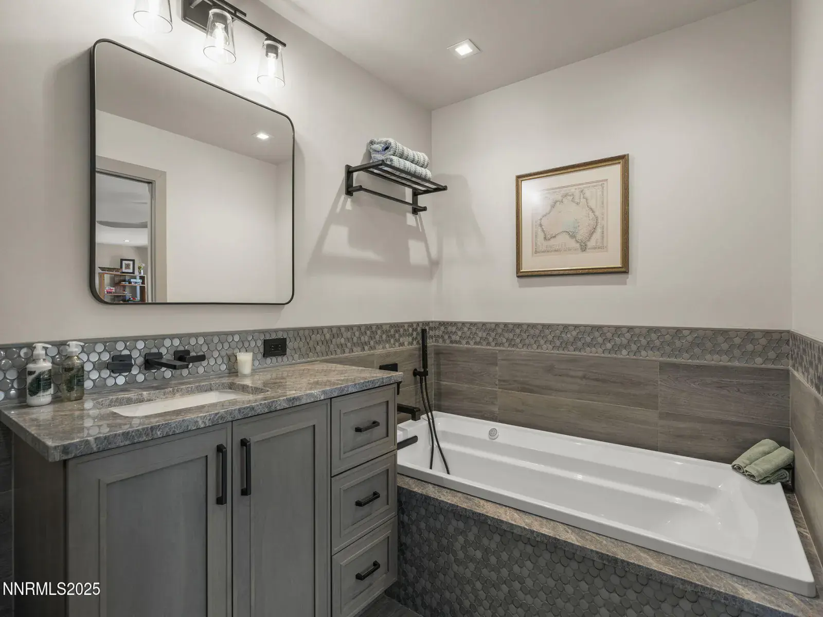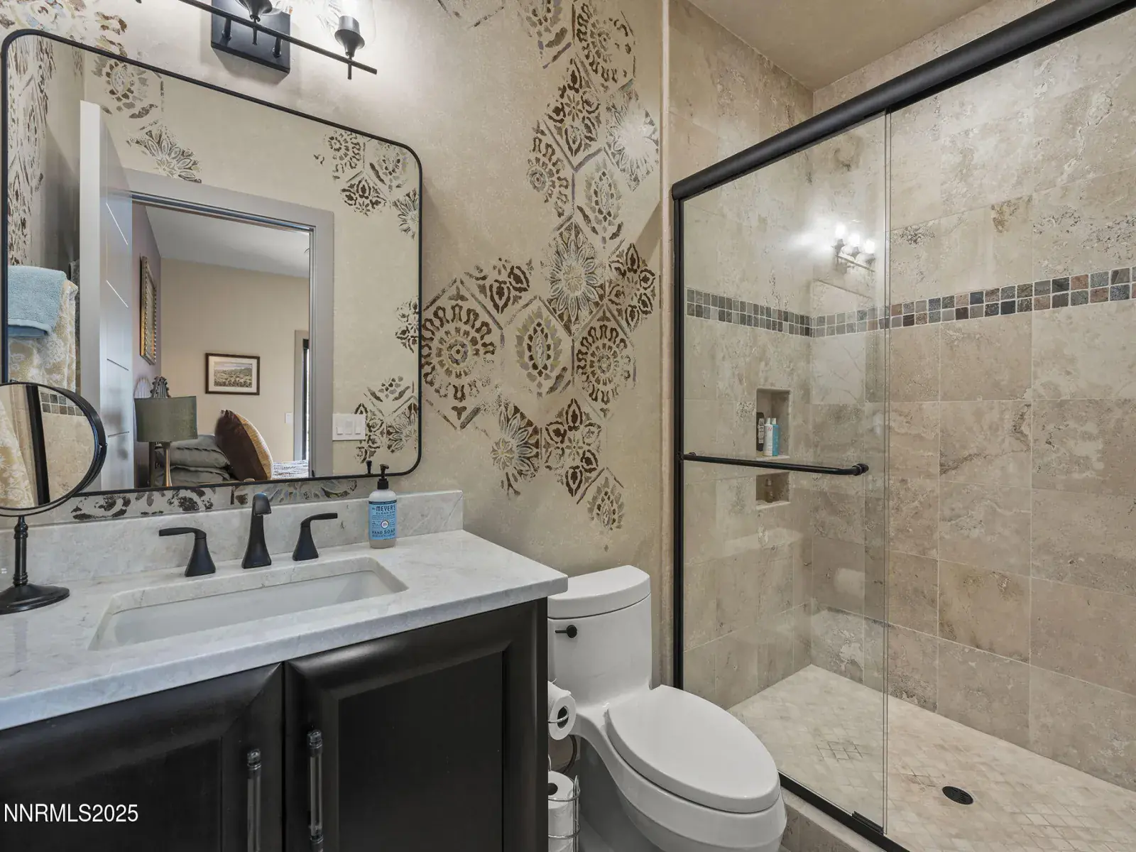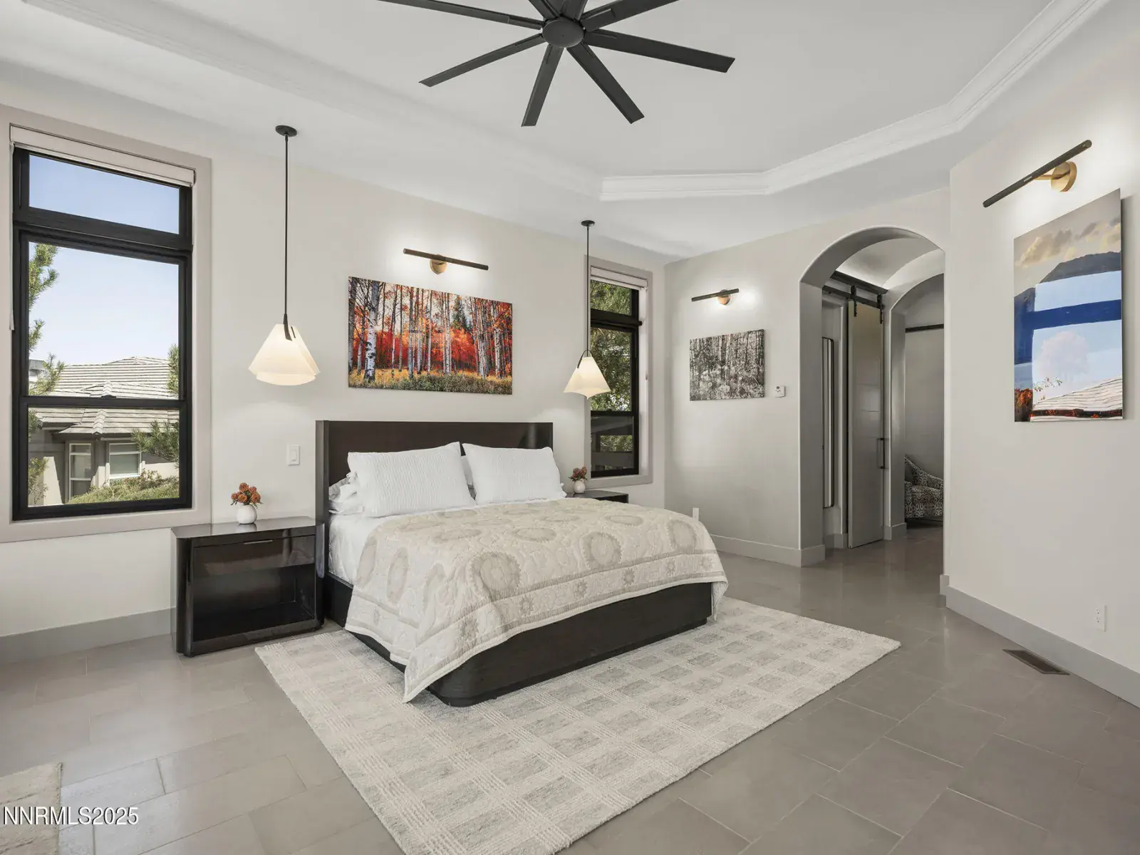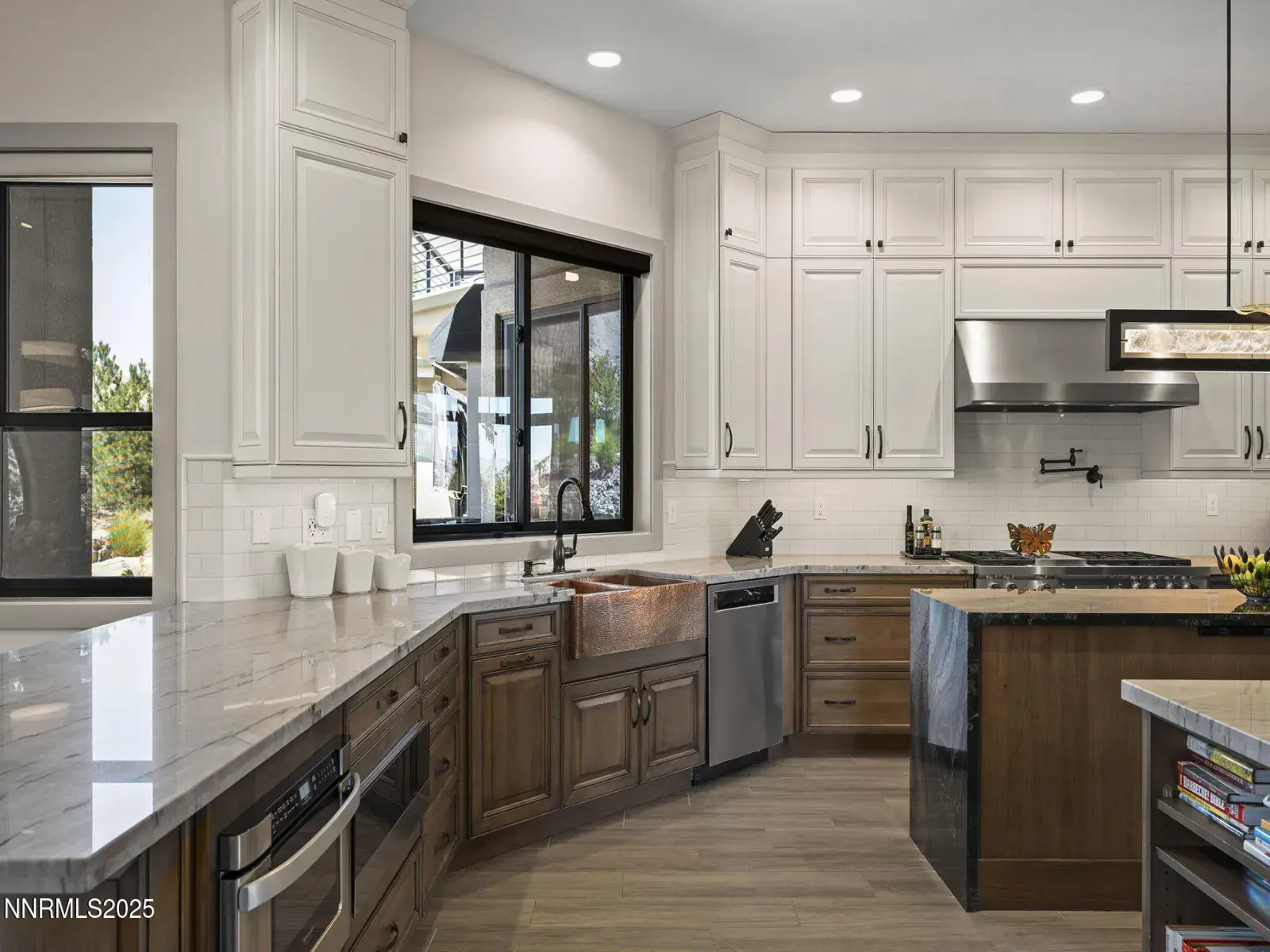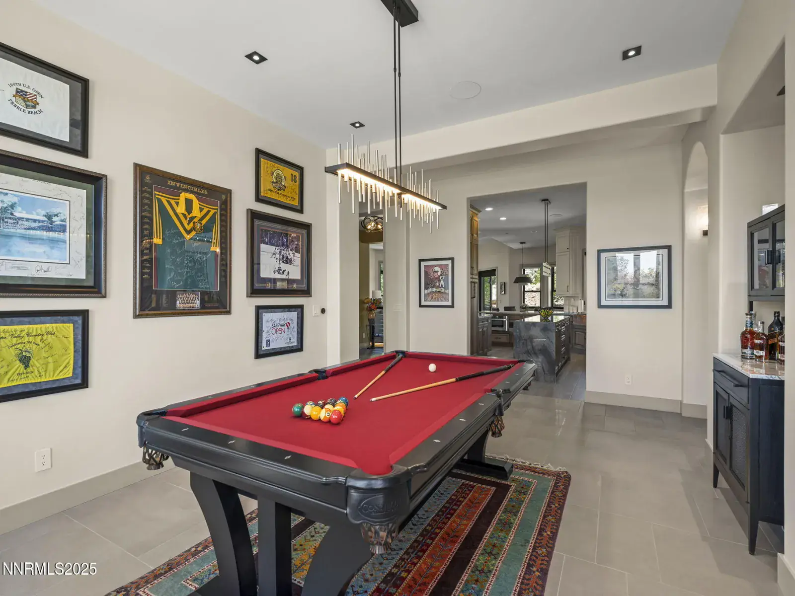Step into 6177 North Featherstone, a residence reimagined from the ground up to embody the sophistication of design & the effortless grace of High Desert living. Nestled within the prestigious ArrowCreek community, this fully remodeled estate offers 5,586 square feet of inspired living on a full acre. With sweeping views across the Sierra Nevada & Mt. Rose mountains, lush golf fairways, & sparkling city lights, every angle of this home tells a story of elegance & connection to its surroundings. The owners began their remodel with purpose: to create a seamless flow, where form meets function & every detail enhances life, leisure, & entertaining. Walls were softened, pillars removed, & spaces reimagined to capture natural light & open sightlines. Modern finishes & thoughtful design balance grandeur with comfort. A finished basement & upstairs library added 312 square feet, expanding versatility without sacrificing intimacy. Arrival makes an unforgettable impression with a custom 9×6 steel pivot door by Modern Steel Doors of Arizona. Inside, a light-filled foyer leads to an expanded balcony, where sweeping golf course & city views set the stage for sunrise coffee or starlit evenings. At the heart of the home, the Dining Room has been elevated into a dramatic entertaining space with soaring two-story ceilings & a two-sided fireplace connecting indoors & outdoors. Andersen sliding doors open to patios & gardens, while striking Sonneman fixtures & art lighting create ambiance. Whether hosting holidays or intimate dinners, the space adapts with ease. The Main En Suite is a private retreat, complete with custom California Closets, cove lighting, & remote-controlled Hunter Douglas shades. The spa-inspired bath showcases a freestanding soaking tub beneath chandeliers, a dual-entry steam shower with rain head & sprayers, natural stone floors, shimmering glass tile, & custom cabinetry with quartz counters & lighted mirrors. The Great Room centers on a custom travertine fireplace with black quartz mantel, complemented by wood-grain tile floors, a Minka Aire fan, & integrated Sonos audio. The Kitchen & Nook feature a Wolf 48″ range, Sub-Zero refrigerator, & a central island with seating. The Games Room delights with Hubbardton Forge lighting, speakers, & motorized shades. A dramatic staircase of black-stained oak & iron railings rises beneath a cascading Sonneman chandelier. Upstairs, the new Library offers custom bookcases, club seating, & a 12-foot Andersen glass wall opening to a balcony with panoramic views. Four additional en suite bedrooms provide privacy, storage, & character. Outdoors, multiple patios, a two-sided fireplace, & landscaped grounds enhanced with solar lighting create serene gathering spaces. Modern systems include central HVAC with three units, radiant heated floors, Tesla solar panels, Cat-6 wiring, Sonos audio, & a four-car garage with EV charger. This estate is more than a home—it is a lifestyle. From morning coffee on the balcony to wine in the library at dusk, from quiet family nights to grand celebrations, this residence harmonizes elegance, comfort, & versatility. Every space has been thoughtfully crafted, every view a reminder of Reno’s beauty. This is a rare opportunity to own a fully realized vision of home, where luxury & ease coexist seamlessly.